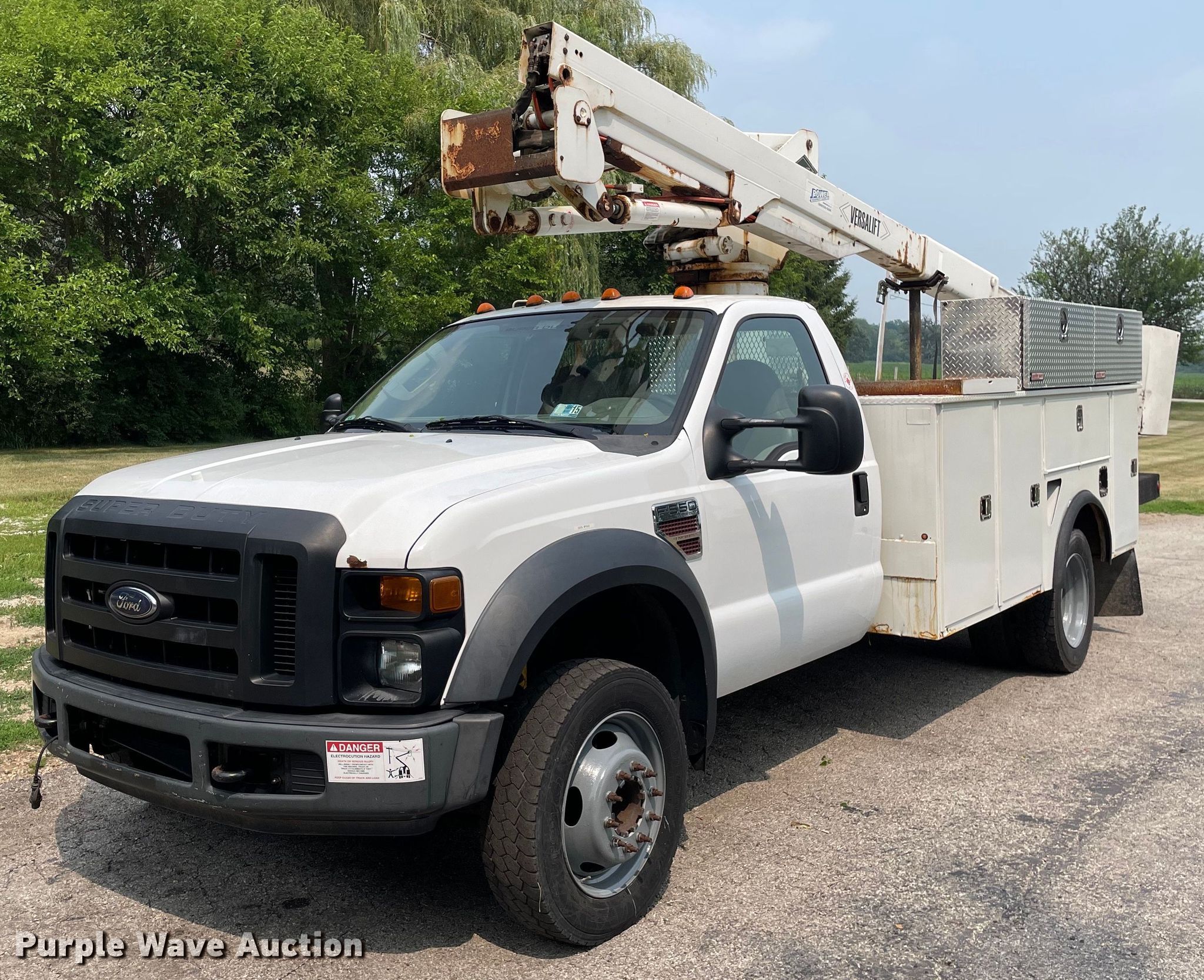 This 2008 Ford F550 Super Duty XL bucket truck will sell to the highest bidder regardless of price.