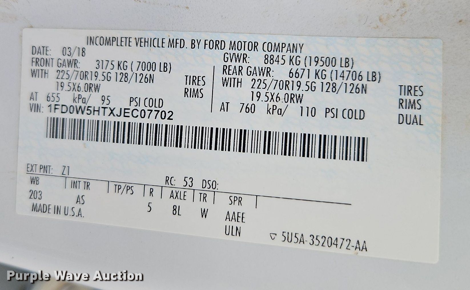 - VIN: 1FD0W5HTXJEC07702