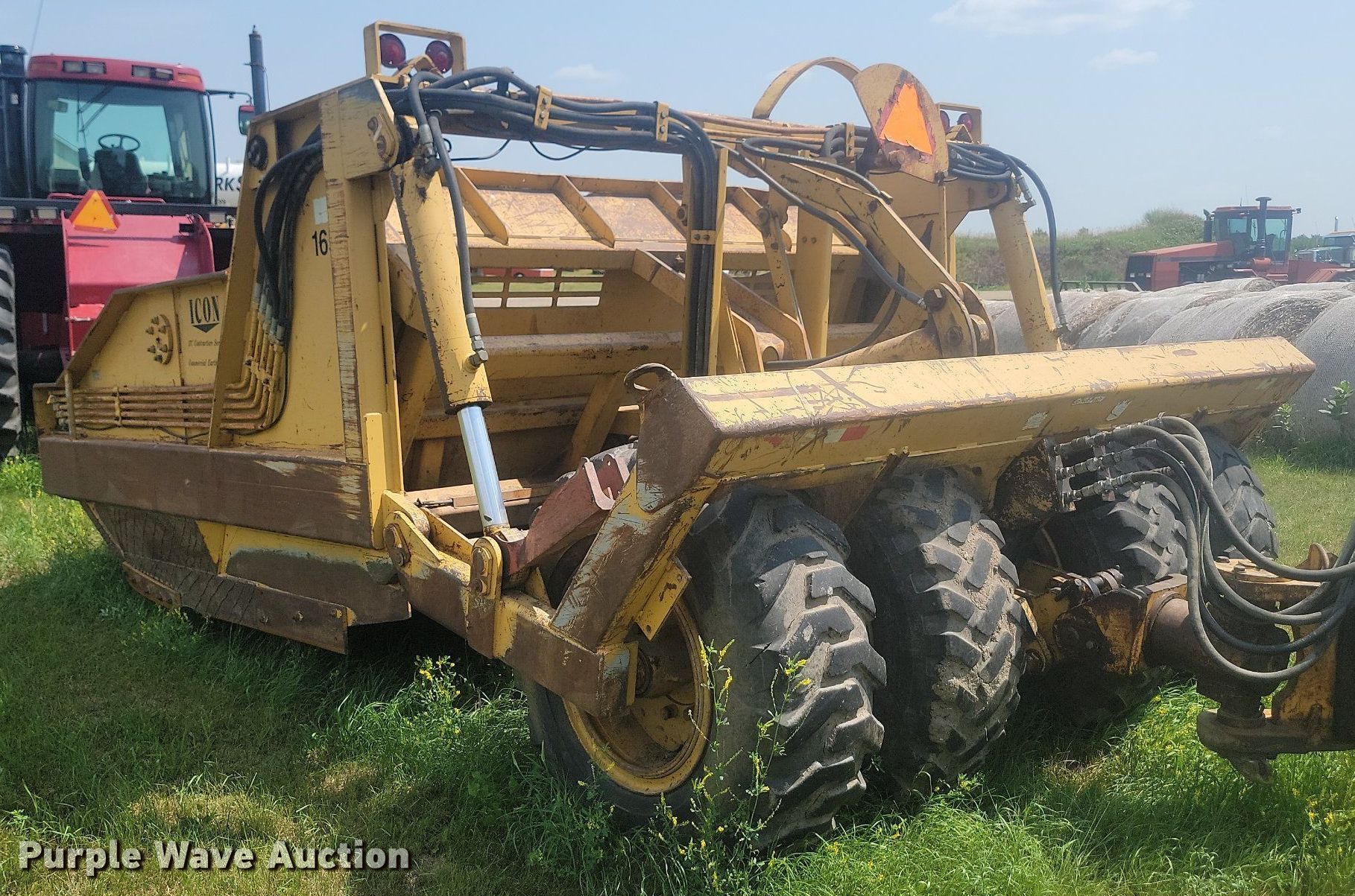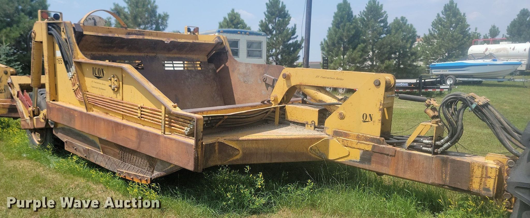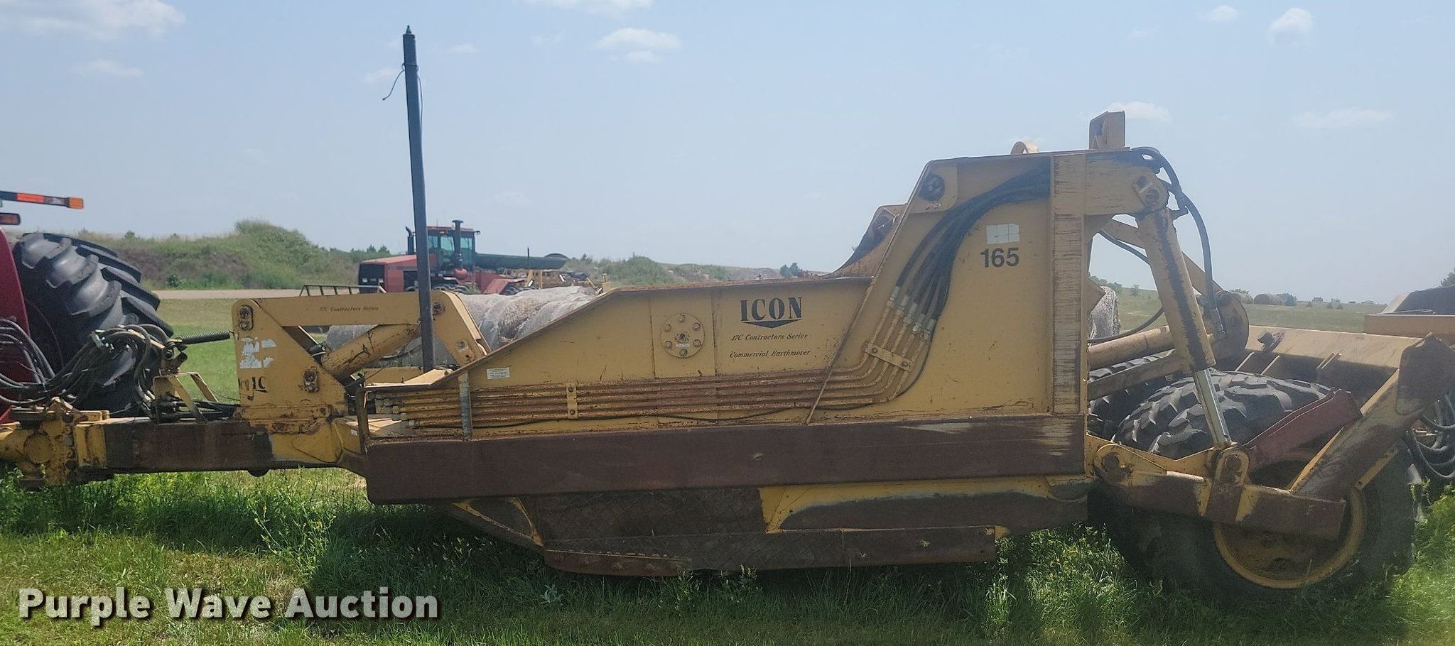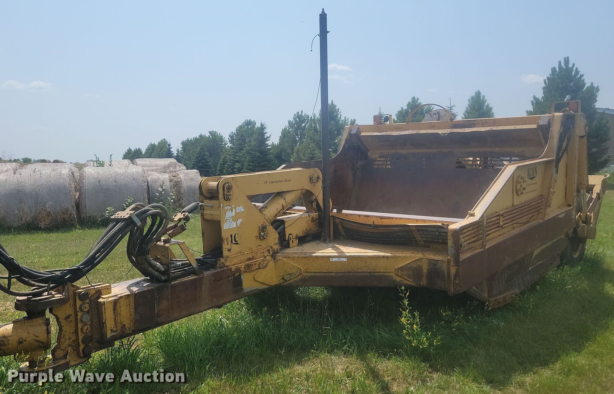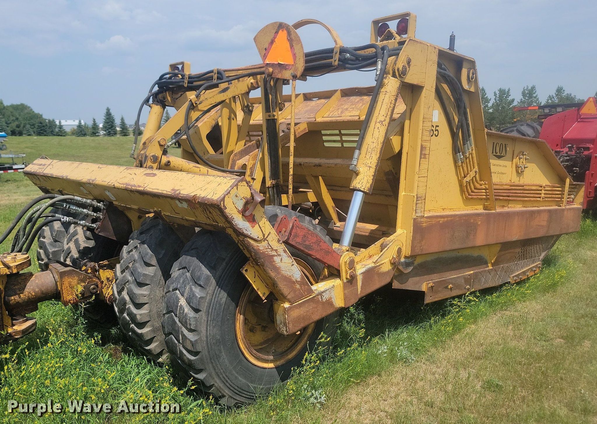 Purple Wave is selling a used Pull Type Scraper in North Dakota. This item is a 2001 Icon 17C Earthmover scraper with the following: Bowl capacity: 17 cu.yd., Reversible cutting edge, Hydraulic lift