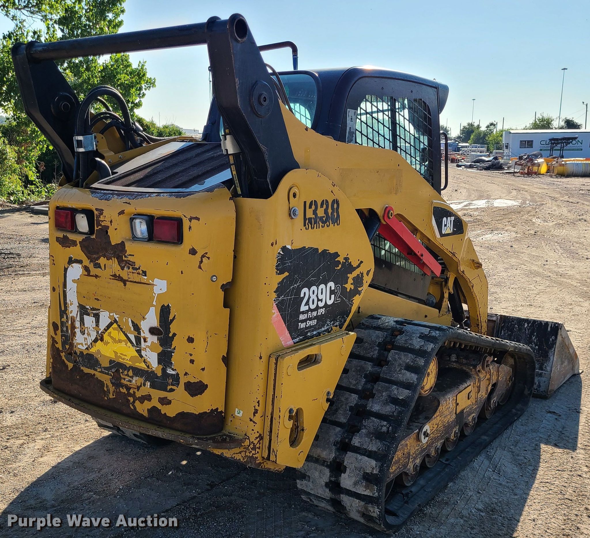 2013 Caterpillar 289C2 tracked skid steer loader. Hours: 8,194 on meter, Serial: CAT0289CERTD01365. Engine Cylinders: 4, Fuel type: Diesel. Transmission Hydrostatic, Two speed travel. Operators station Enclosed cab, AC, Heat, Bucket control: Hand. Features Auxiliary hydraulics, Auxiliary electrical outlet, Quick coupler: Hydraulic, Bucket Width: 80", Cutting edge: Bolt-on. Tracks Width: 17.5". Clarkson Construction Co.. 4133 Gardner Ave. Kansas City, MO 64120