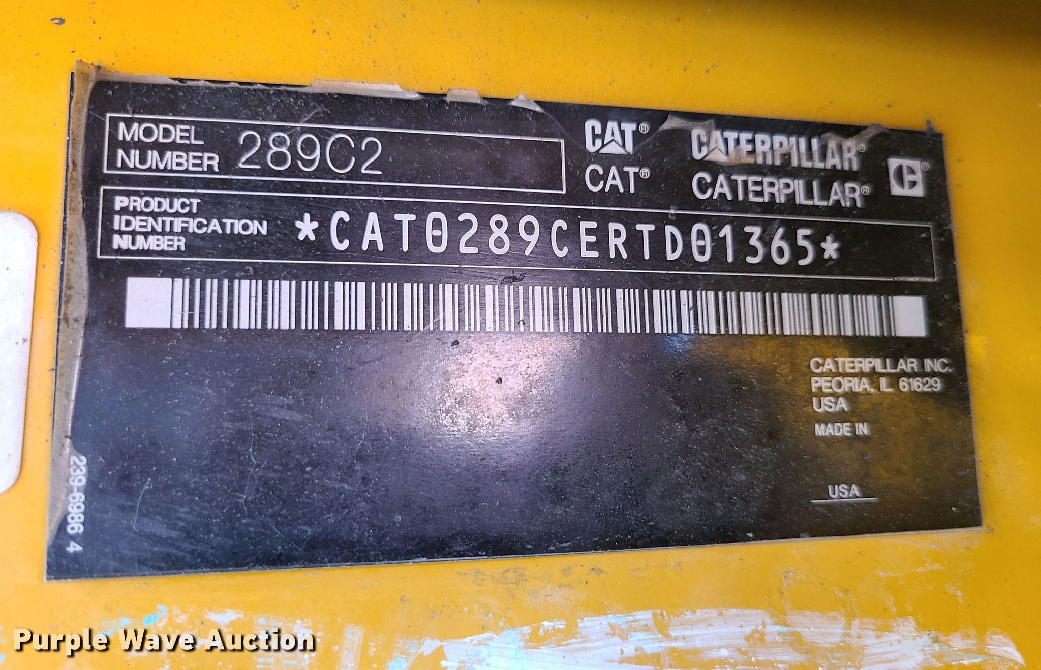 Purple Wave is selling a used Tracked Skid Steer Loader in Missouri. This item is a 2013 Caterpillar 289C2 tracked skid steer loader with the following: Hours: 8,194 on meter, Serial: CAT0289CERTD01365