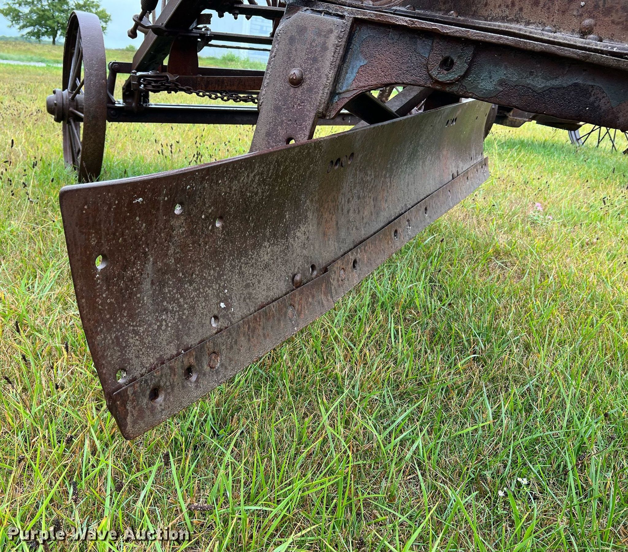 Austin MFG Co. grader. Serial: 4014. Features Moldboard total length: 97". Steel wheels Front: 30" diameter, Rear: 36" diameter. 23260 Audrain Road 364. Mexico, MO 65265