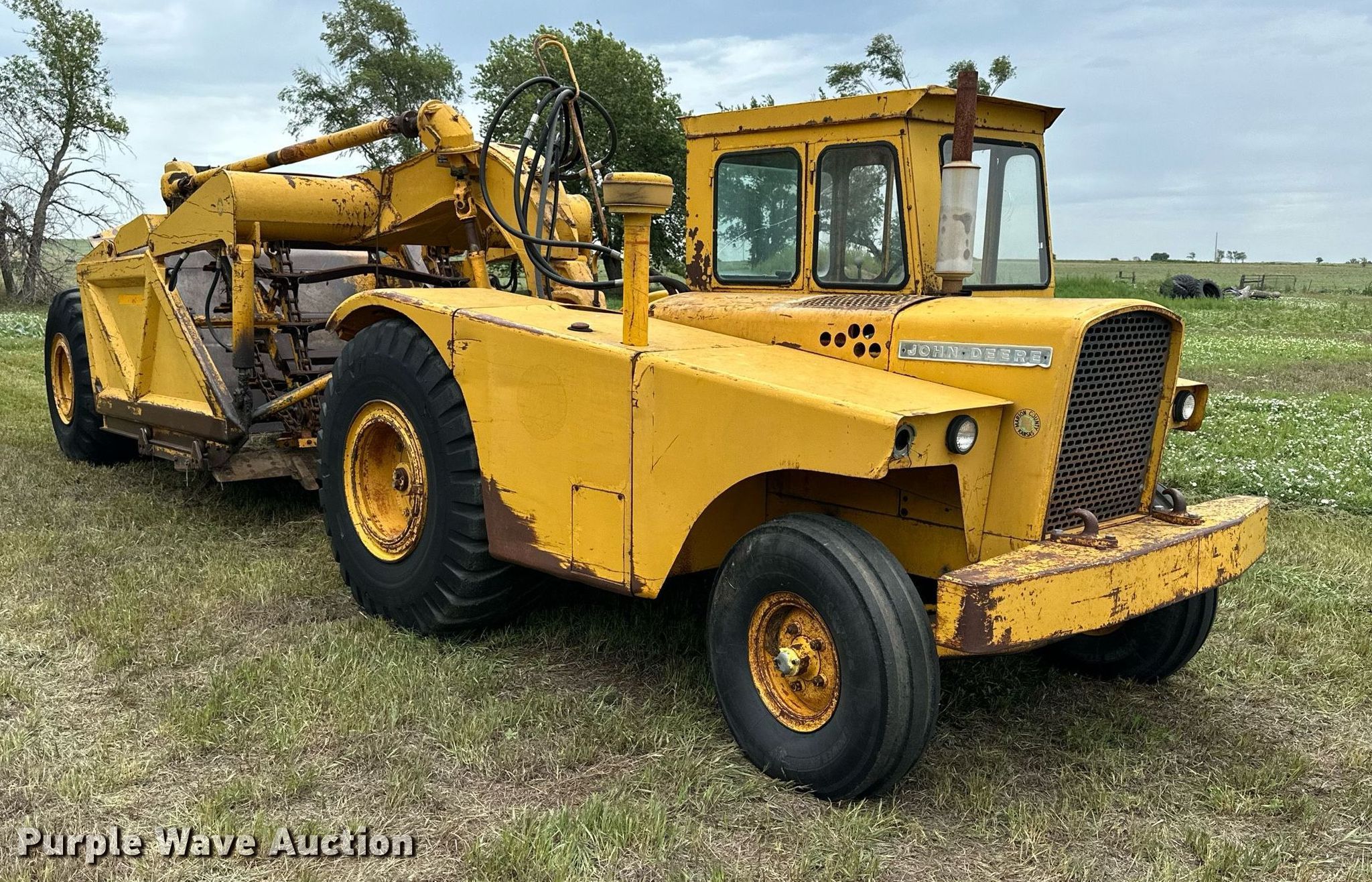 Purple Wave is selling a used Elevating Scraper in Kansas. This item is a 1964 John Deere 5010 elevating scraper with the following: Hours: Unknown, Serial: 4506