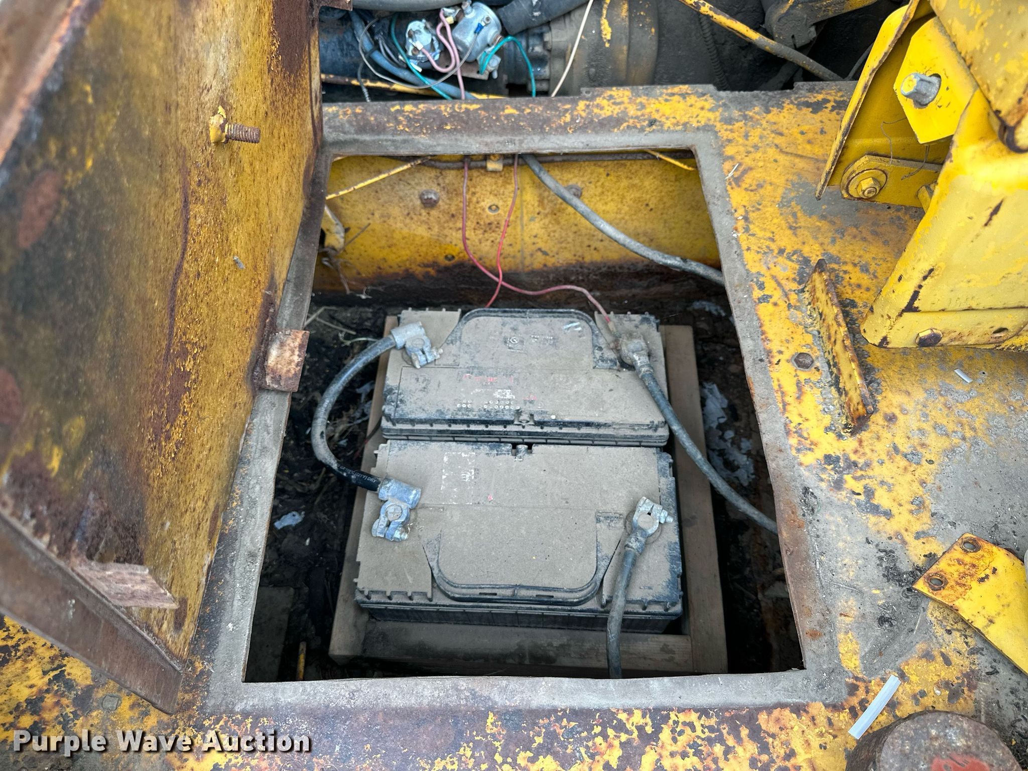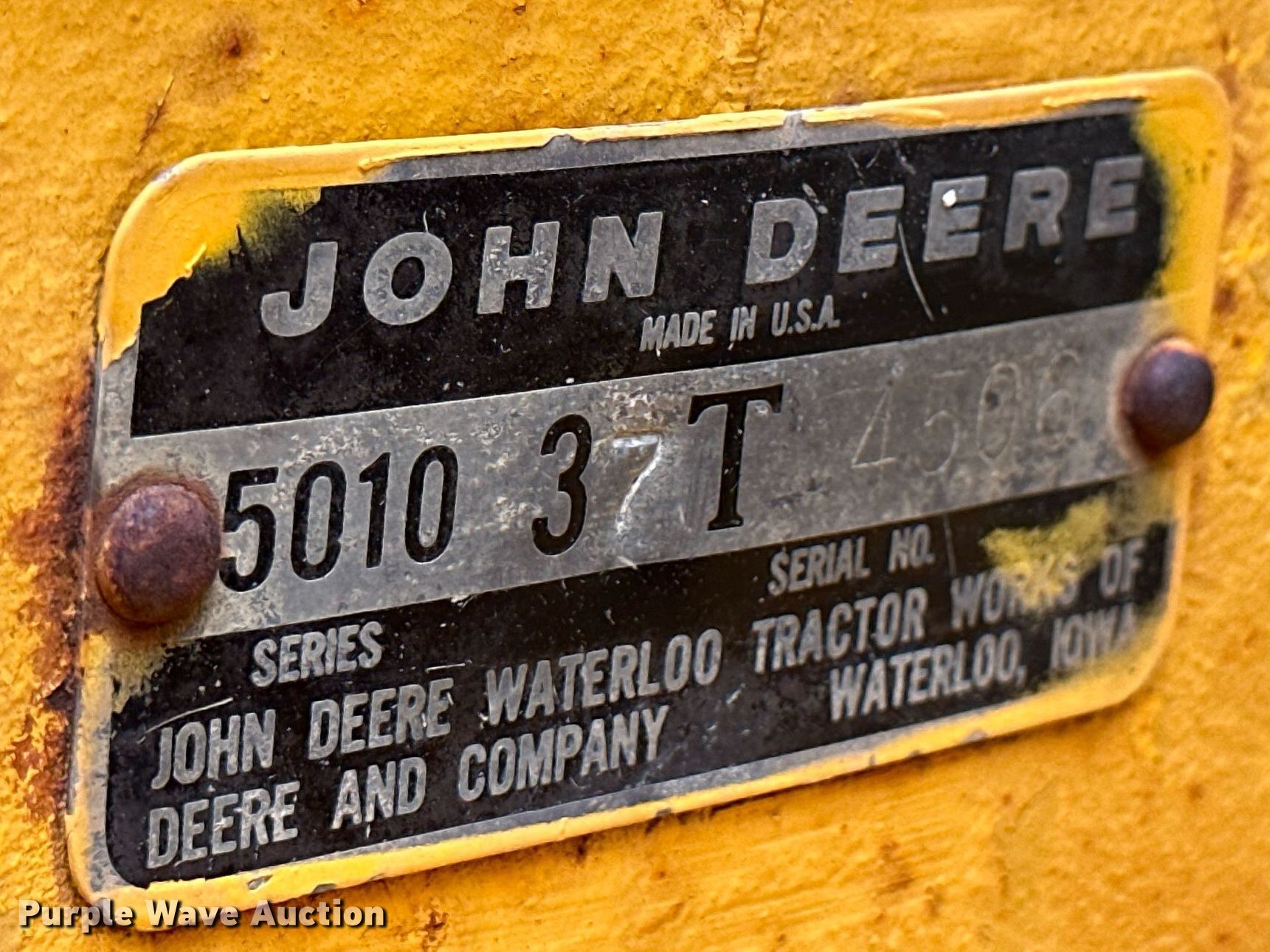 1964 John Deere 5010 elevating scraper. Hours: Unknown, Serial: 4506. Engine John deere 531, Cylinders: 6, Fuel type: Diesel. Transmission Synchro , 8F - 4R. Chassis Brakes: Hydraulic. Operators station EROPS. Features Bowl capacity: 7 cu.yd., Reversible cutting edge, Hydraulic lift, Scraper controls: Lever controls. Tires Front: 11.00-16, Rear: 23.5-25. Notes Glass cracked, Brake issues. 3883 L Road. Beloit, KS 67420