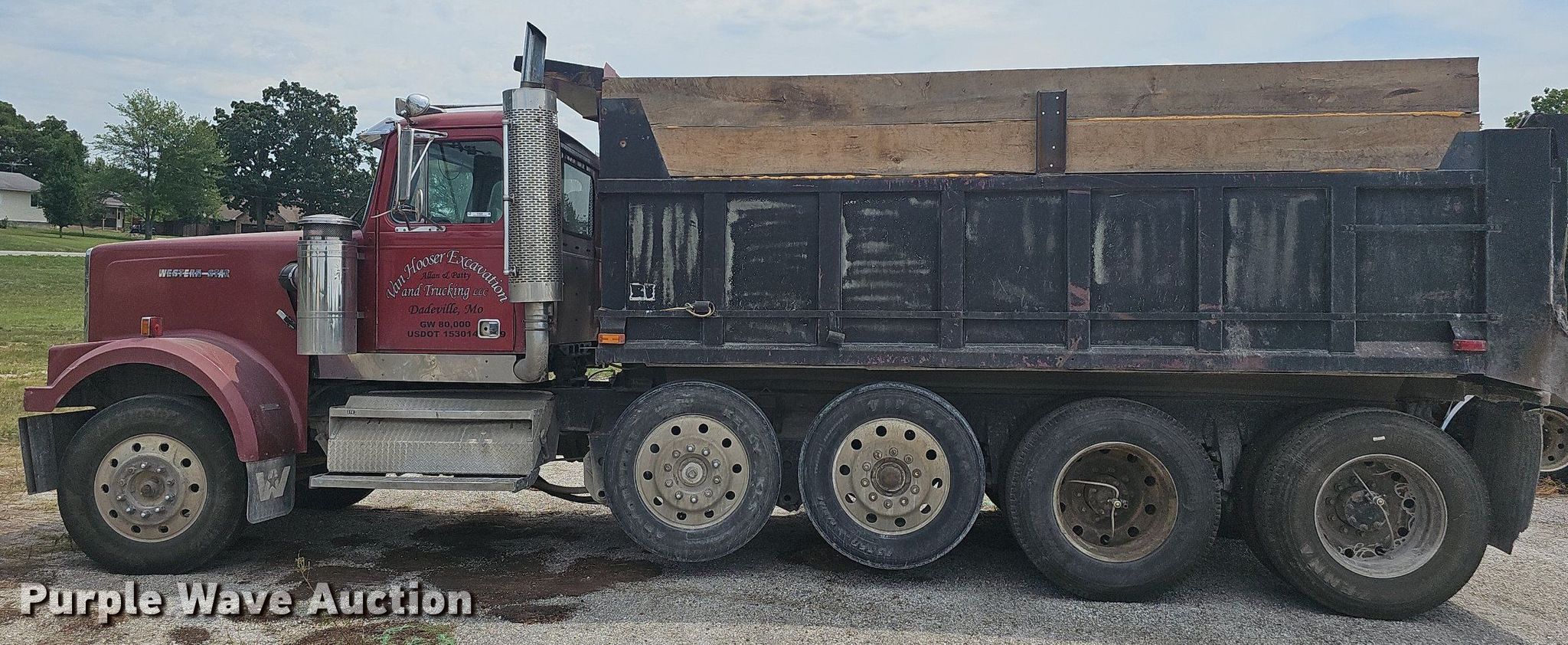 1995 Western Star 4964F dump truck. Miles: 917,914 on odometer, VIN: 2WKPDCCH6SK939372. Engine Caterpillar 3406, Displacement: 14.6L, Cylinders: 6, Fuel type: Diesel, Engine brake. Transmission Manual, Speed: 10. Chassis Axles: 4, Pusher axle Steerable, Suspension: Air, Brakes: Air, PTO. Interior AC, Heat, Heated mirrors. Features Dump bed 16' 6" L x 96" W, Side height: 41", Side board height: 23", Bed type: Steel, Ram: Single , End gate: Air operated. Tires Size: 11R24.5, Lift axle: 285/75R24.5. Notes Windshield chipped or cracked. Missouri title. Title distribution may be delayed up to 14 days from verification of funds. Vanhooser Farms Excavating. 431 South Clompton Street. Dadeville, MO 65635