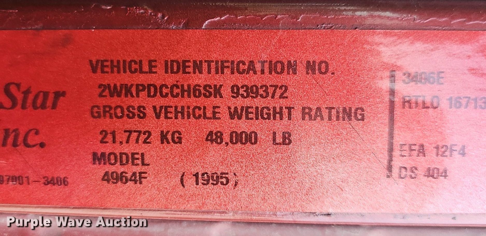 Purple Wave is selling a used Construction Dump Truck in Missouri. This item is a 1995 Western Star 4964F dump truck with the following: Miles: 917,914 on odometer, VIN: 2WKPDCCH6SK939372
