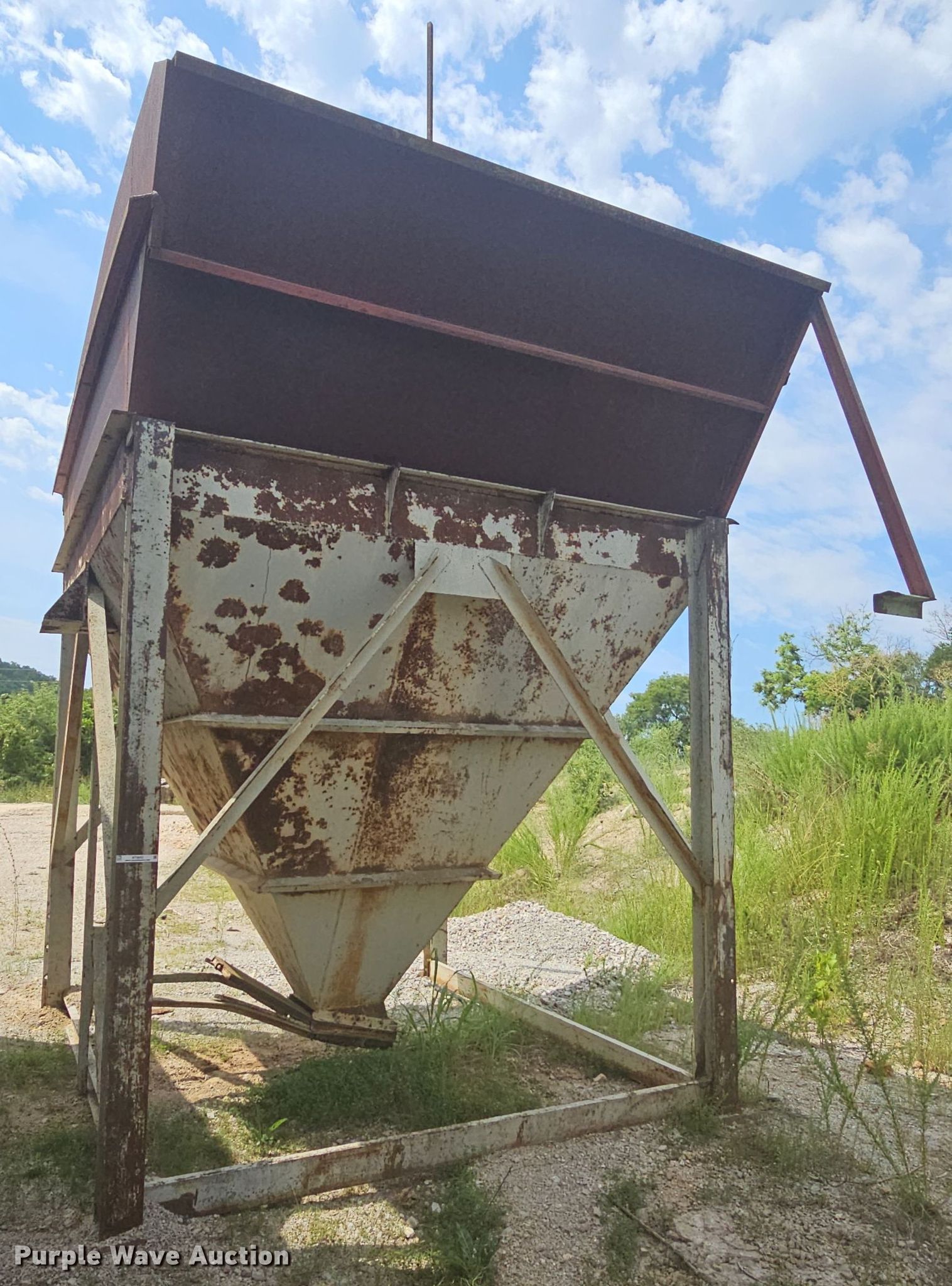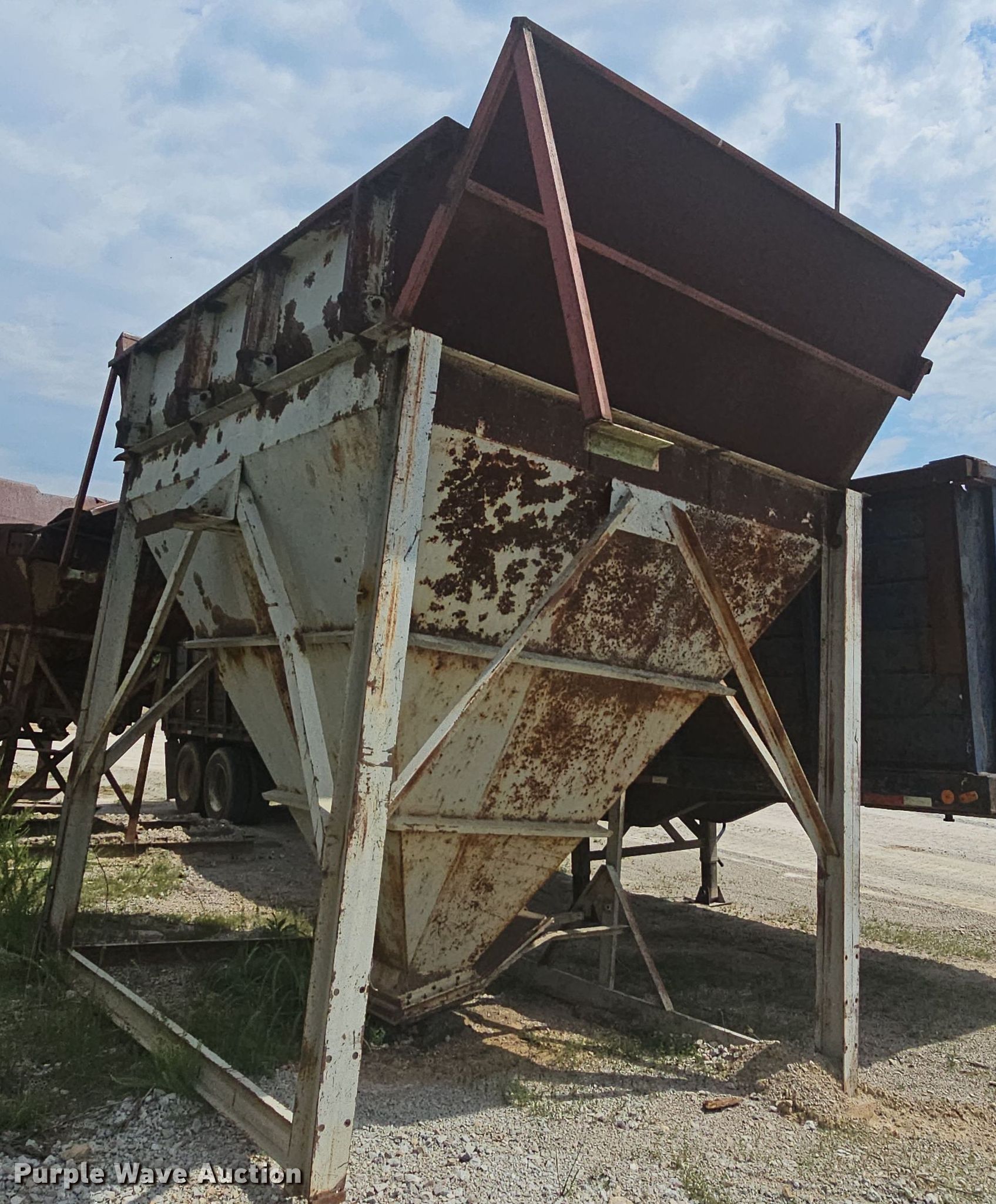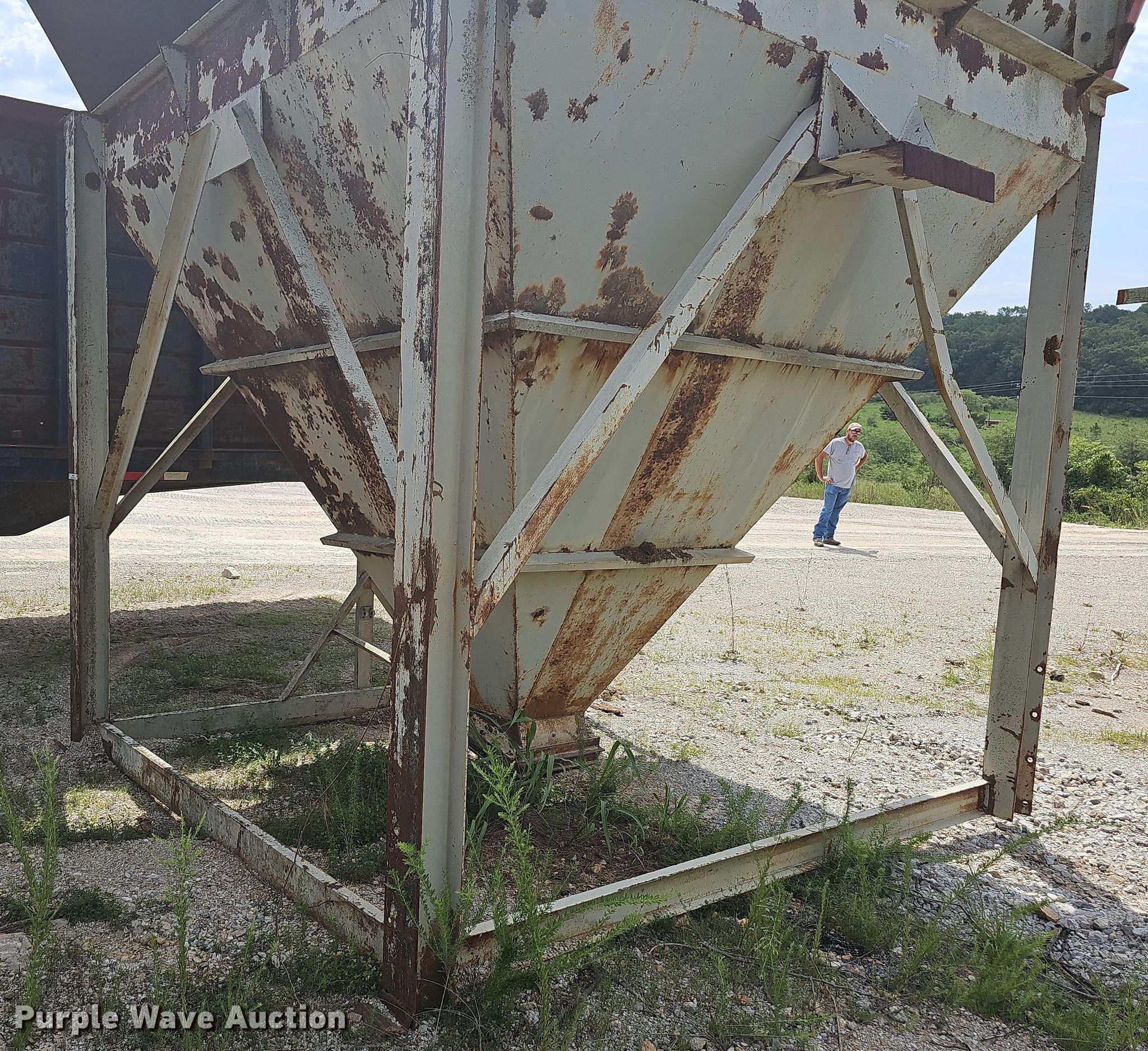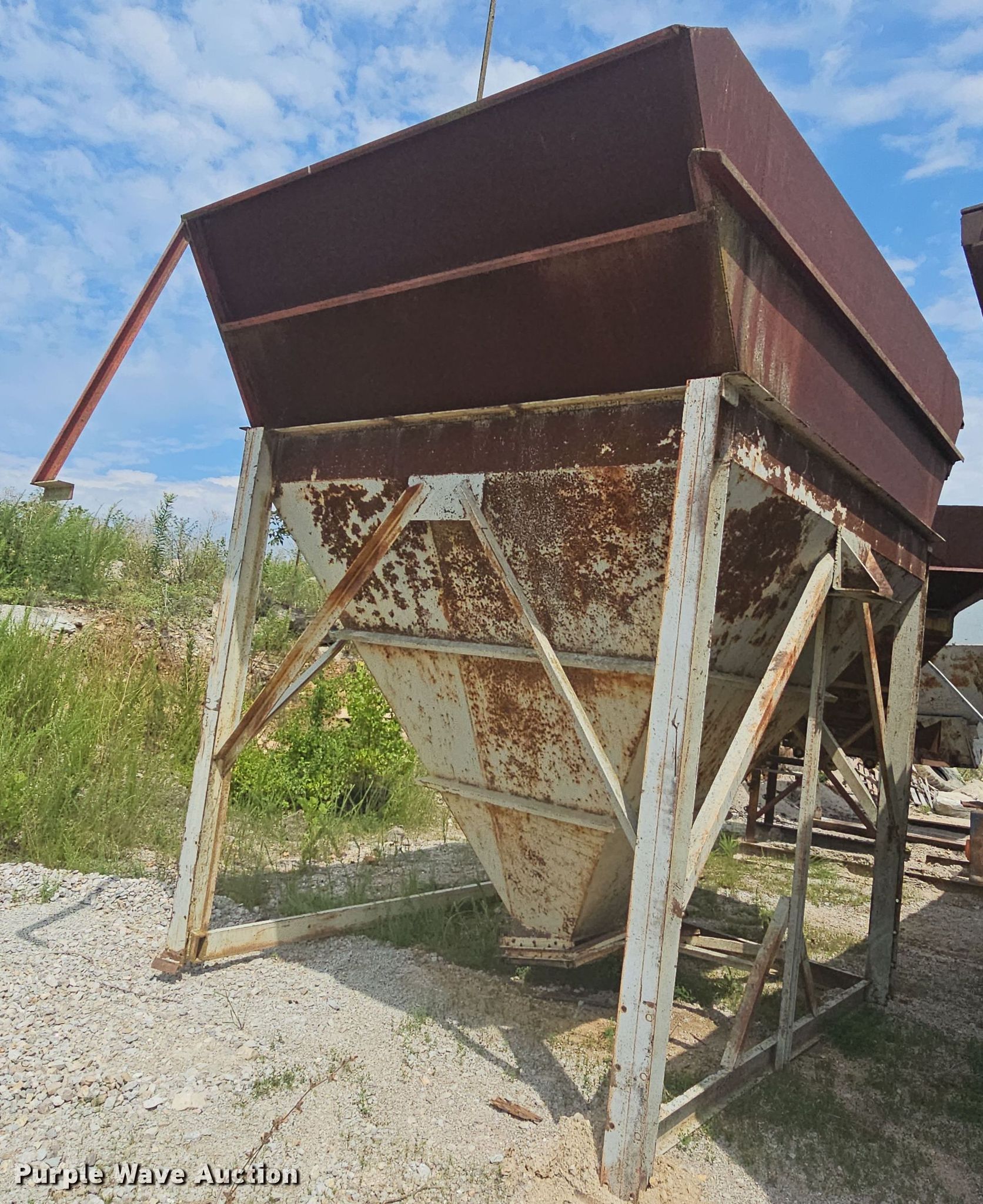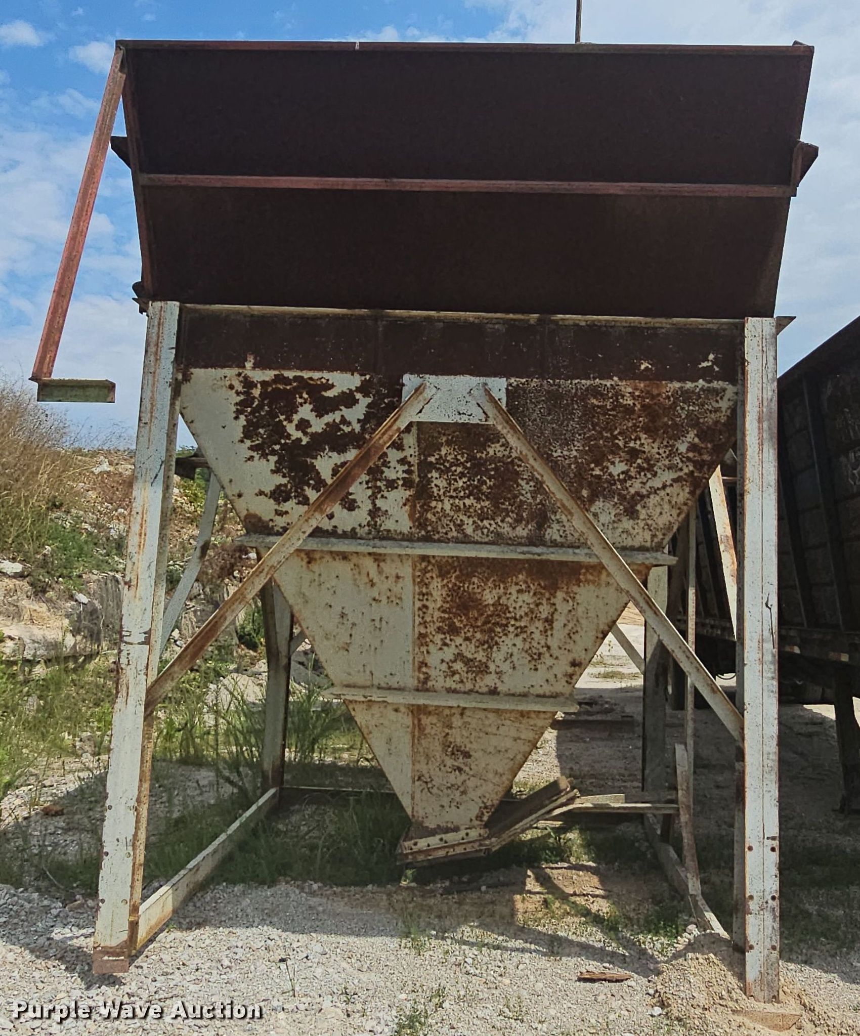 Purple Wave is selling a used Quarry or Aggregate Attach. in Missouri. This item is a Input hopper with the following: Overall: 10' L x 10' W x 12' 6" H, Discharge: 18" x 18", Hopper extension: 5'