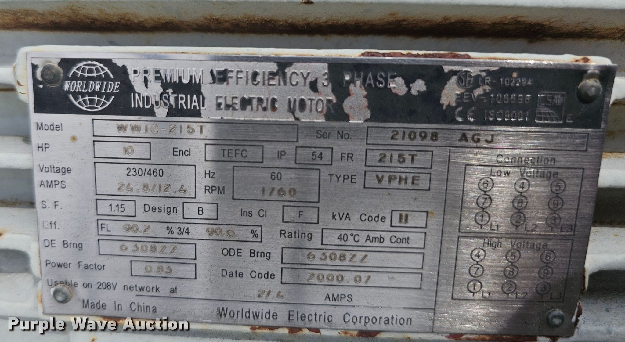 Purple Wave is selling a used Conveyor in Missouri. This item is a Conveyor with the following: Worldwide WW10-2151, HP: 10, Phase: Three