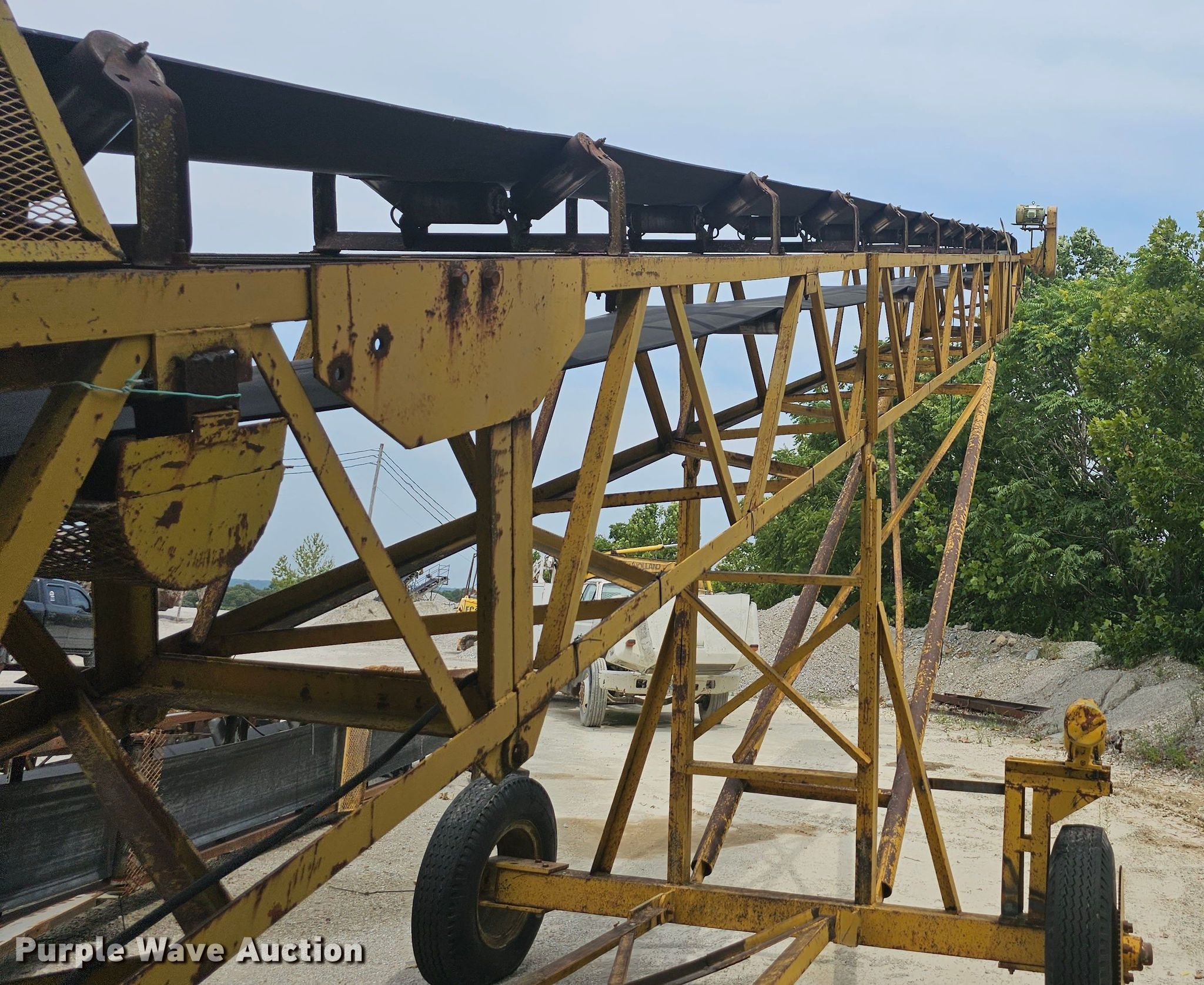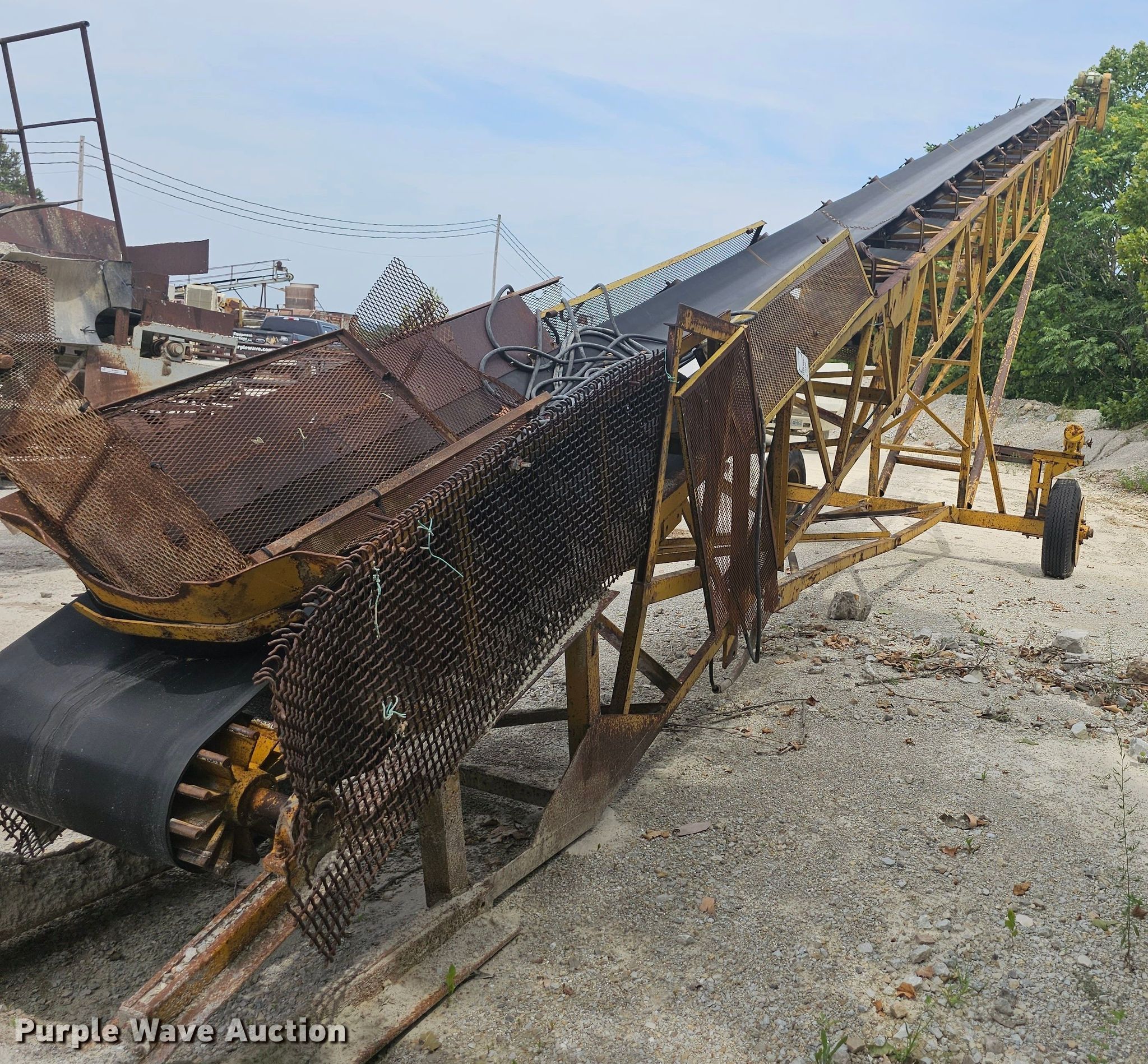 Radial stacking conveyor. Electric Motor. Phase: Three. Features Length: 65', Width: 26". Tires Tire size: 9.00-20. Jenkins Quarry LLC. FR 1195 and State Hwy 248. CASSVILLE, MO 65625