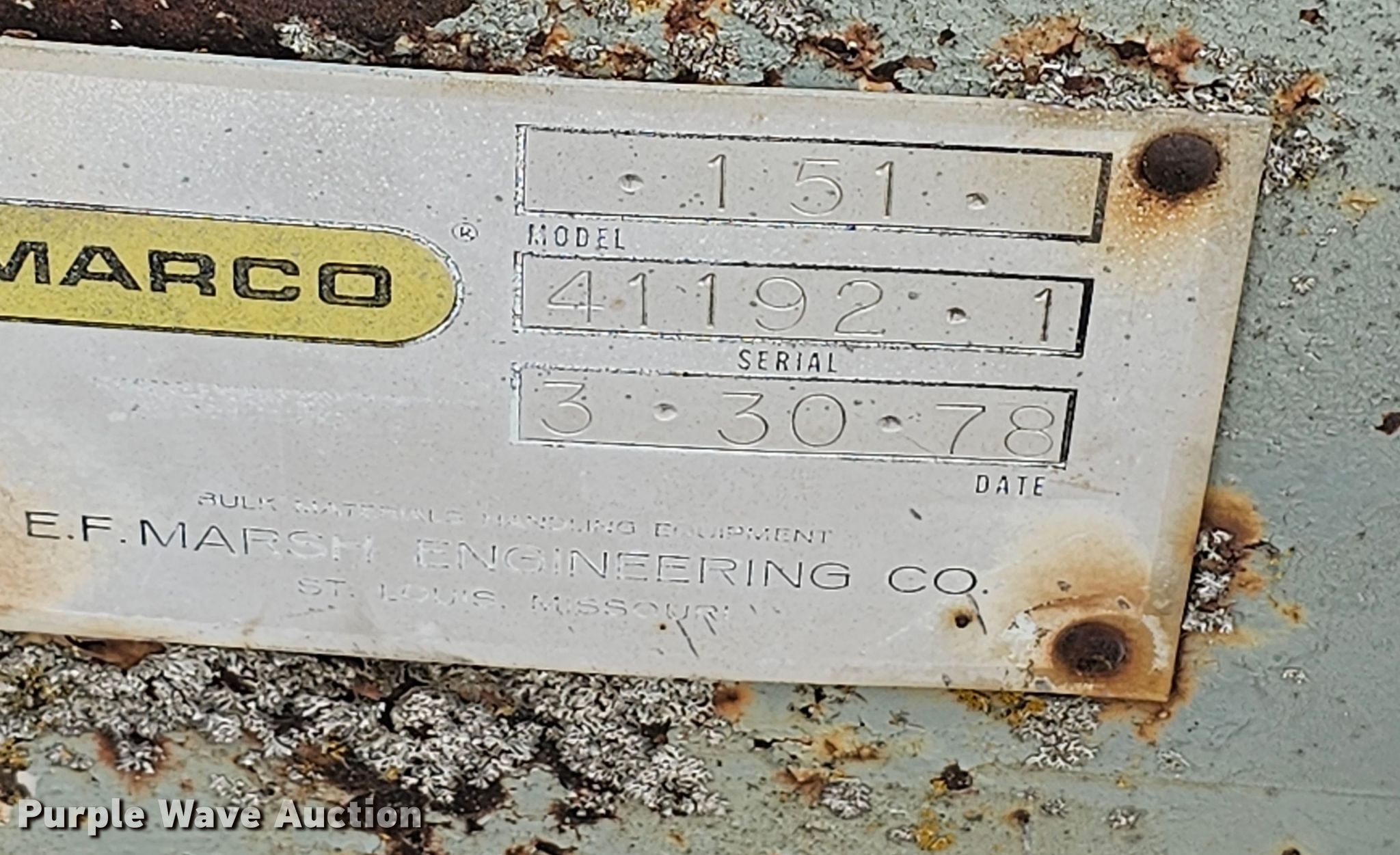 Purple Wave is selling a used Conveyor in Missouri. This item is a Marco 4-1192-1 conveyor with the following: Phase: Three