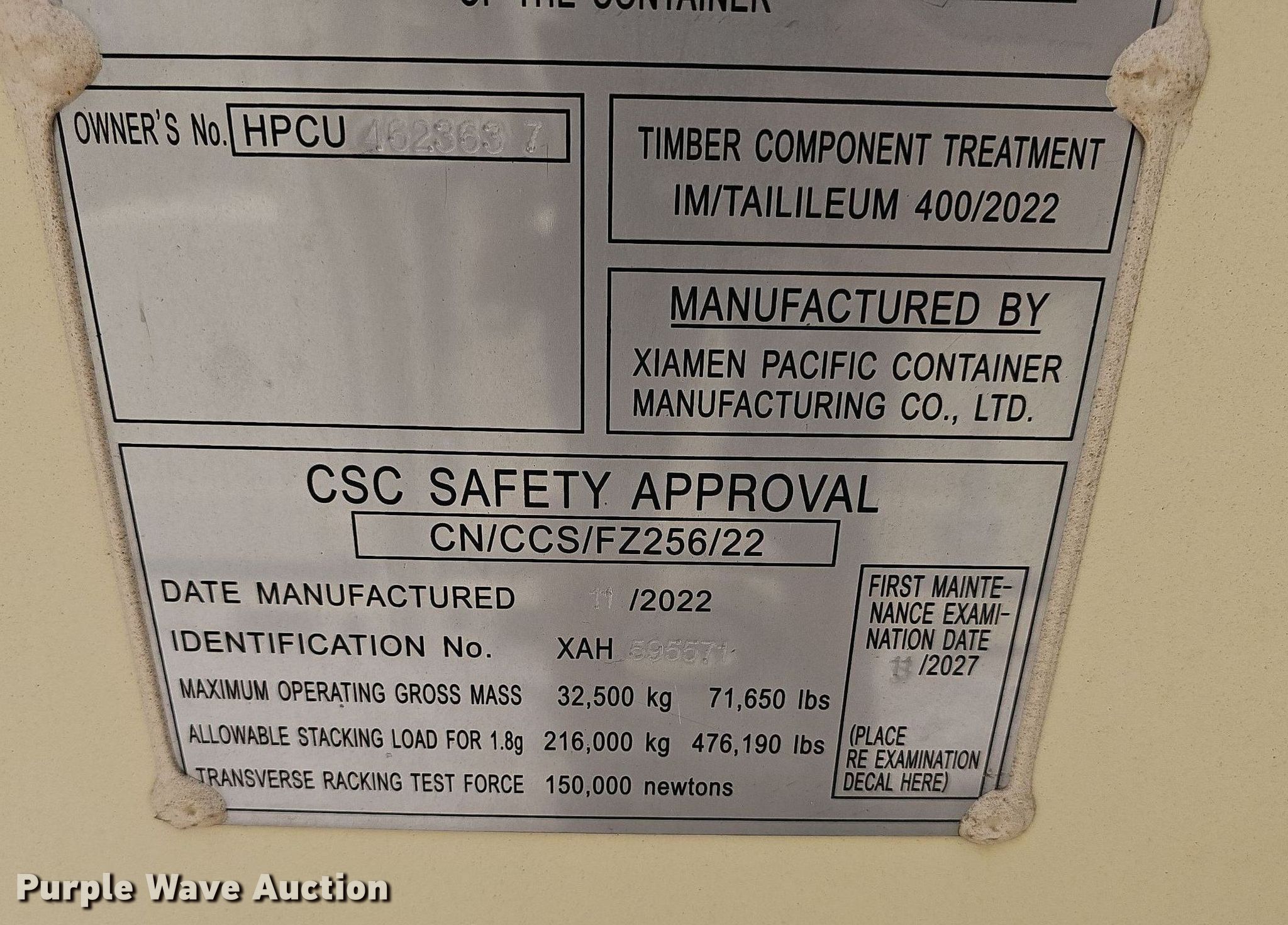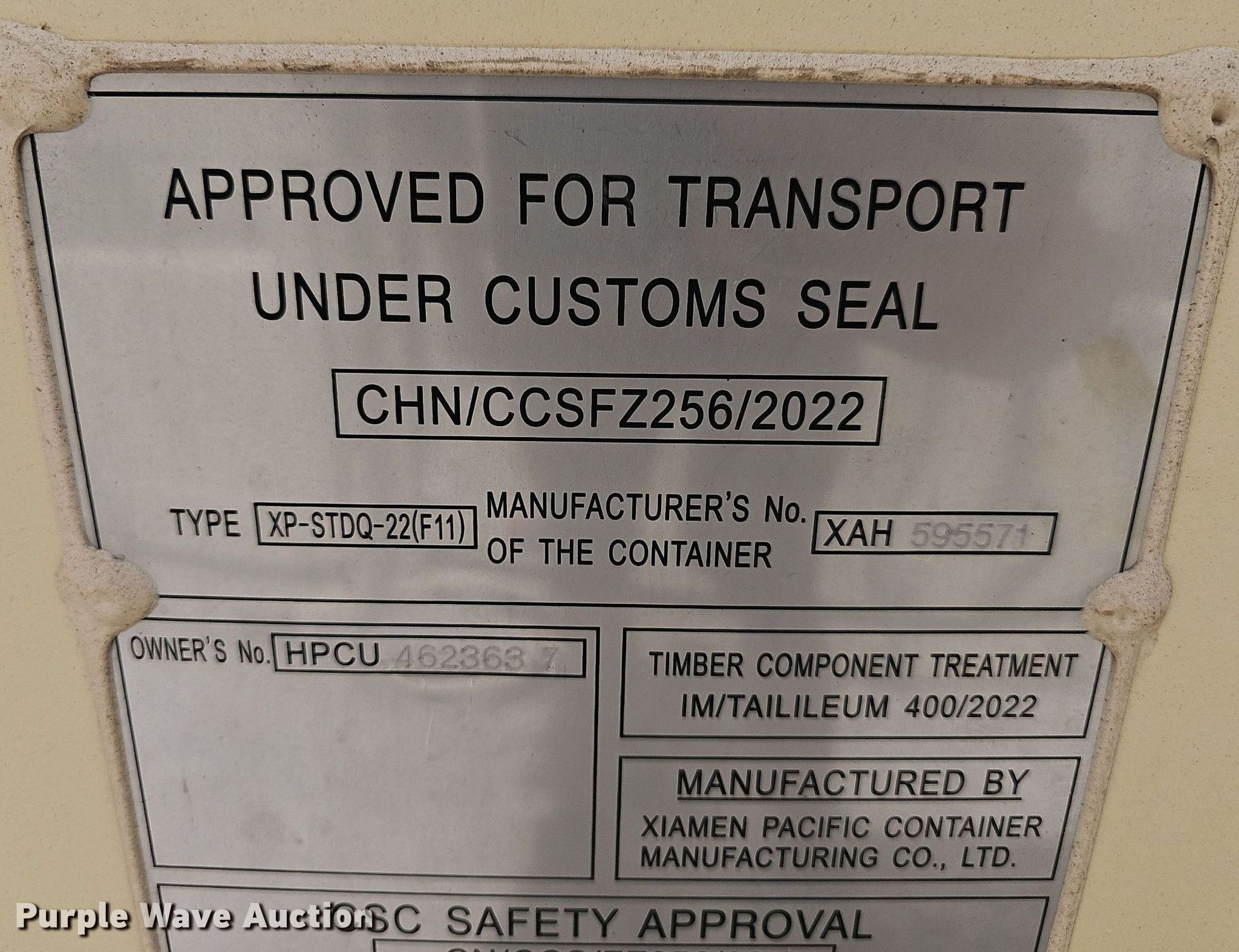 Purple Wave is selling a used Storage or Shipping Container in Missouri. This item is a 2022 Xiamen High Cube shipping container with the following: Serial: XAH59557-1, 40' L x 96" W x 9' 6" H