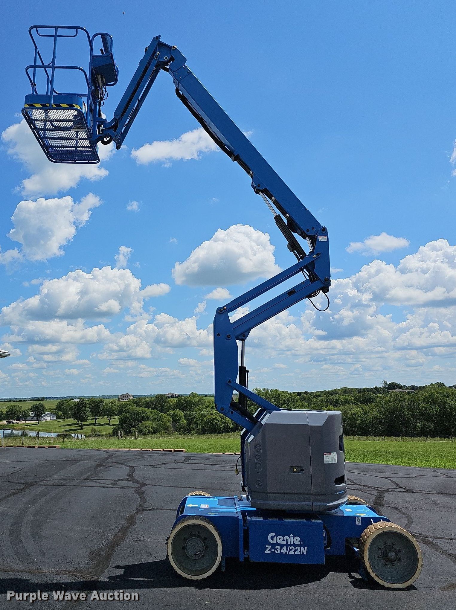 Purple Wave is selling a used Boom Lift in Kansas. This item is a 2013 Genie Z34/22N boom lift with the following: Hours: 474 on meter, Serial: Z34N1310562