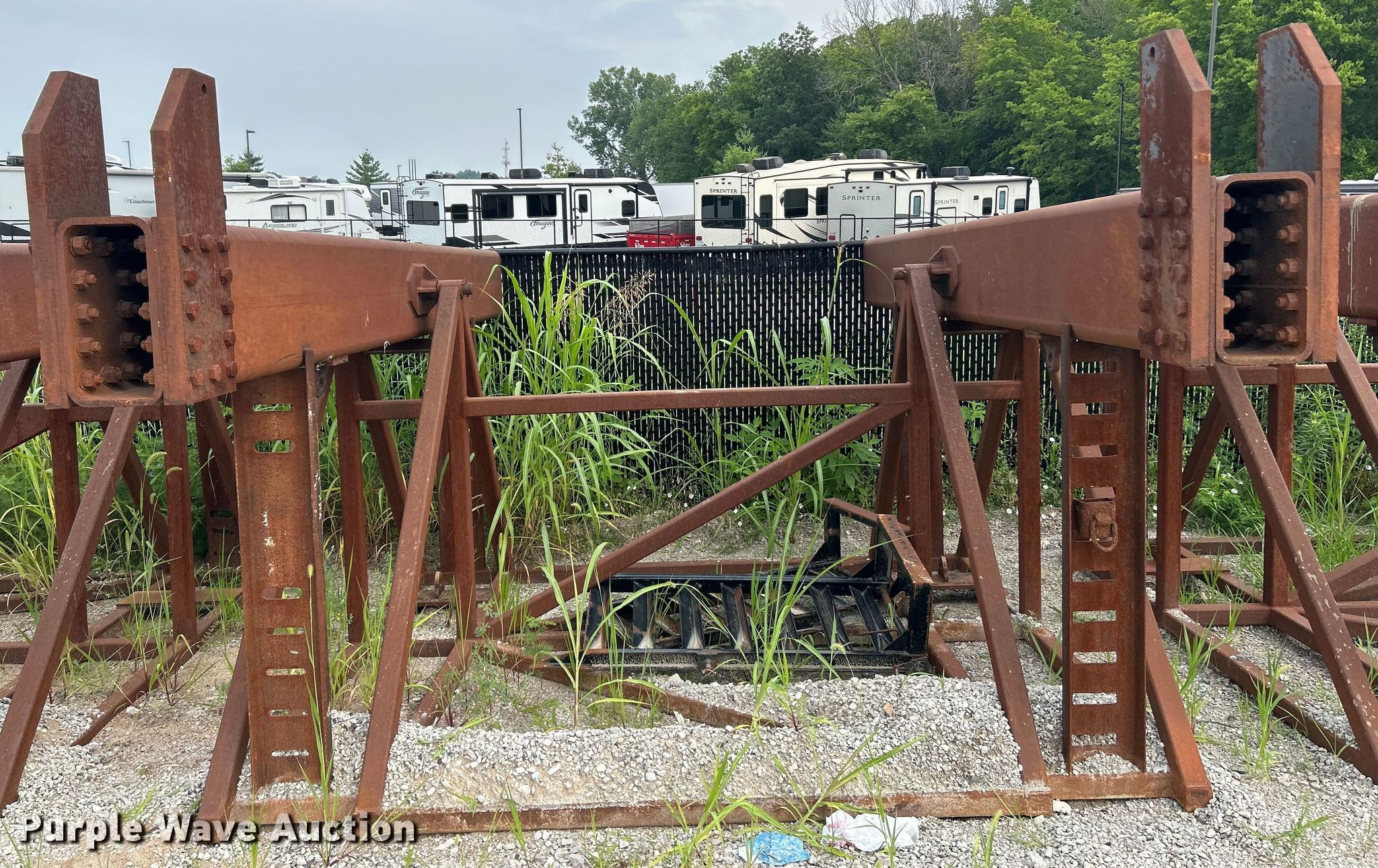 Purple Wave is selling a used Other Industrial or Business in Missouri. This item is a (2) precast stands with the following: 8' 6" x 9' 9" x 5' 4" frame, 16" x 8" x 5/8" x 13' 10" beams, Unknown operating condition of cylinders, Engineered blueprint drawings available upon request [email protected]