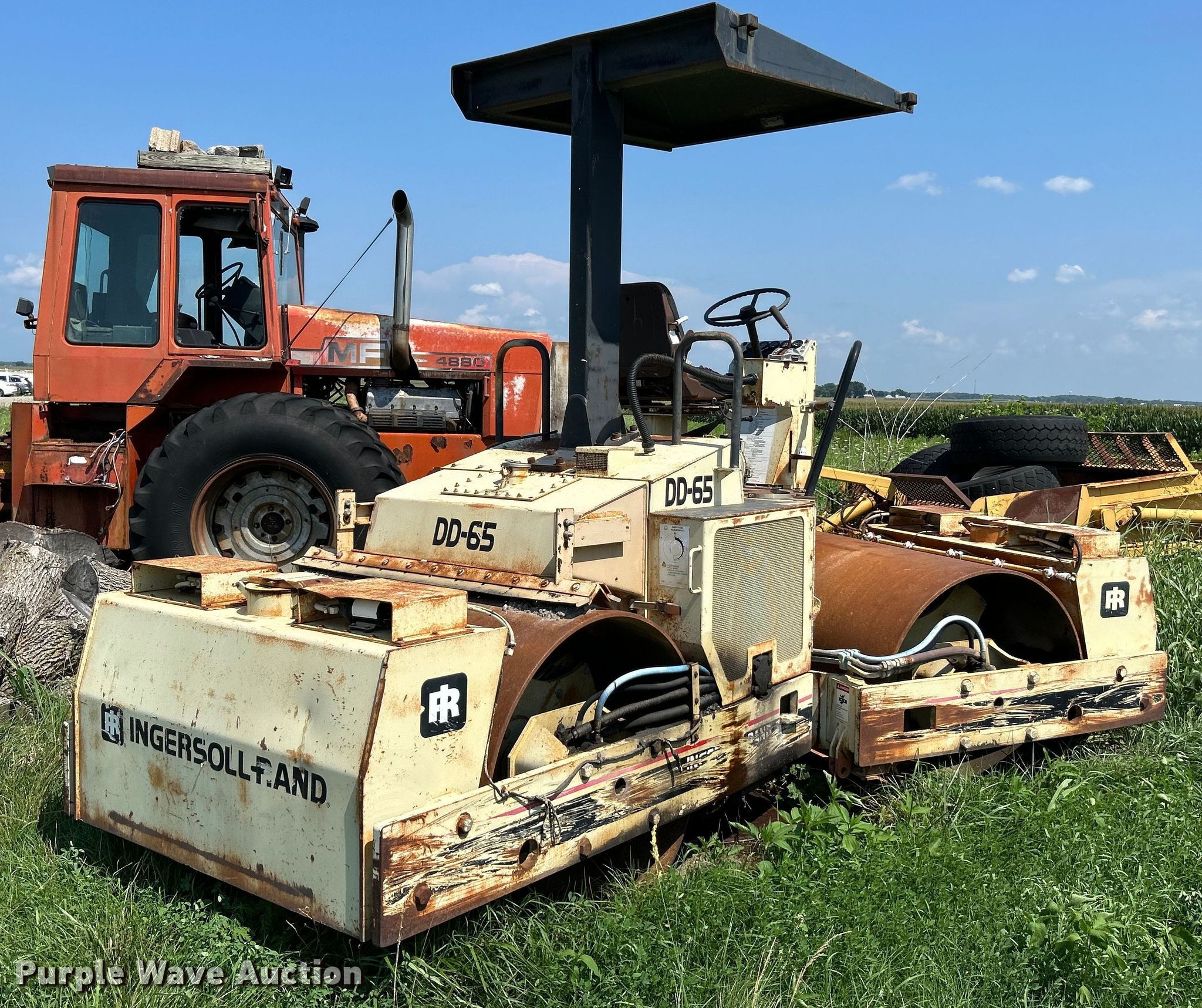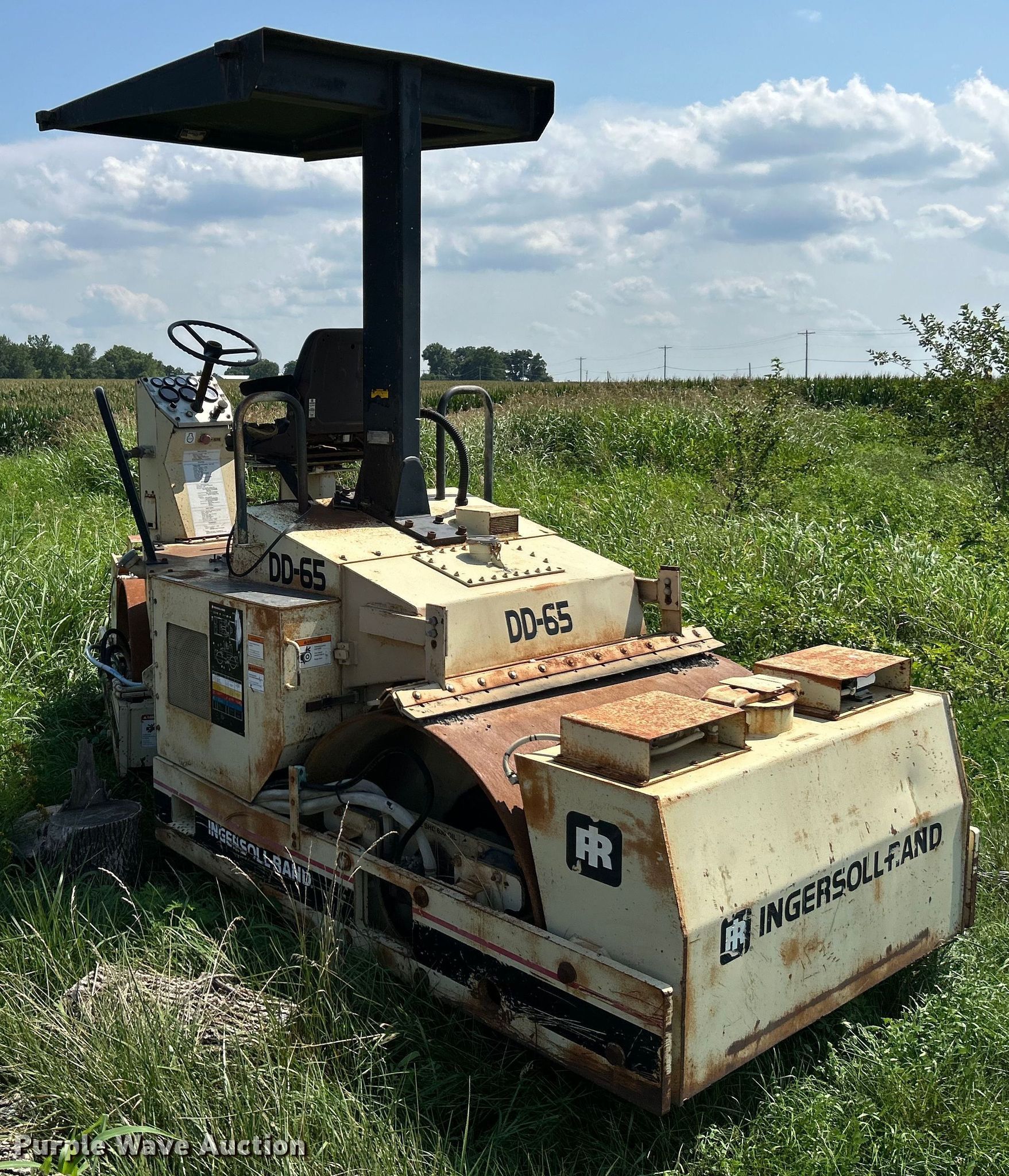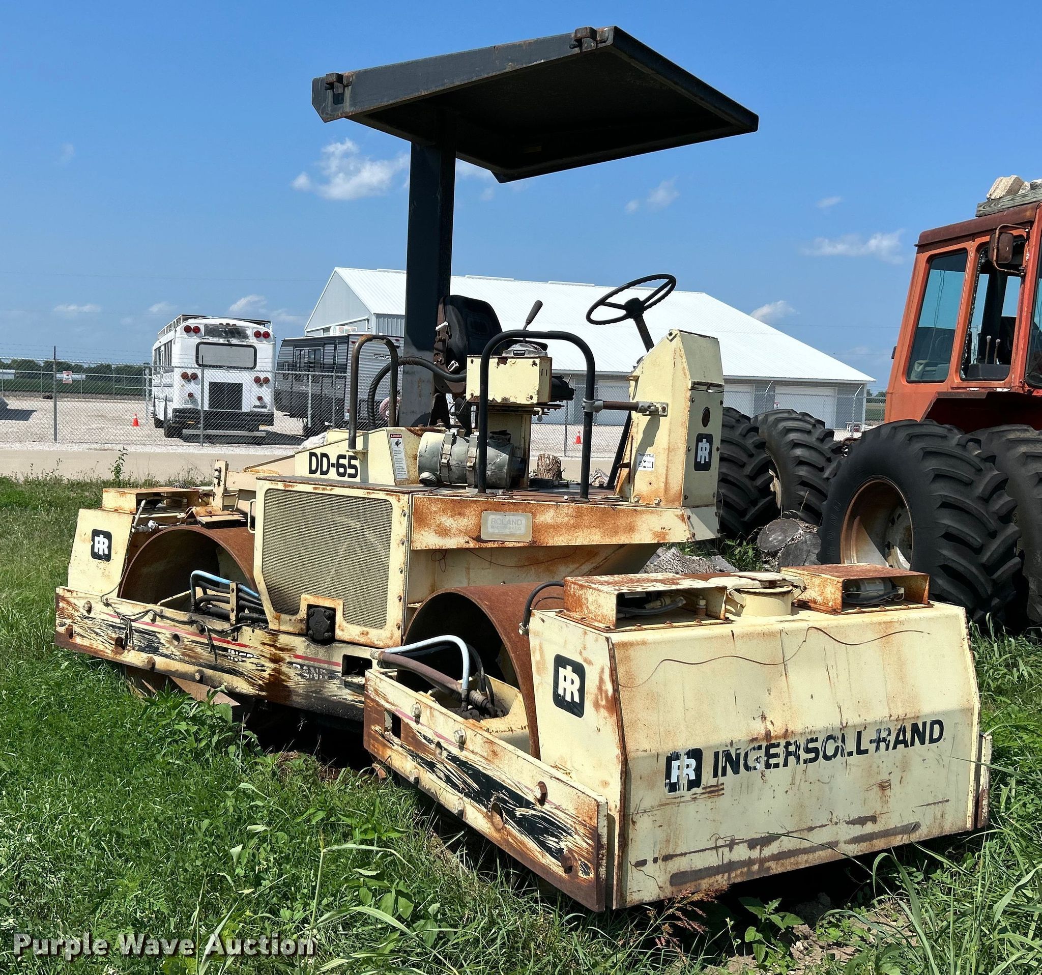 Purple Wave is selling a used Double Drum Roller Compactor in Illinois. This item is a 1996 Ingersoll Rand DD-65 double drum vibratory roller with the following: Hours: 1,355 on meter, Serial: 145242