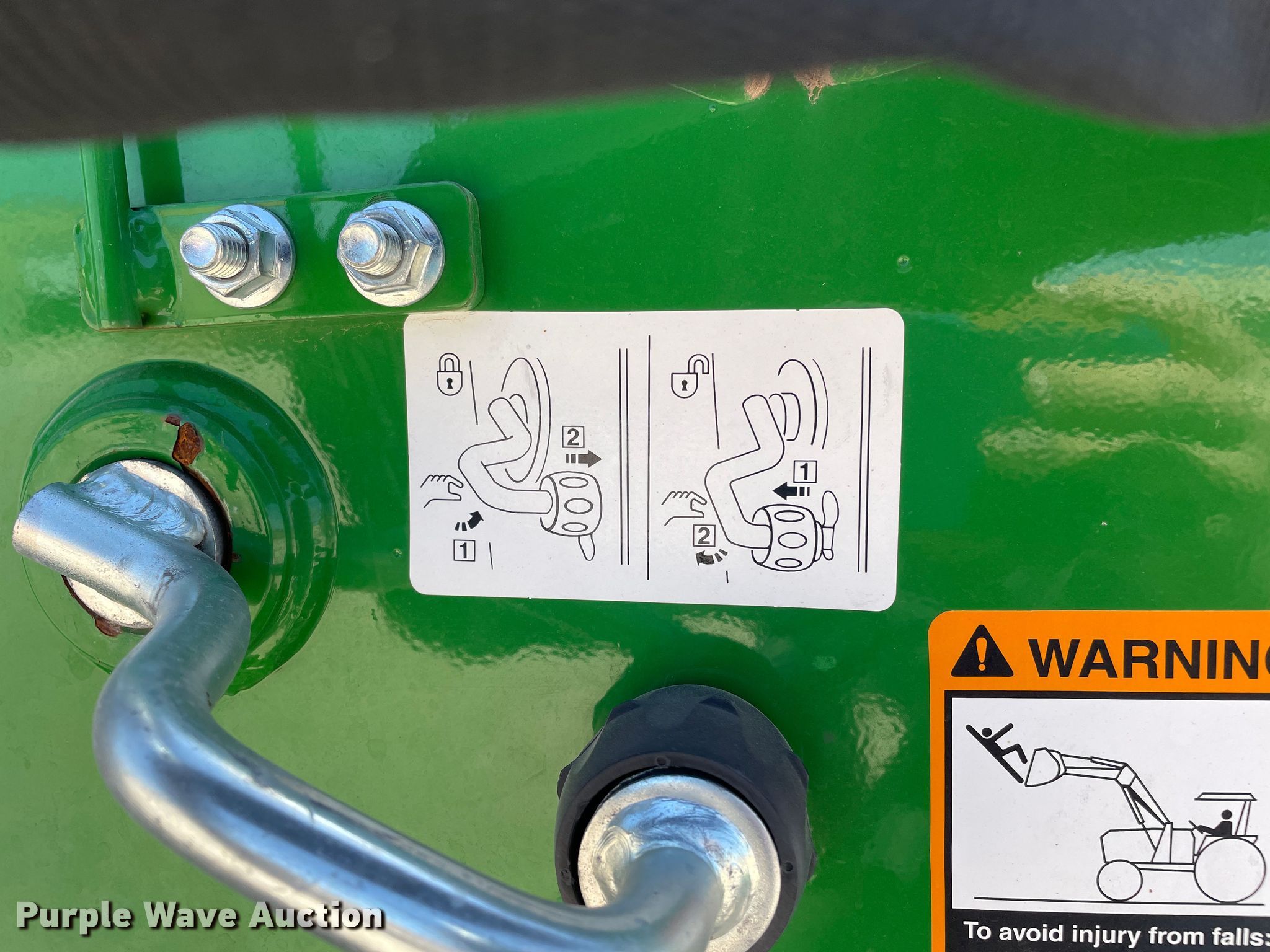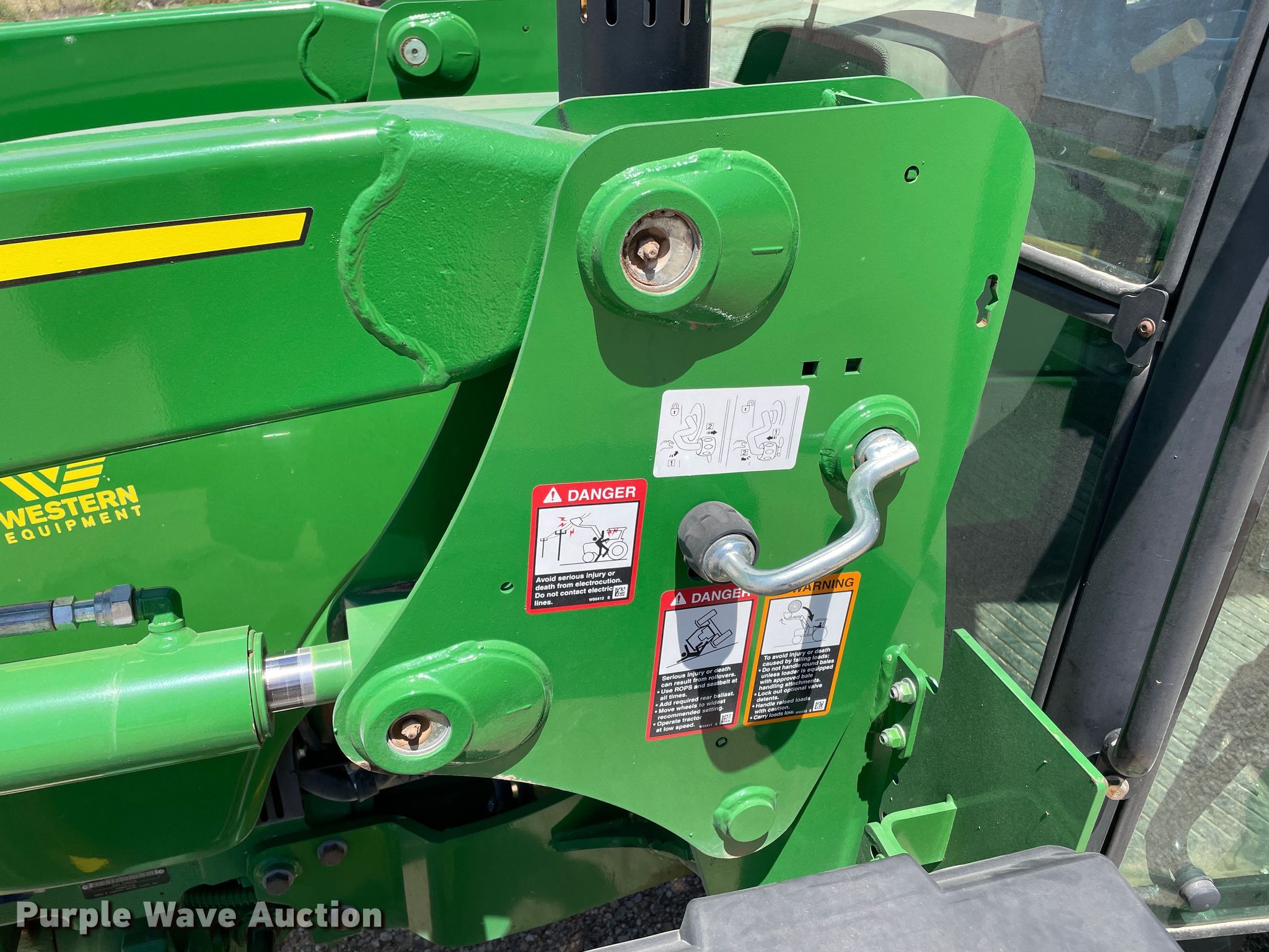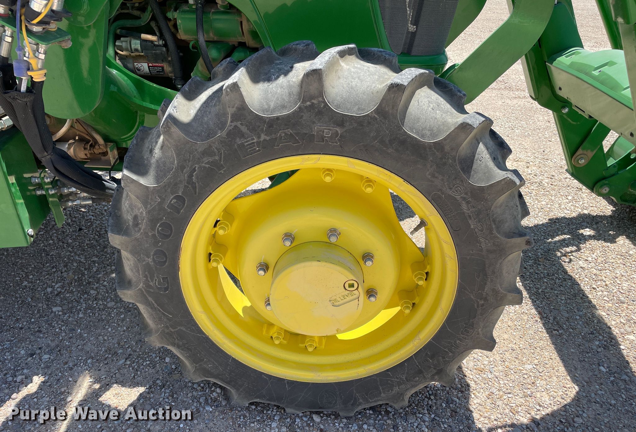 2018 John Deere 5075E MFWD tractor. Hours: 166 on meter, Serial: 1LV5075EJDY245238. Engine John Deere 3029H, Displacement: 2.9L, Cylinders: 3, Fuel type: Diesel, HP: 75. Transmission Synchro, 12F - 12R, Left-hand reverser, Differential lock. Operators station AC, Heat. Features PTO: 540E, Three point Top link, Seven pin outlet, Hydraulic remote sets Rear: 2, Loader John Deere 520M, Quick attach, Controls: Joystick, Bucket Width: 72".. Tires Front: 9.5-24, Rear: 16.9-28. Schmidt Excavating. 3900 E FM 1151. Amarillo, TX 79118