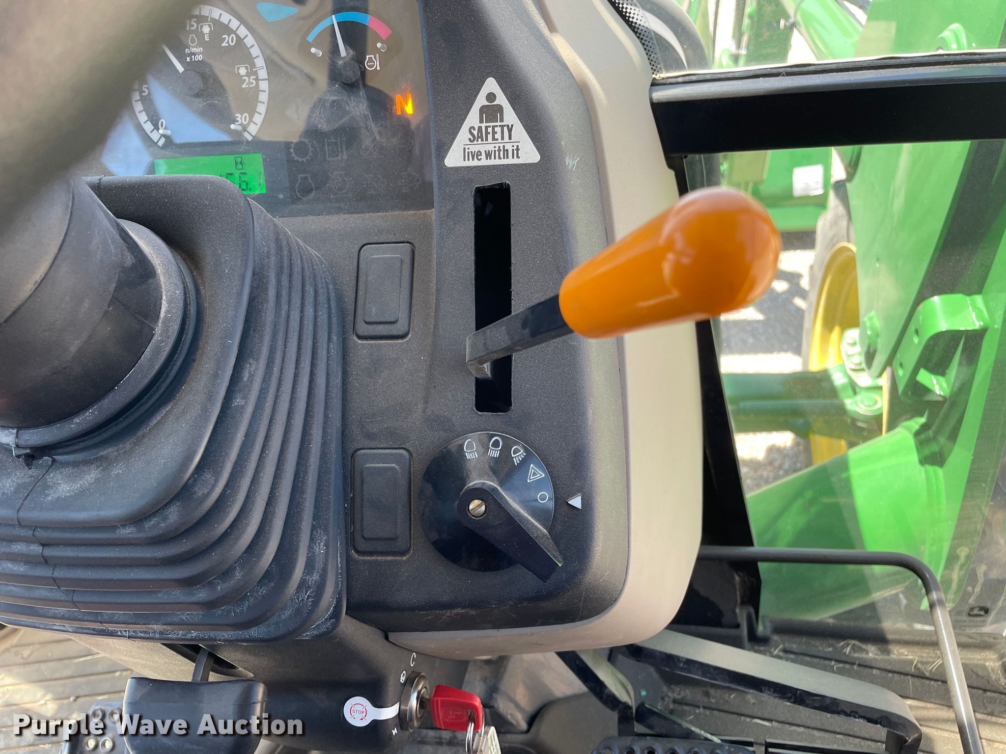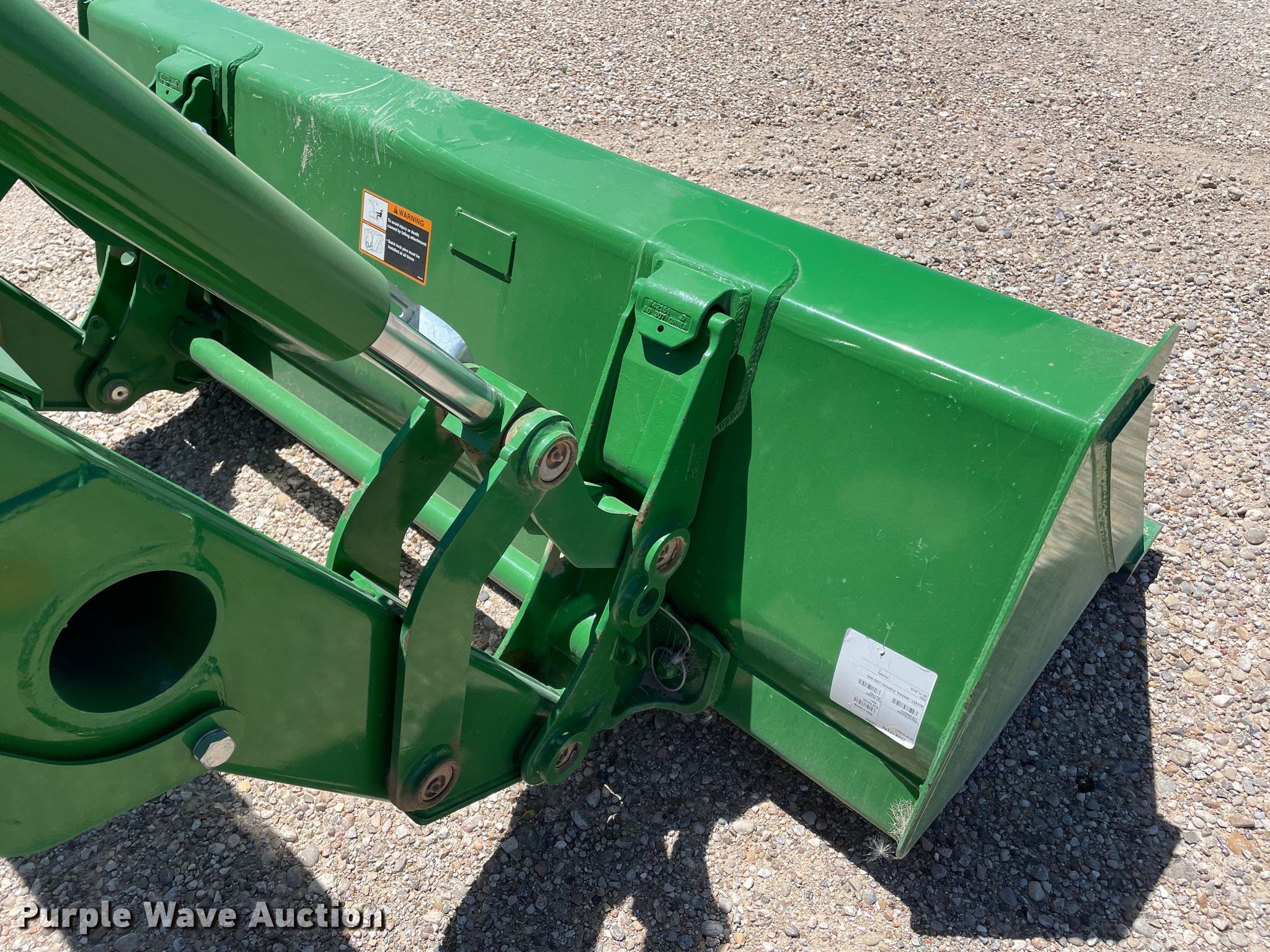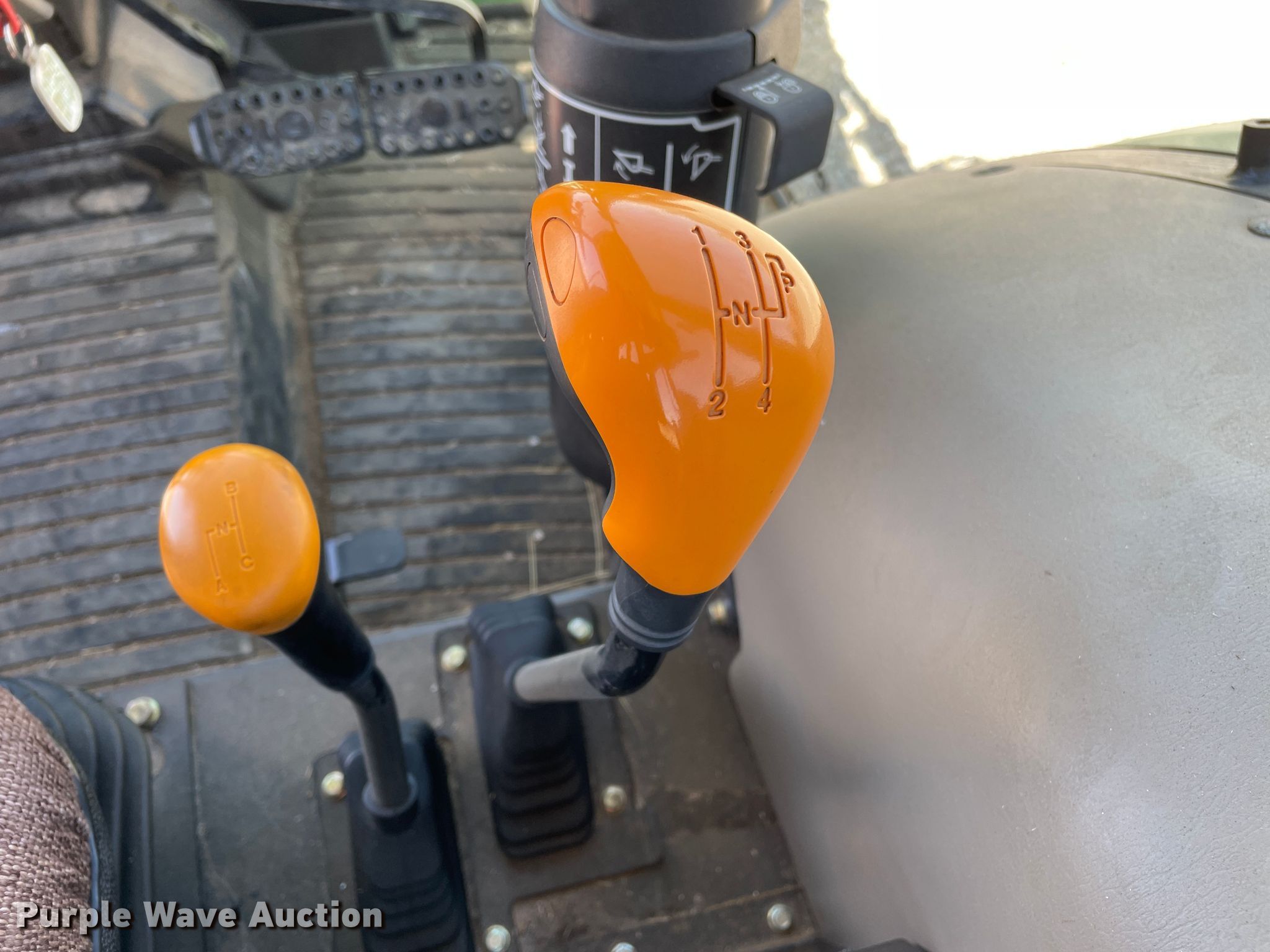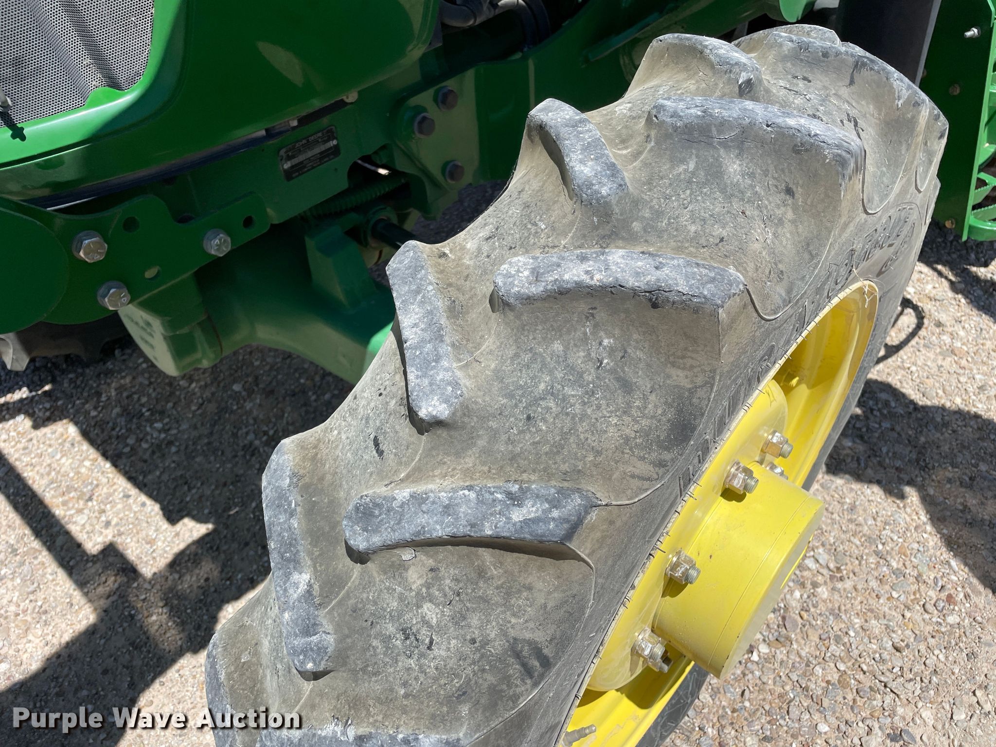 2018 John Deere 5075E MFWD tractor. Hours: 166 on meter, Serial: 1LV5075EJDY245238. Engine John Deere 3029H, Displacement: 2.9L, Cylinders: 3, Fuel type: Diesel, HP: 75. Transmission Synchro, 12F - 12R, Left-hand reverser, Differential lock. Operators station AC, Heat. Features PTO: 540E, Three point Top link, Seven pin outlet, Hydraulic remote sets Rear: 2, Loader John Deere 520M, Quick attach, Controls: Joystick, Bucket Width: 72".. Tires Front: 9.5-24, Rear: 16.9-28. Schmidt Excavating. 3900 E FM 1151. Amarillo, TX 79118