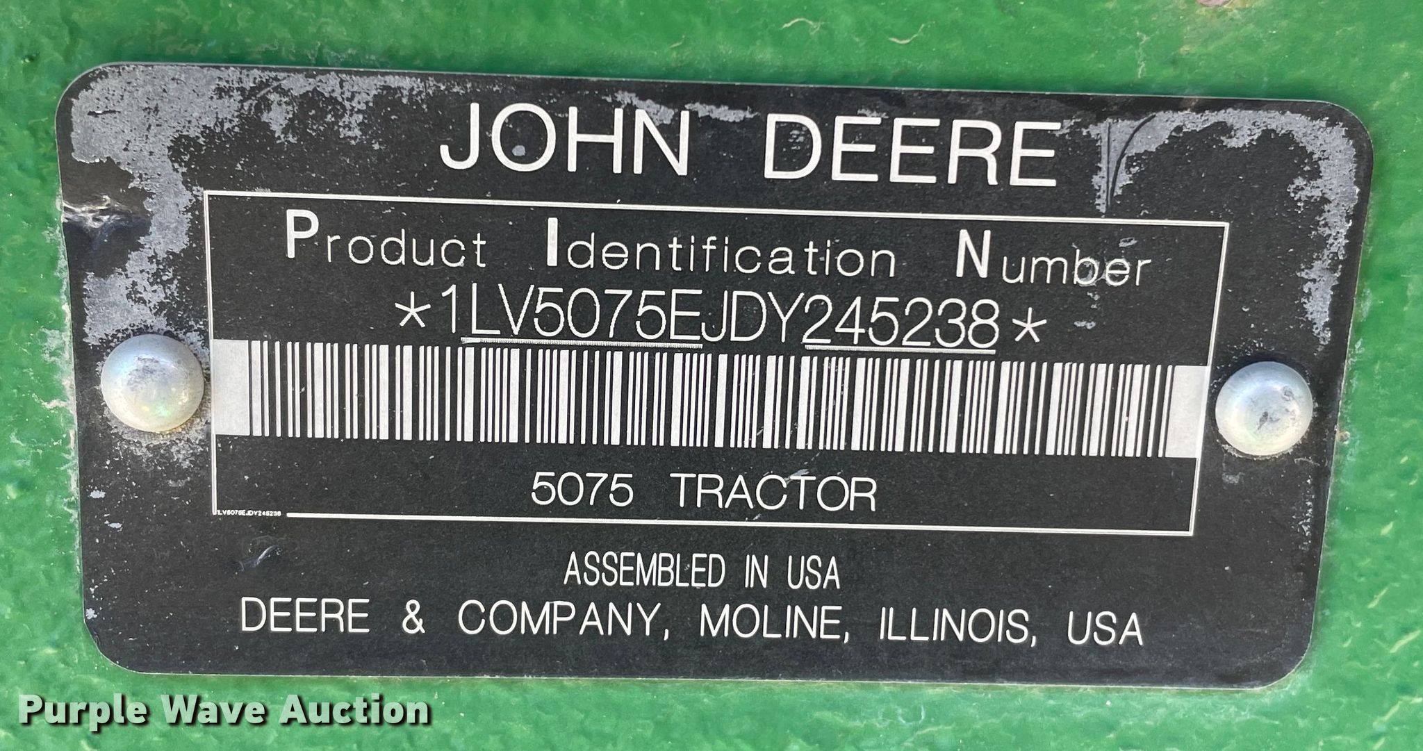 Purple Wave is selling a used Tractor in Texas. This item is a 2018 John Deere 5075E MFWD tractor with the following: Hours: 166 on meter, Serial: 1LV5075EJDY245238