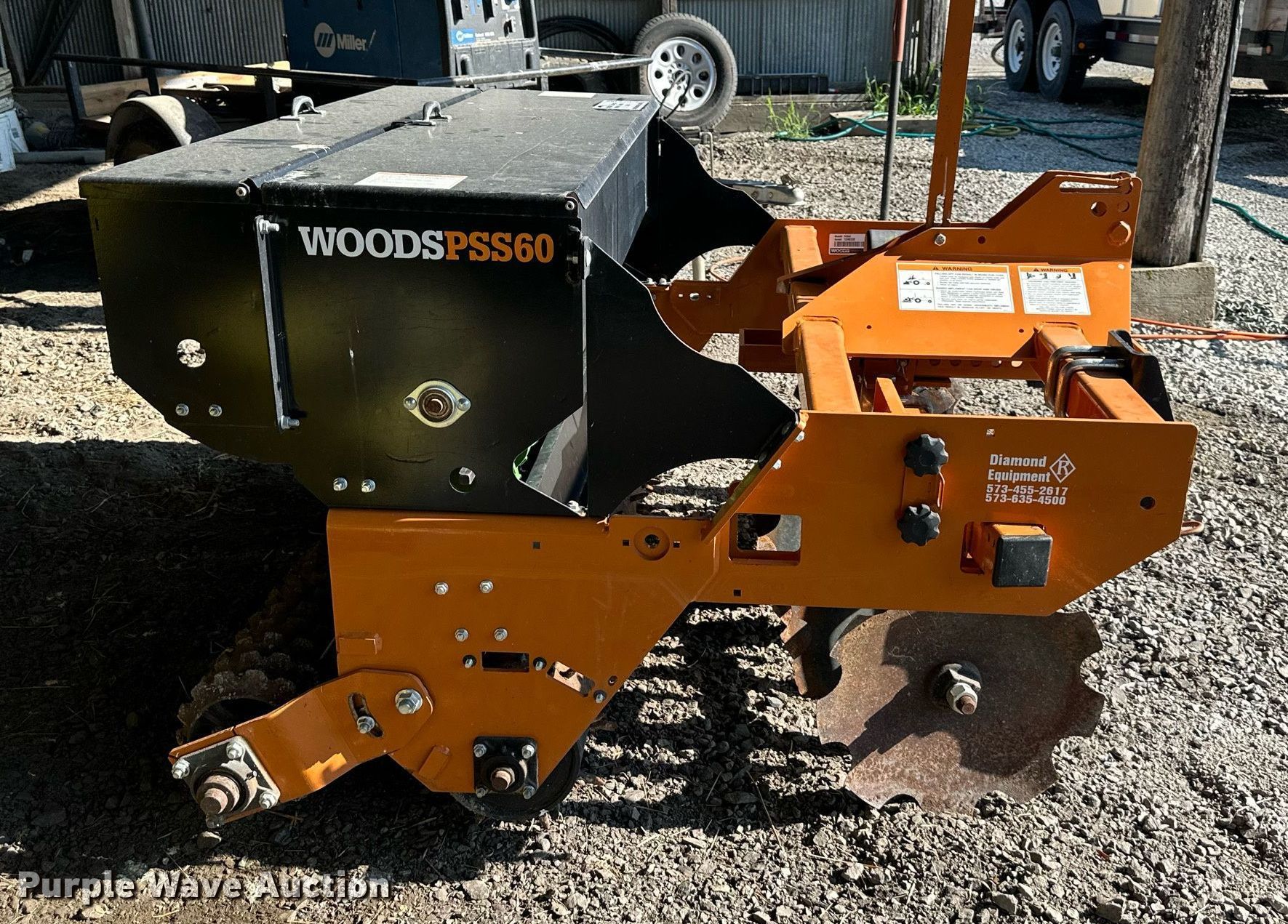 Purple Wave is selling a used Grain Drill or Seeder in Kansas. This item is a Woods PSS60 seeder with the following: Width: 5', Serial: 1246338