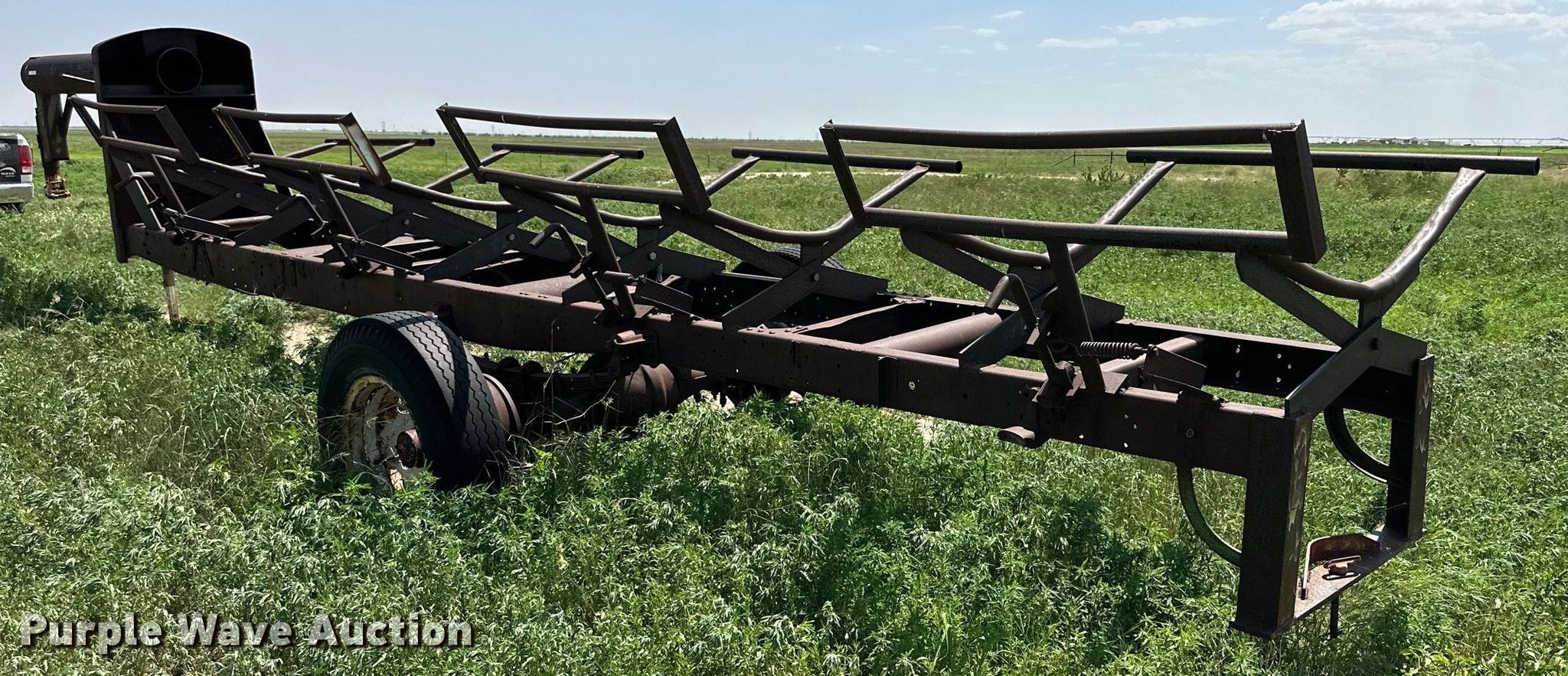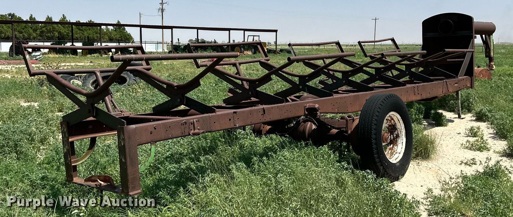 Purple Wave is selling a used Hay Handling in Texas. This item is a Shop built hay bale trailer with the following: VIN: S159400