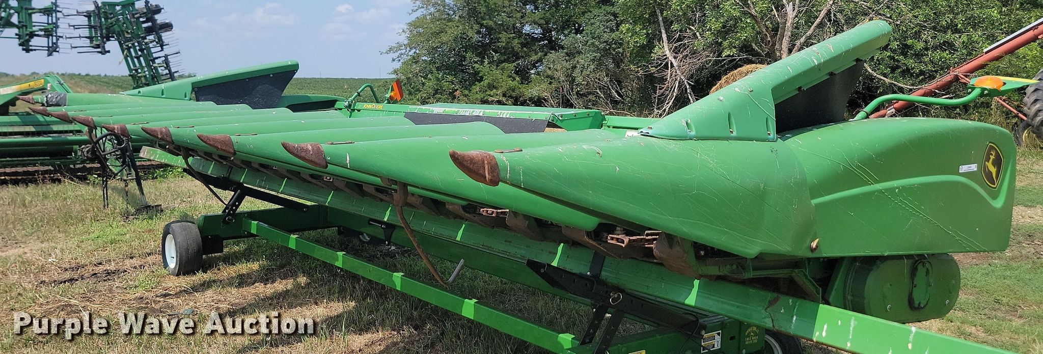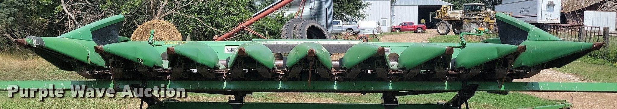 Purple Wave is selling a used Corn or Row Head in South Dakota. This item is a John Deere 893 corn head with the following: Rows: 8, Row spacing: 30", Hydraulic deck plates, Single point coupler, Drivelines: Dual, Height Sense