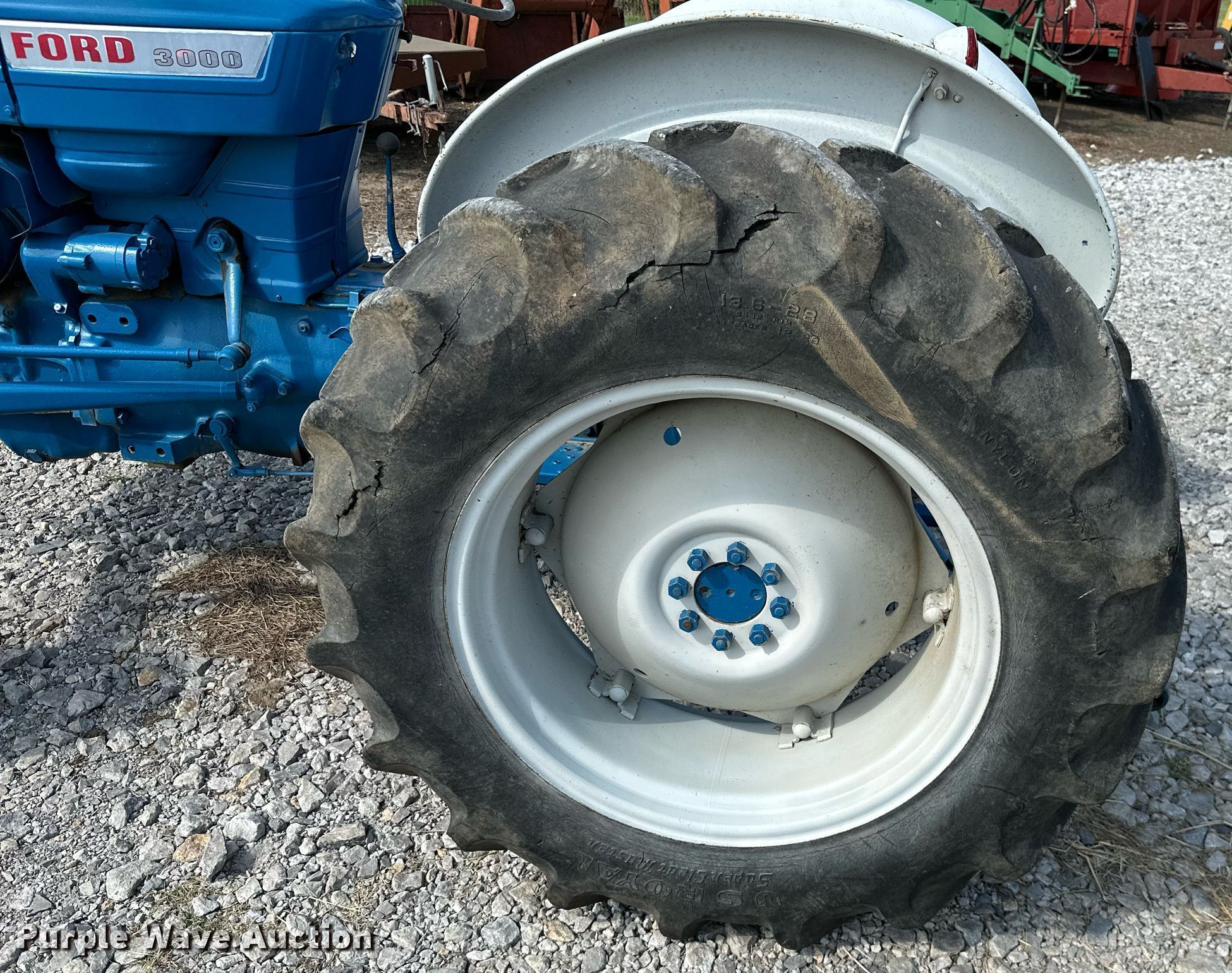 1966 Ford 3000 tractor. Hours: 1,570 on meter, Serial: C155618. Engine Cylinders: 3, Fuel type: Gas. Transmission Manual, 8F - 2R. Features PTO: 540, Three point Top link. Tires Front: 6.00-16SL, Rear: 13.6-28. Skiatook, OK 74070