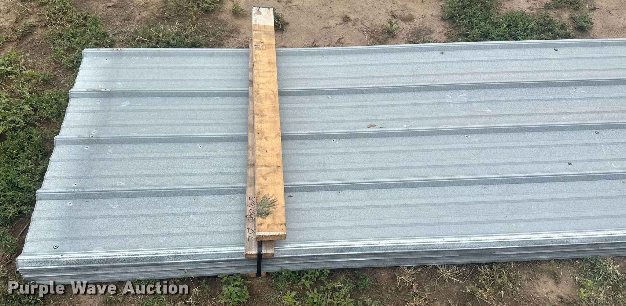 Purple Wave is selling a used Building Materials in Kansas. This item is a (160) sheets of metal siding/roofing with the following: 12' L x 36" W, ICN: NM9512, NM9513