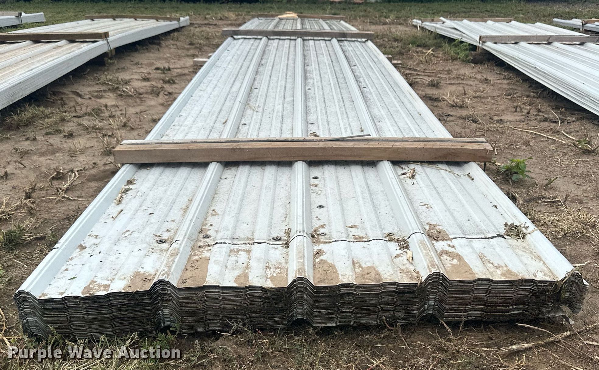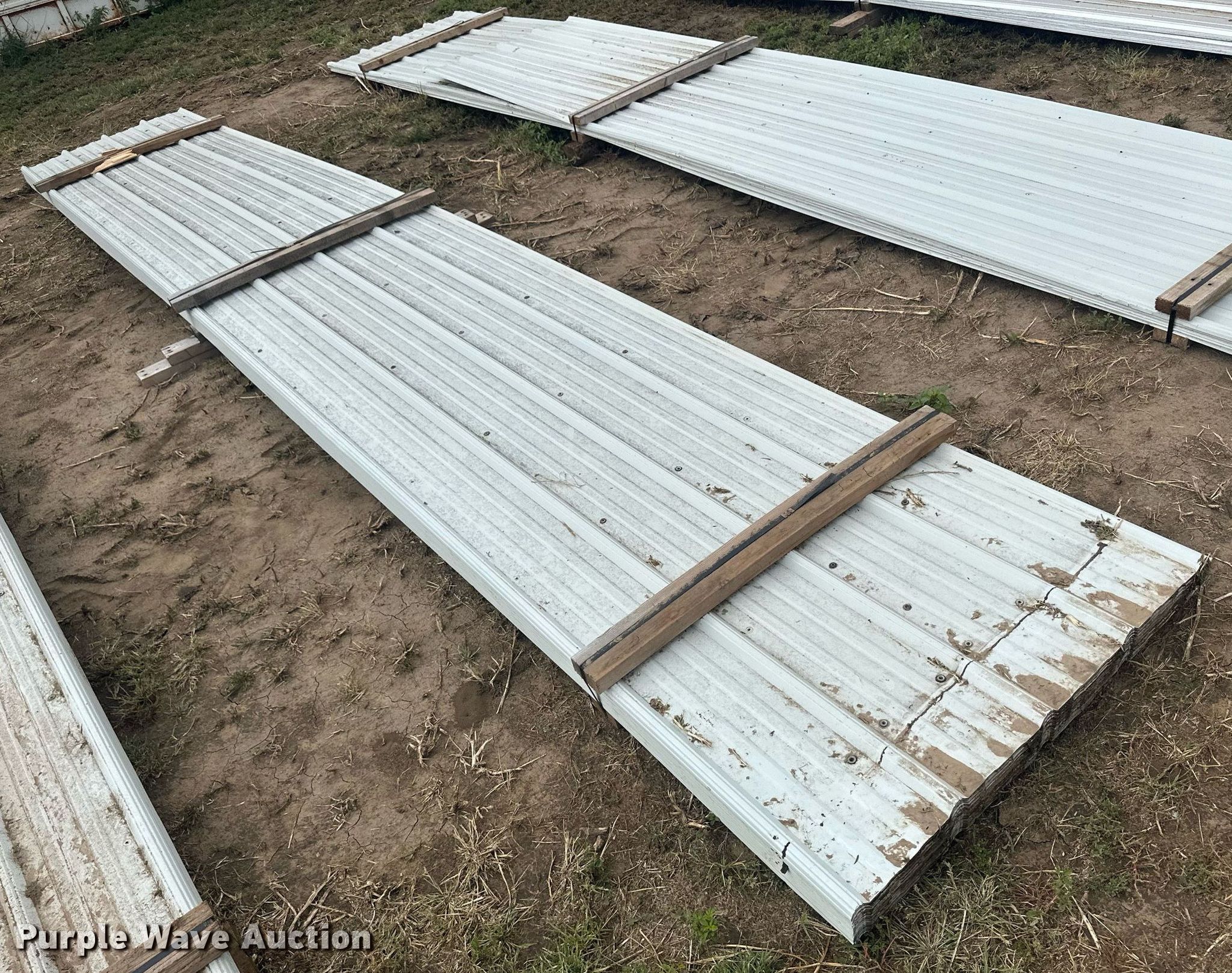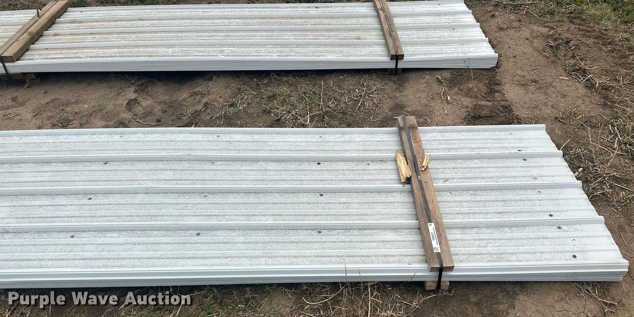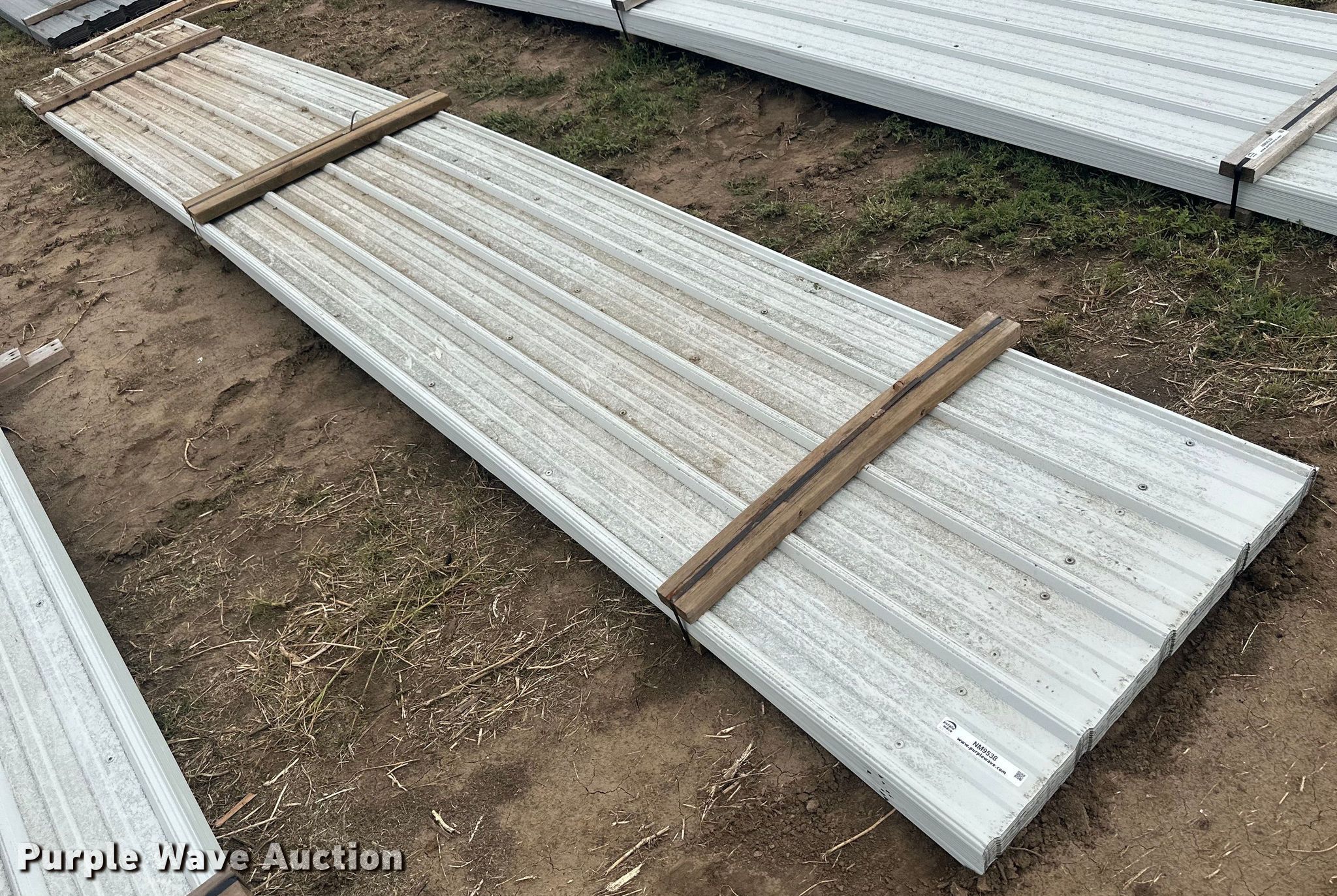 Purple Wave is selling a used Building Materials in Kansas. This item is a (136) sheets of metal siding/roofing with the following: (100) 20' 6" L x 36" W, (33) 20' L x 36" W, (2) 11' L x 36" W, 15' L x 36" W, ICN: NM9536, NM9537, NM9538