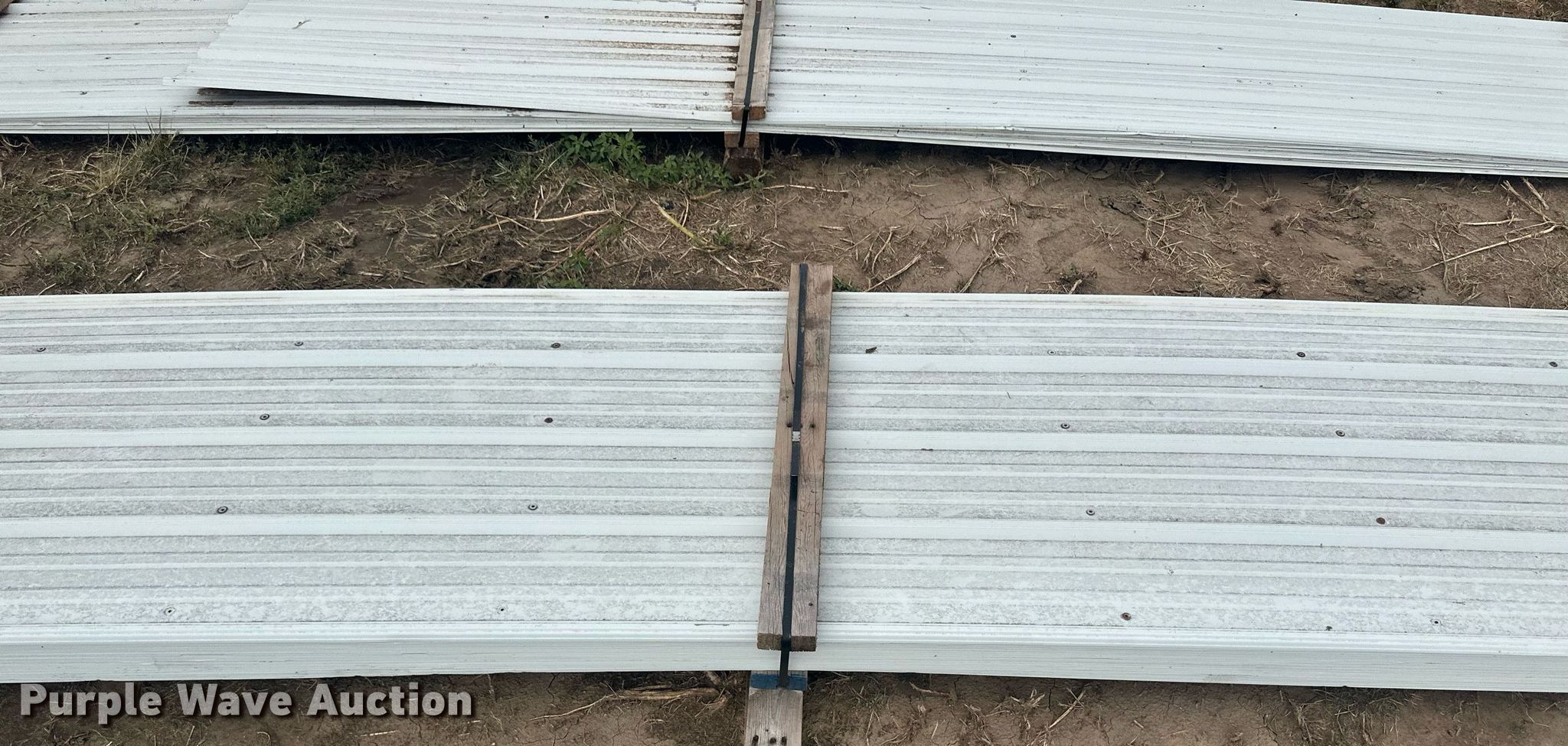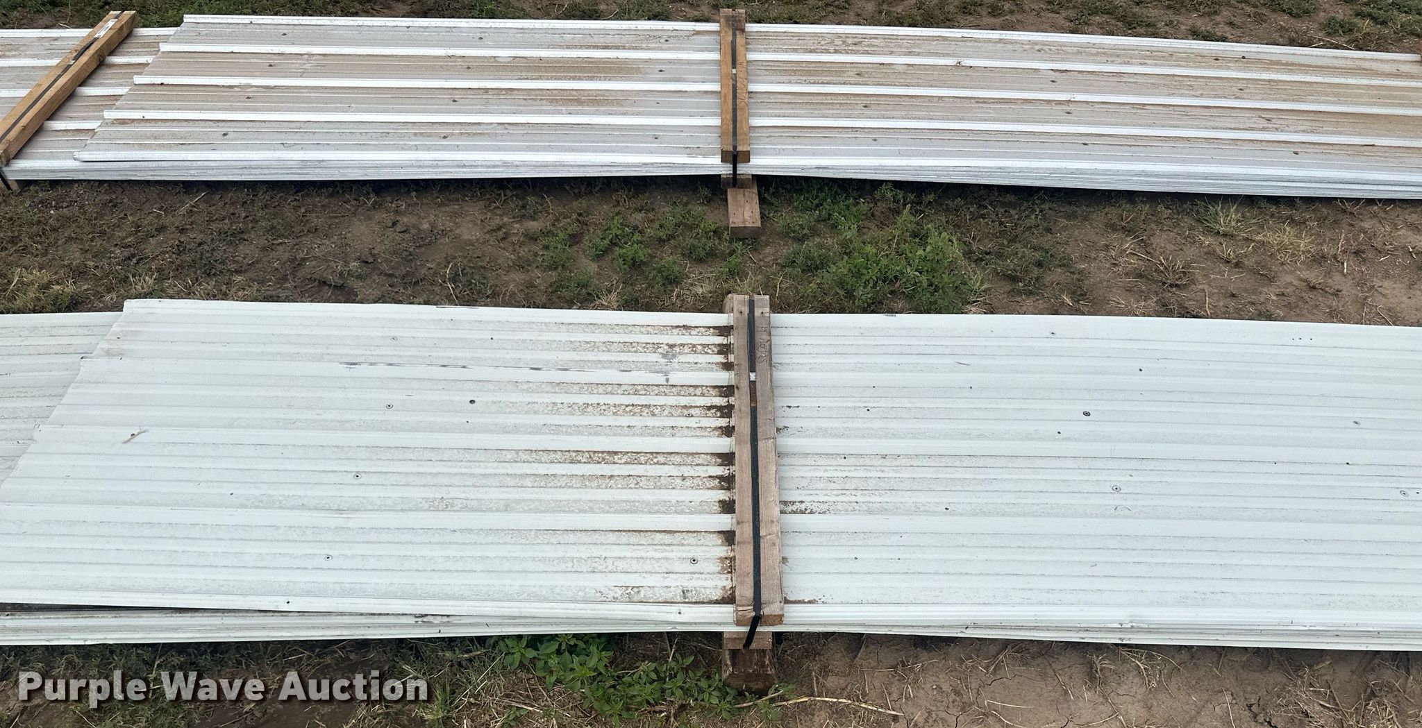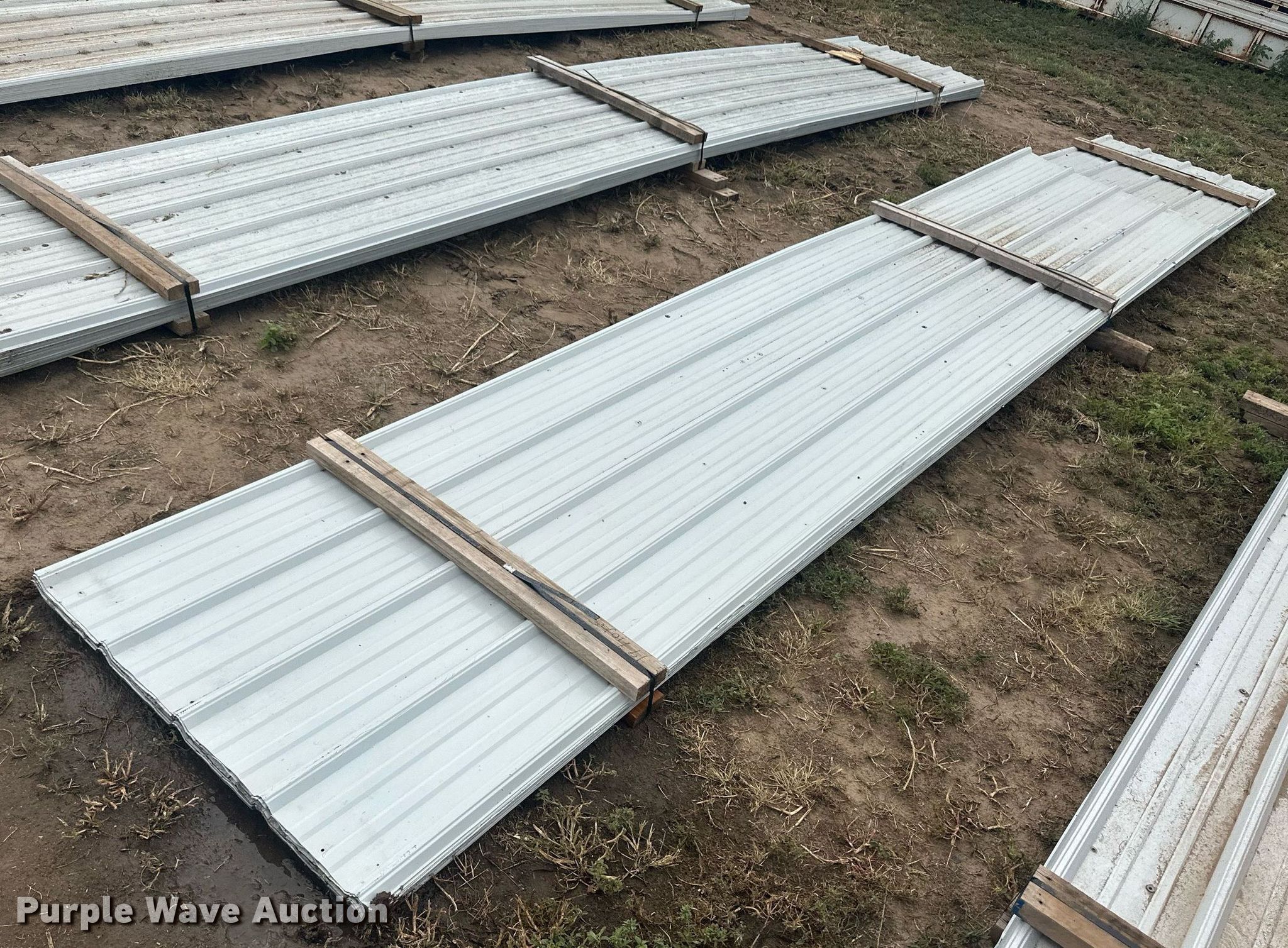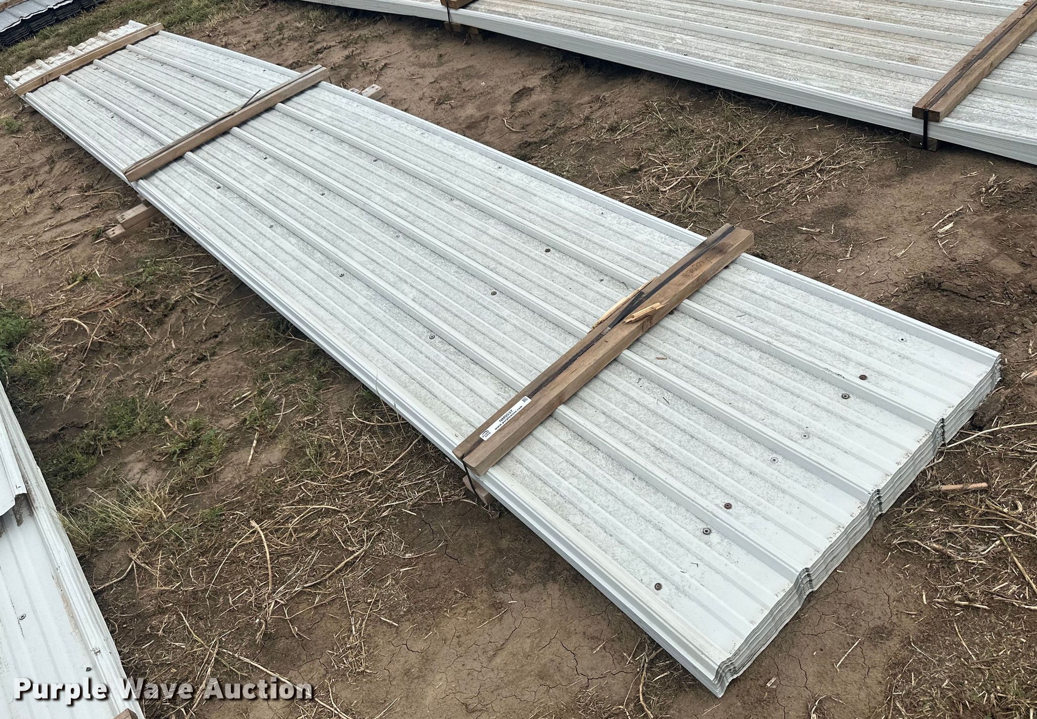 Purple Wave is selling a used Building Materials in Kansas. This item is a (136) sheets of metal siding/roofing with the following: (100) 20' 6" L x 36" W, (33) 20' L x 36" W, (2) 11' L x 36" W, 15' L x 36" W, ICN: NM9536, NM9537, NM9538