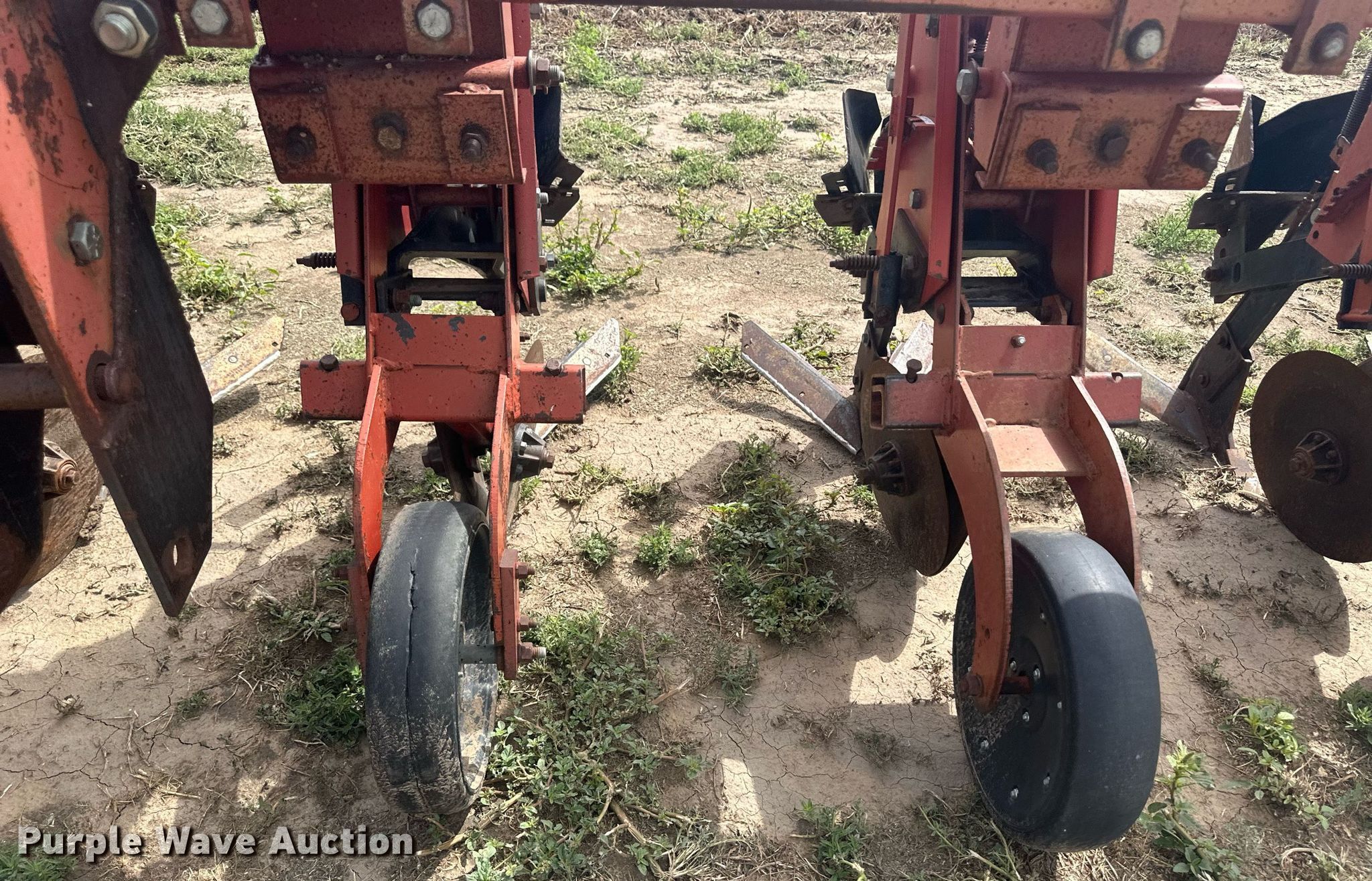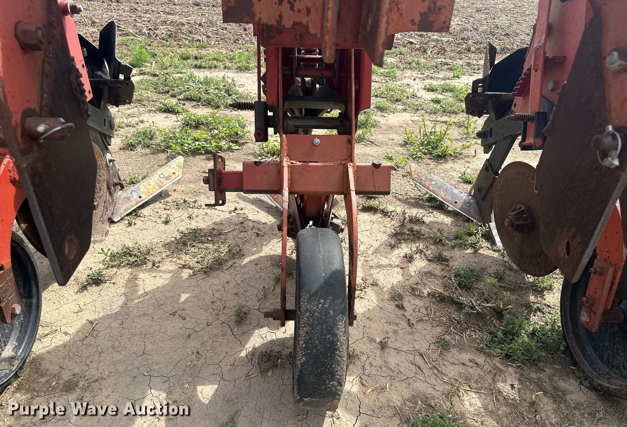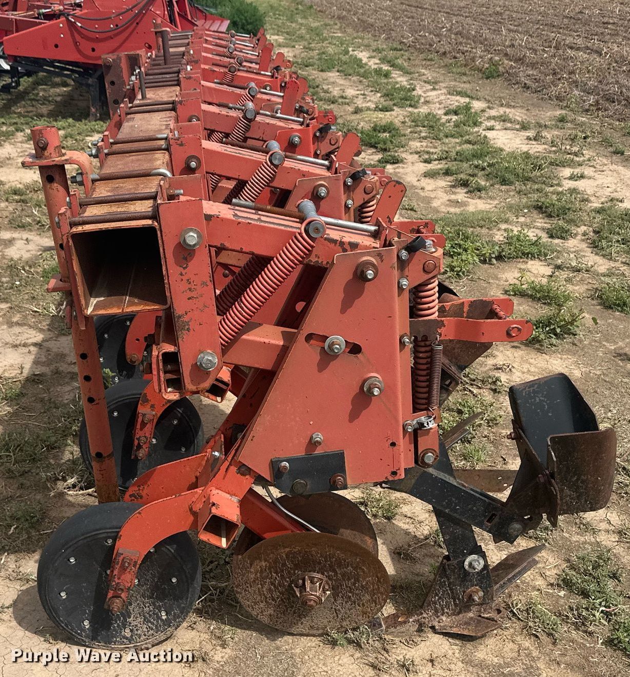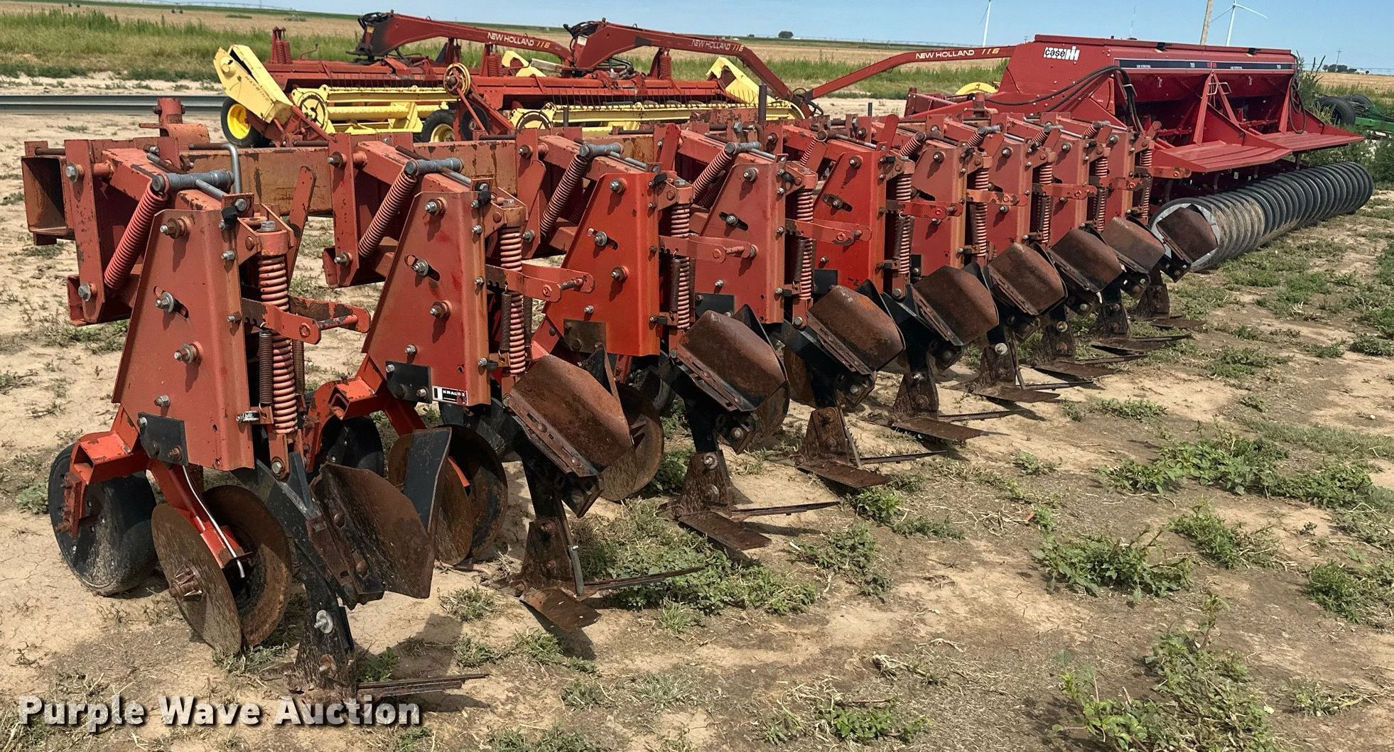 Krause 4706 row crop cultivator. Overall width: 20', Serial: EXP1. Features Number of rows: 8, Row spacing: 30", Disk openers: Double, Shanks, Hitch: Three point. Ulyssess, KS 67880