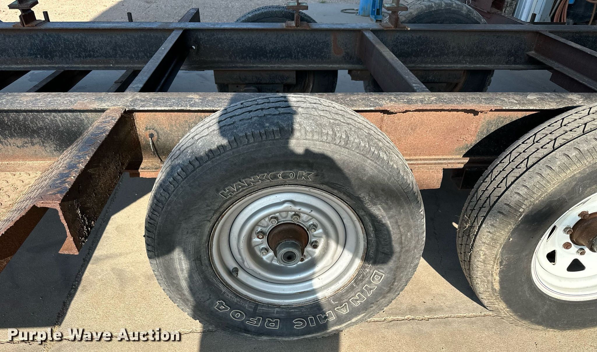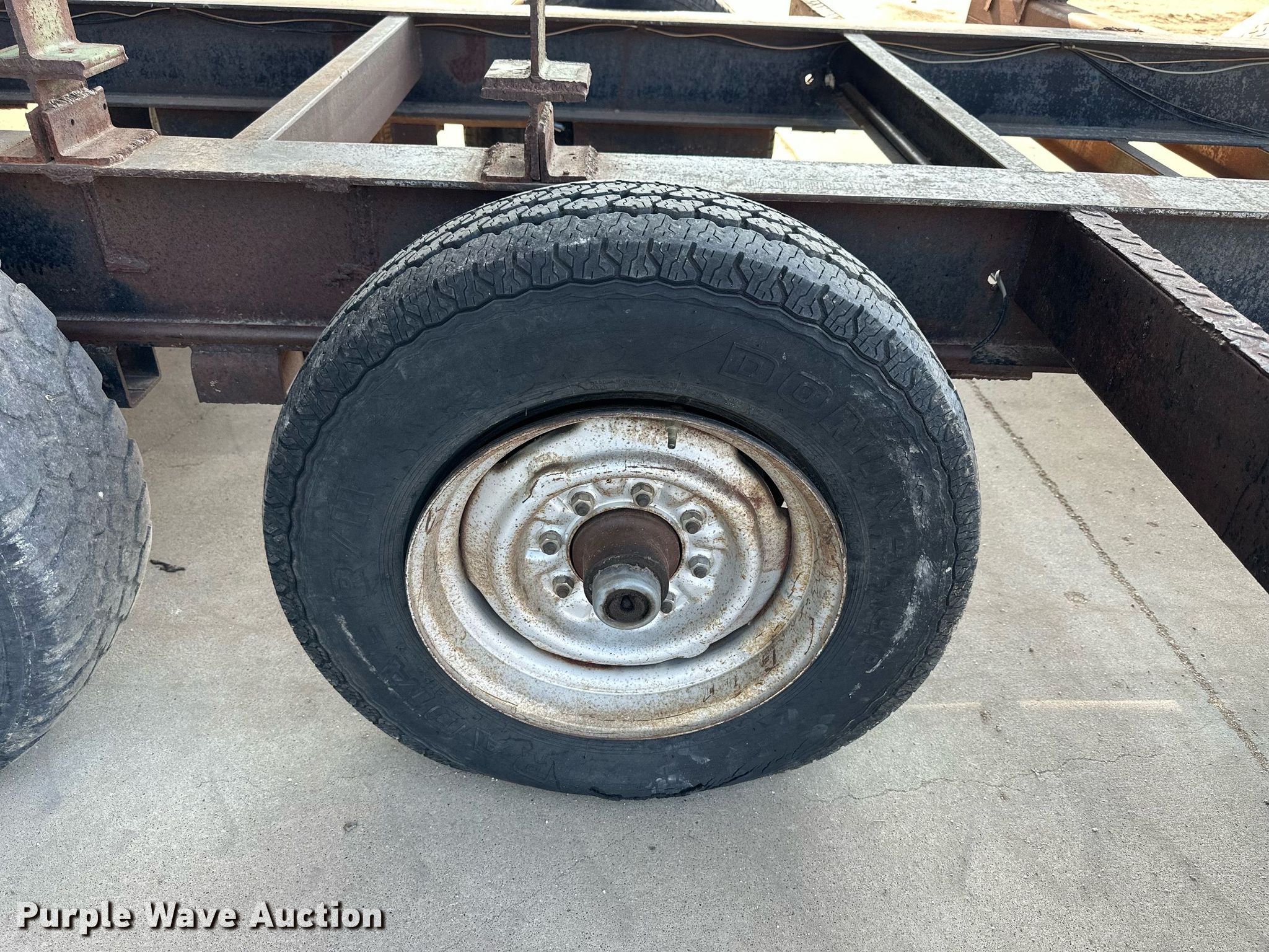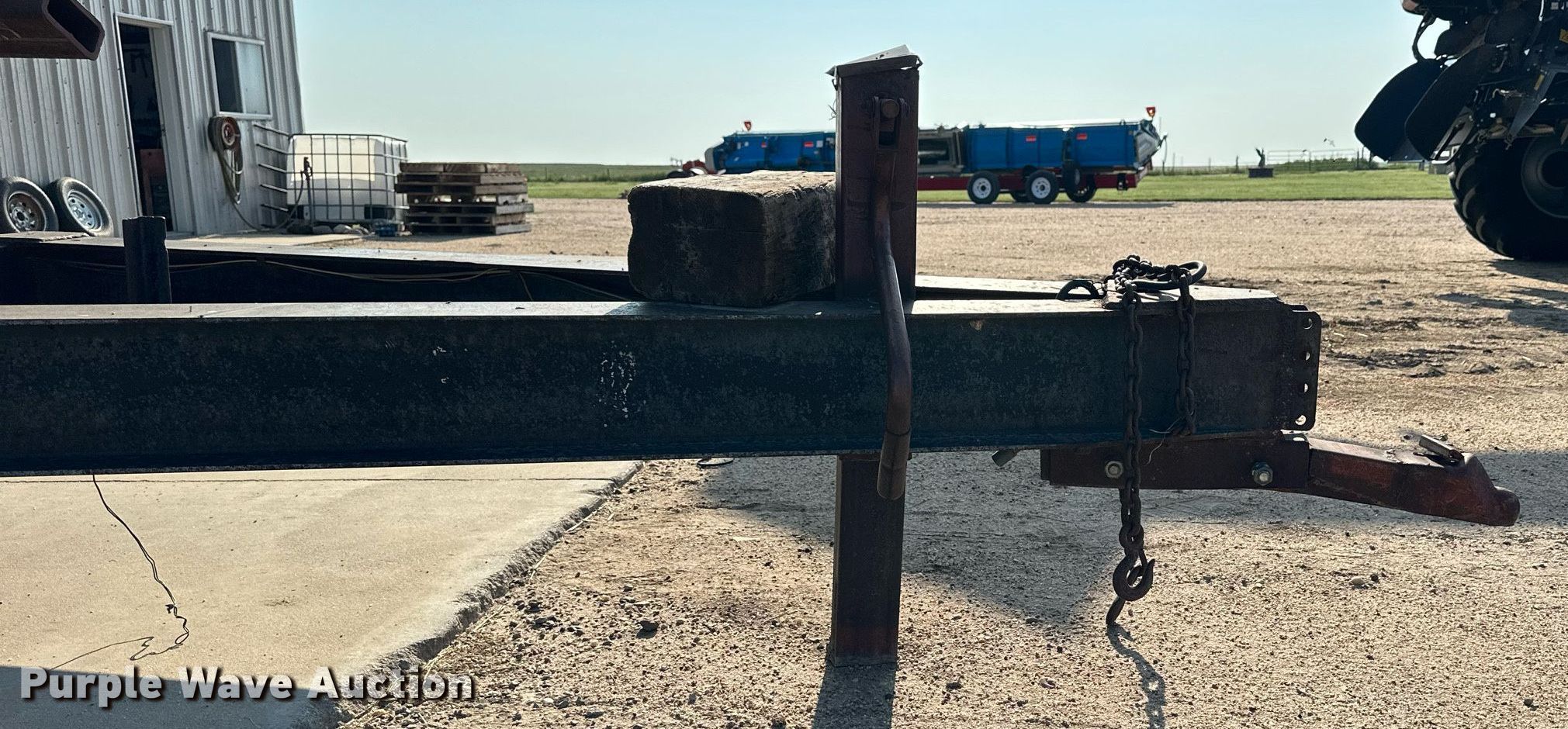 Shop built header trailer. Dimensions. Overall: 35' L x 127" W. Features Deck type: Steel. Chassis Ball hitch: 2 5/16", Landing gear: Single, Axles: Tandem. Tires Steel wheels, Size: 265/75R16. Notes Damaged tire will be repaired prior to auction. Transfer of ownership documentation will be a bill of sale. Quinter, KS 67752