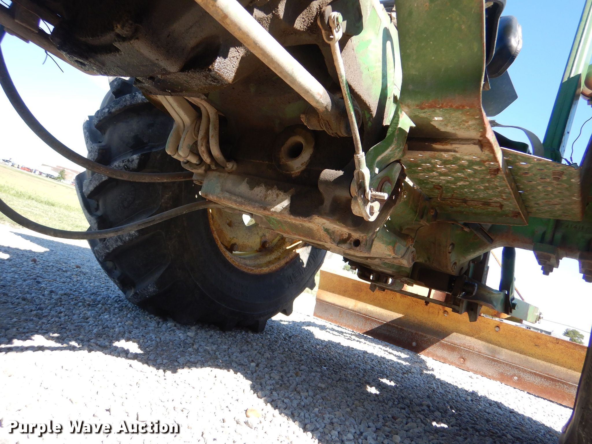 1970 John Deere 2020 tractor. Hours: 6,455 on meter, Serial: 115958T. Engine John Deere, Cylinders: 4, Fuel type: Gas. Transmission Manual, 8F - 4R. Features PTO: 540, Three point Top link, Loader Great Bend 330, Controls: Joystick, Bucket Width: 72", Forks Length: 48" L, Rear blade Width: 84".. Tires Front: 7.50-16, Rear: 16.9-28, Calcium filled. Notes Glass missing. MCDS. 2107 Industrial Drive. McPherson, KS 67460