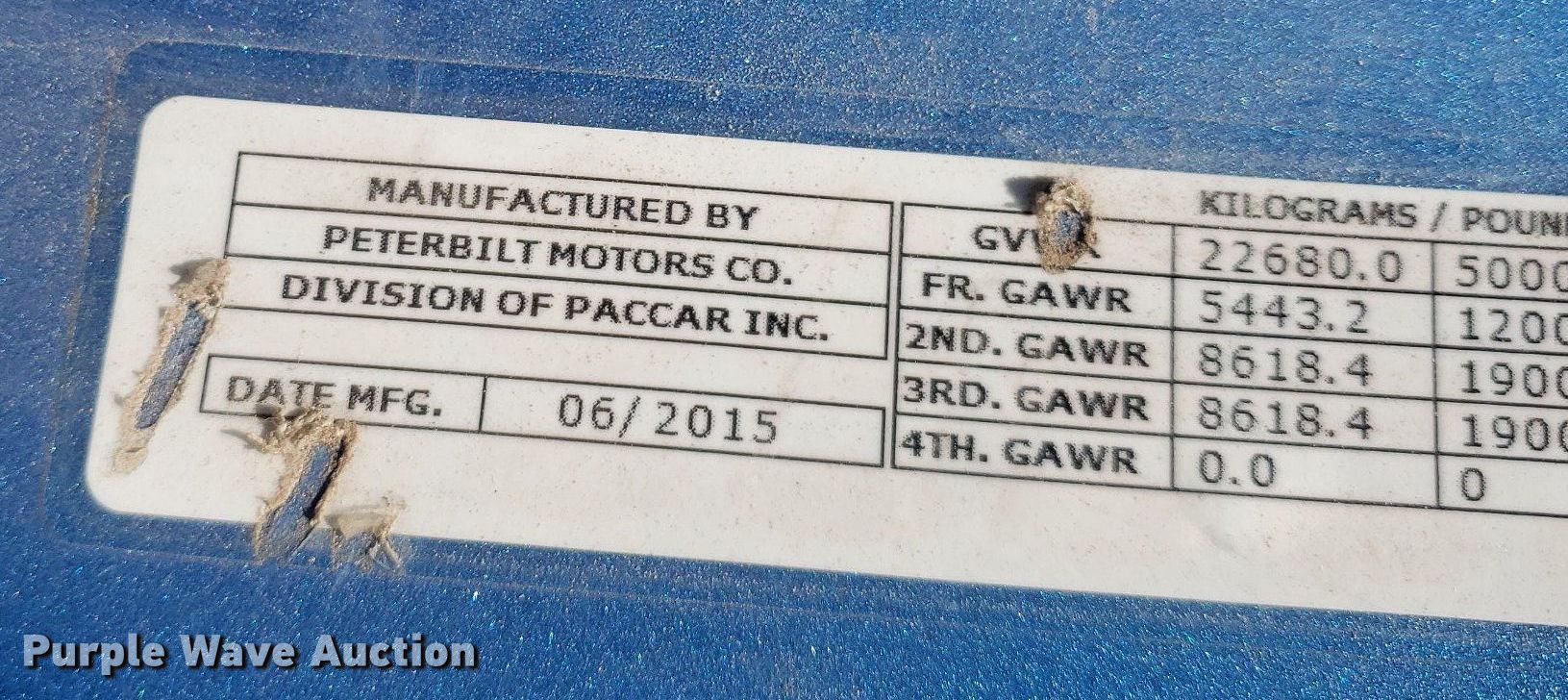 2016 Peterbilt 579 semi truck. Miles: 934,629 on odometer, VIN: 1XPBDP9X8GD341363. Engine Paccar MX-13, Cylinders: 6, Fuel type: Diesel. Transmission Manual. Chassis Axles: Tandem, Differential lock: Inter-axle, Suspension: Air Dump valves, Brakes: Air, PTO, GVWR: 50,000 lbs FAWR: 12,000 lbs, IAWR: 19,000 lbs, RAWR: 19,000 lbs. Interior AC, Heat, Power windows, Power locks, Cruise control, Air ride cab, Sleeper Sleeper length: 64", Beds: Single, Refrigerator, Rear climate control. Features Deck plate: Aluminum, Fifth wheel type: Fixed, Fuel tank: Dual. Tires Front: 295/75R22.5, Rear: 445/50R22.5. Notes Dash warning indicator: Check engine, Possible fuel pump issues, may need replaced. Kansas title. Title distribution may be delayed up to 30 days from verification of funds. 9555 U.S. 77. Augusta, KS 67010