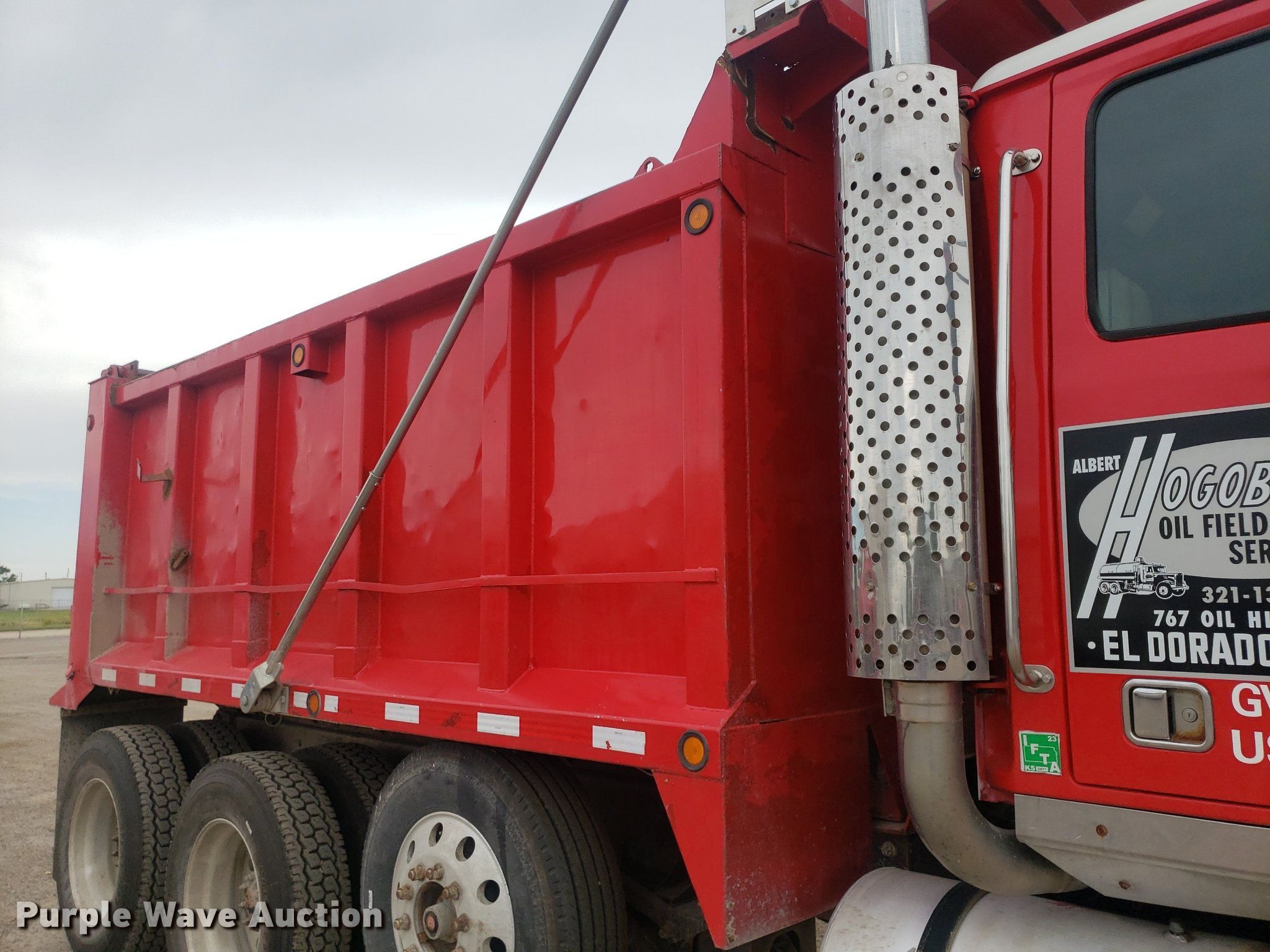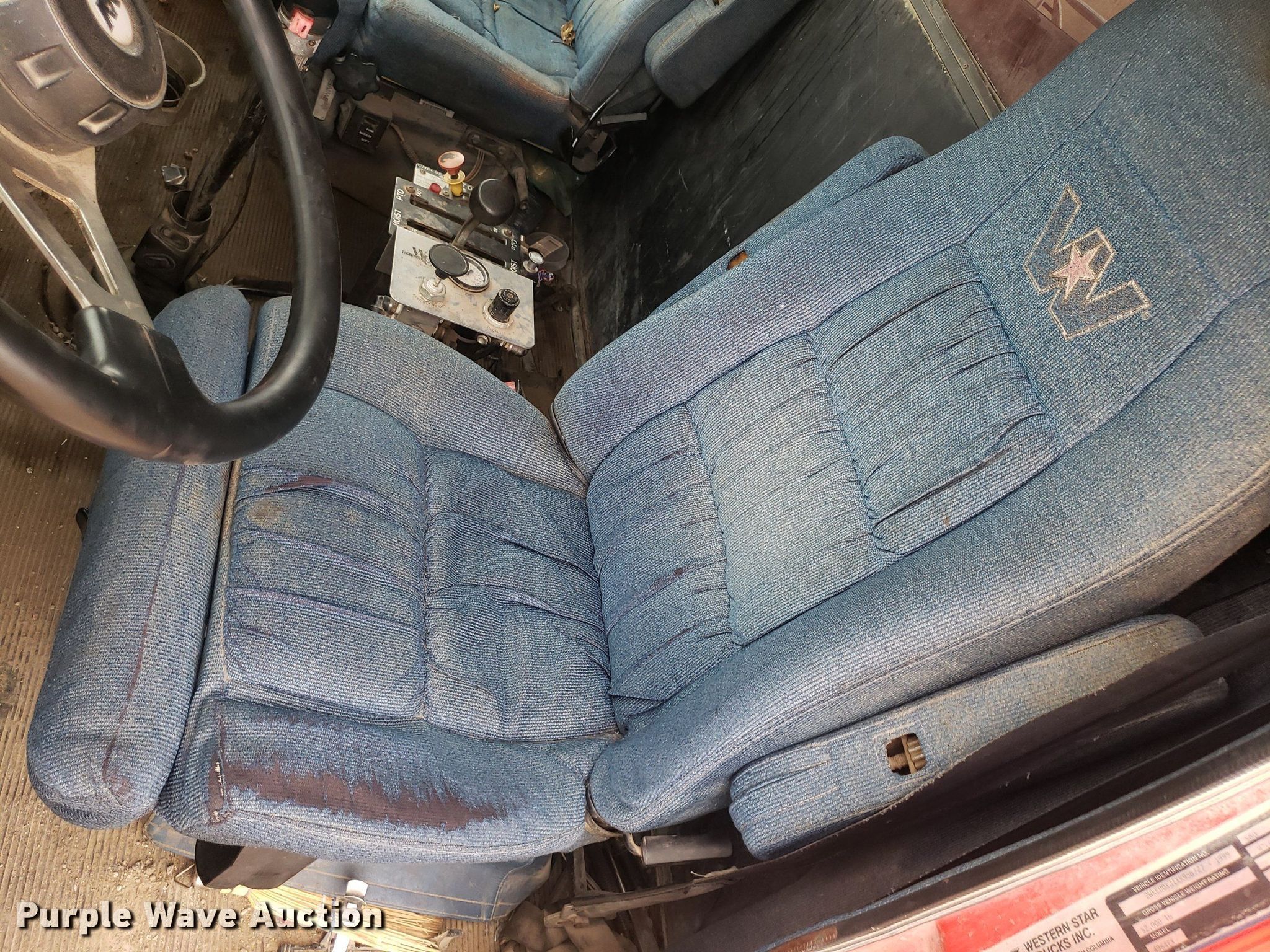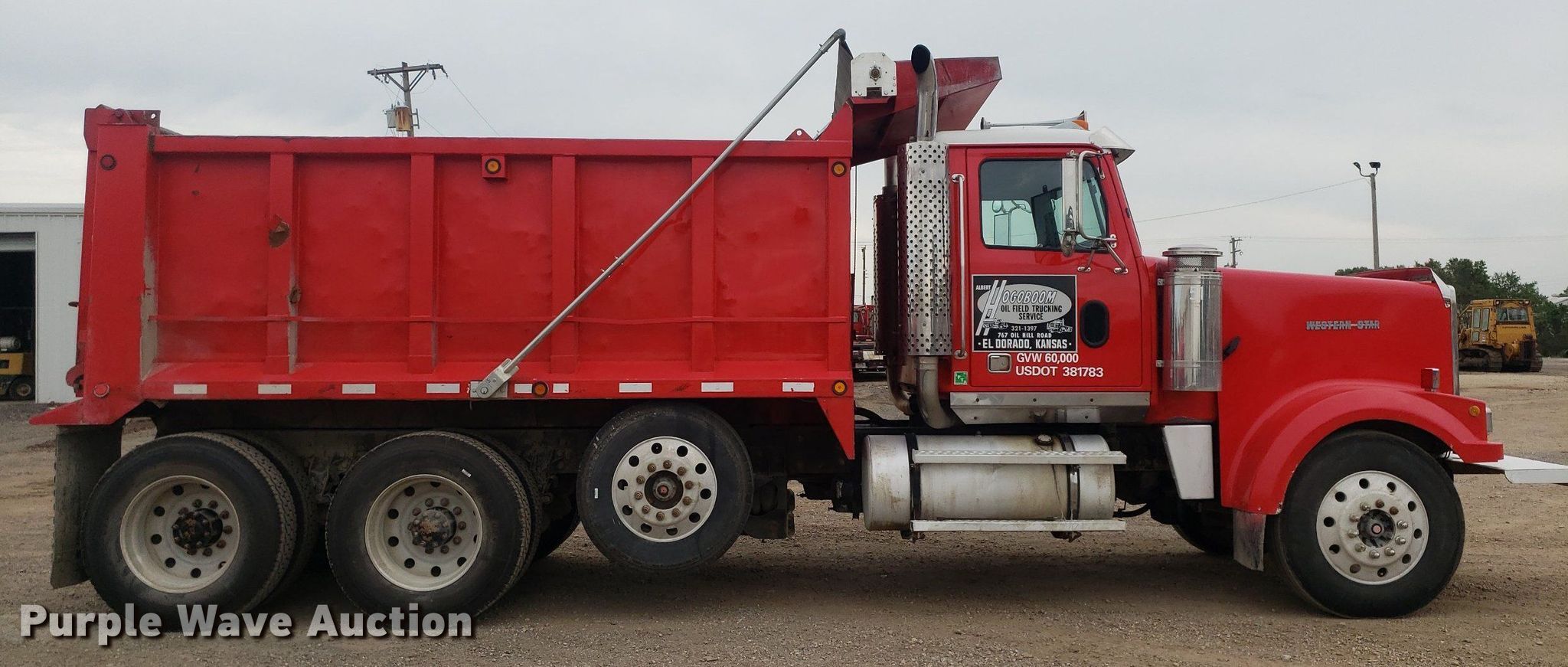 1999 Western Star 4900 dump truck. Miles: 758,444 on odometer, VIN: 2WKEDDXJ1XK956727. Engine Detroit Diesel Series 60, Displacement: 12.7L, Cylinders: 6, Fuel type: Diesel. Transmission Eaton Fuller, Manual, Speed: 13. Chassis Axles: Triple, Pusher axle, Differential lock: Inter-axle, Suspension: Air Dump valves, Brakes: Air, PTO, GVWR: 52,000 lbs FAWR: 12,000 lbs, IAWR: 20,000 lbs, RAWR: 20,000 lbs. Interior AC, Heat, Heated mirrors, Power windows. Features Dump bed 14' L x 94" W, Side height: 58", Bed type: Steel, Roll tarp, Ram: Single , End gate: Air operated. Tires Size: 11R22.5, Lift axle: 295/75R22.5. Kansas title. Title distribution may be delayed up to 30 days from verification of funds. Albert Hogoboom Oilfield Trucking, Inc.. El Dorado, KS 67042