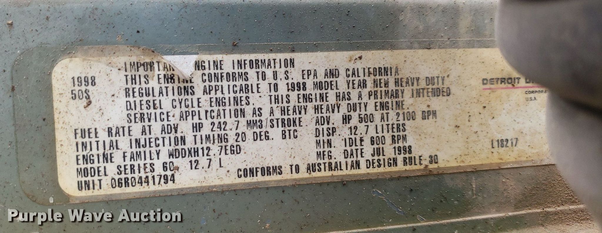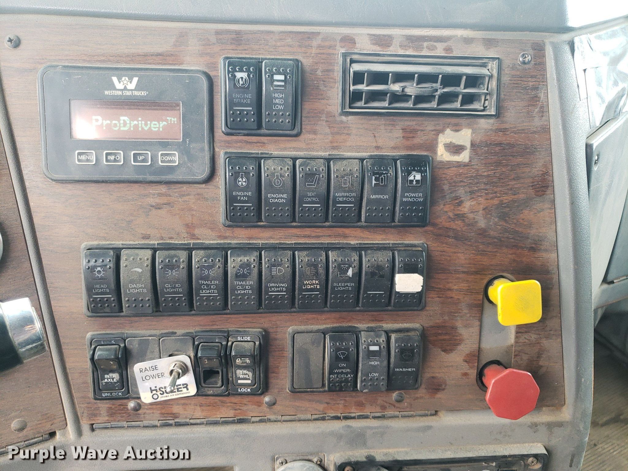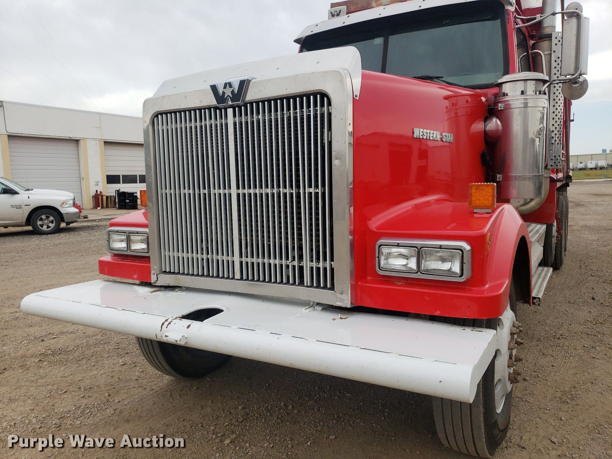 1999 Western Star 4900 dump truck. Miles: 758,444 on odometer, VIN: 2WKEDDXJ1XK956727. Engine Detroit Diesel Series 60, Displacement: 12.7L, Cylinders: 6, Fuel type: Diesel. Transmission Eaton Fuller, Manual, Speed: 13. Chassis Axles: Triple, Pusher axle, Differential lock: Inter-axle, Suspension: Air Dump valves, Brakes: Air, PTO, GVWR: 52,000 lbs FAWR: 12,000 lbs, IAWR: 20,000 lbs, RAWR: 20,000 lbs. Interior AC, Heat, Heated mirrors, Power windows. Features Dump bed 14' L x 94" W, Side height: 58", Bed type: Steel, Roll tarp, Ram: Single , End gate: Air operated. Tires Size: 11R22.5, Lift axle: 295/75R22.5. Kansas title. Title distribution may be delayed up to 30 days from verification of funds. Albert Hogoboom Oilfield Trucking, Inc.. El Dorado, KS 67042