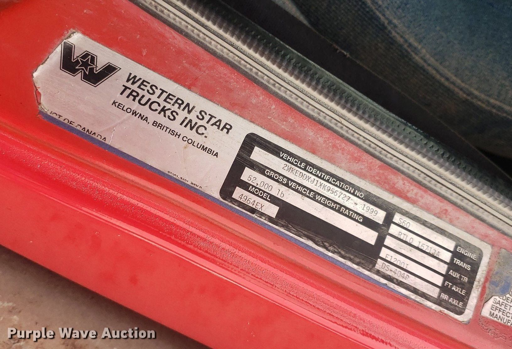 Purple Wave is selling a used Construction Dump Truck in Kansas. This item is a 1999 Western Star 4900 dump truck with the following: Miles: 758,444 on odometer, VIN: 2WKEDDXJ1XK956727