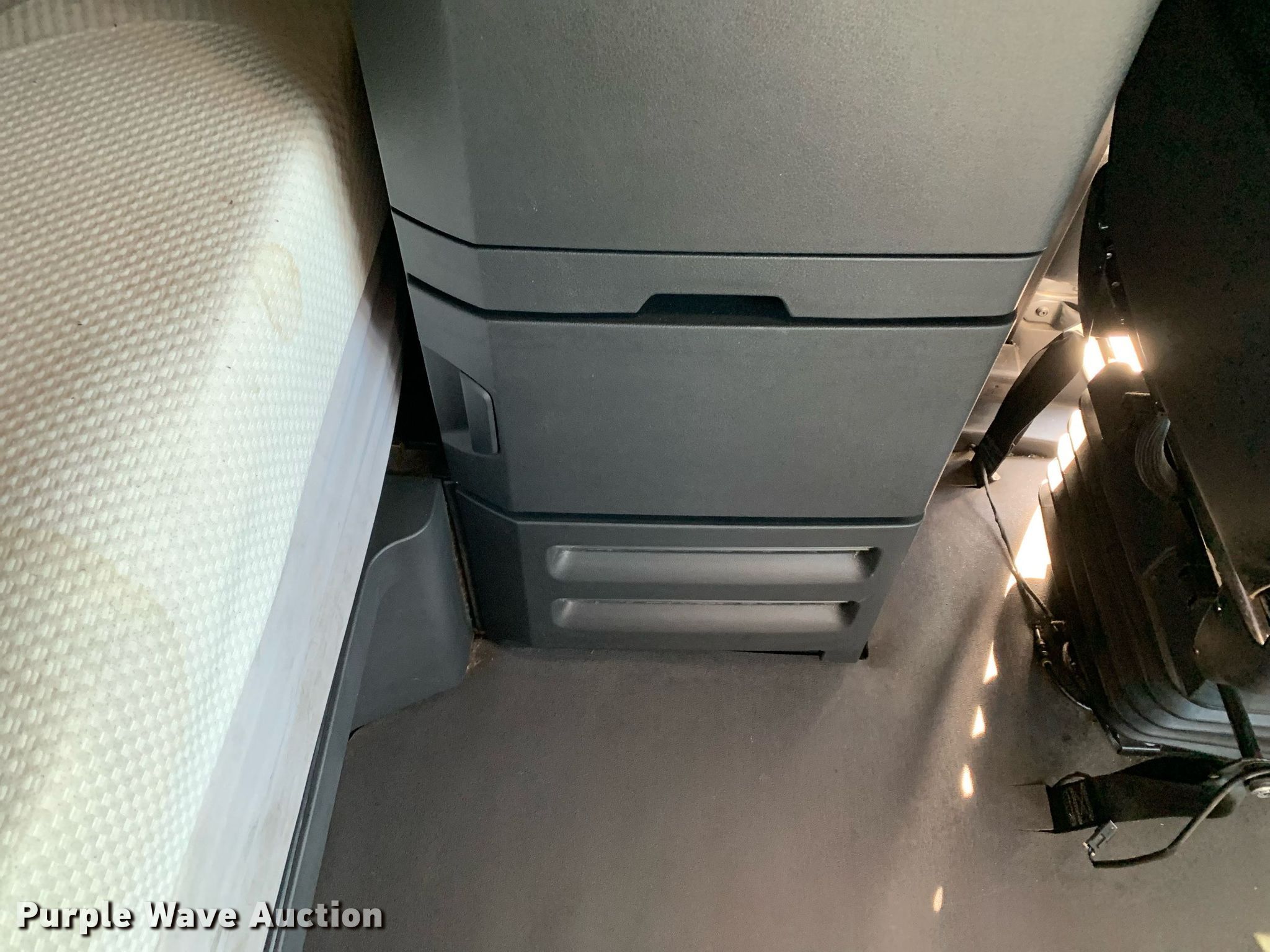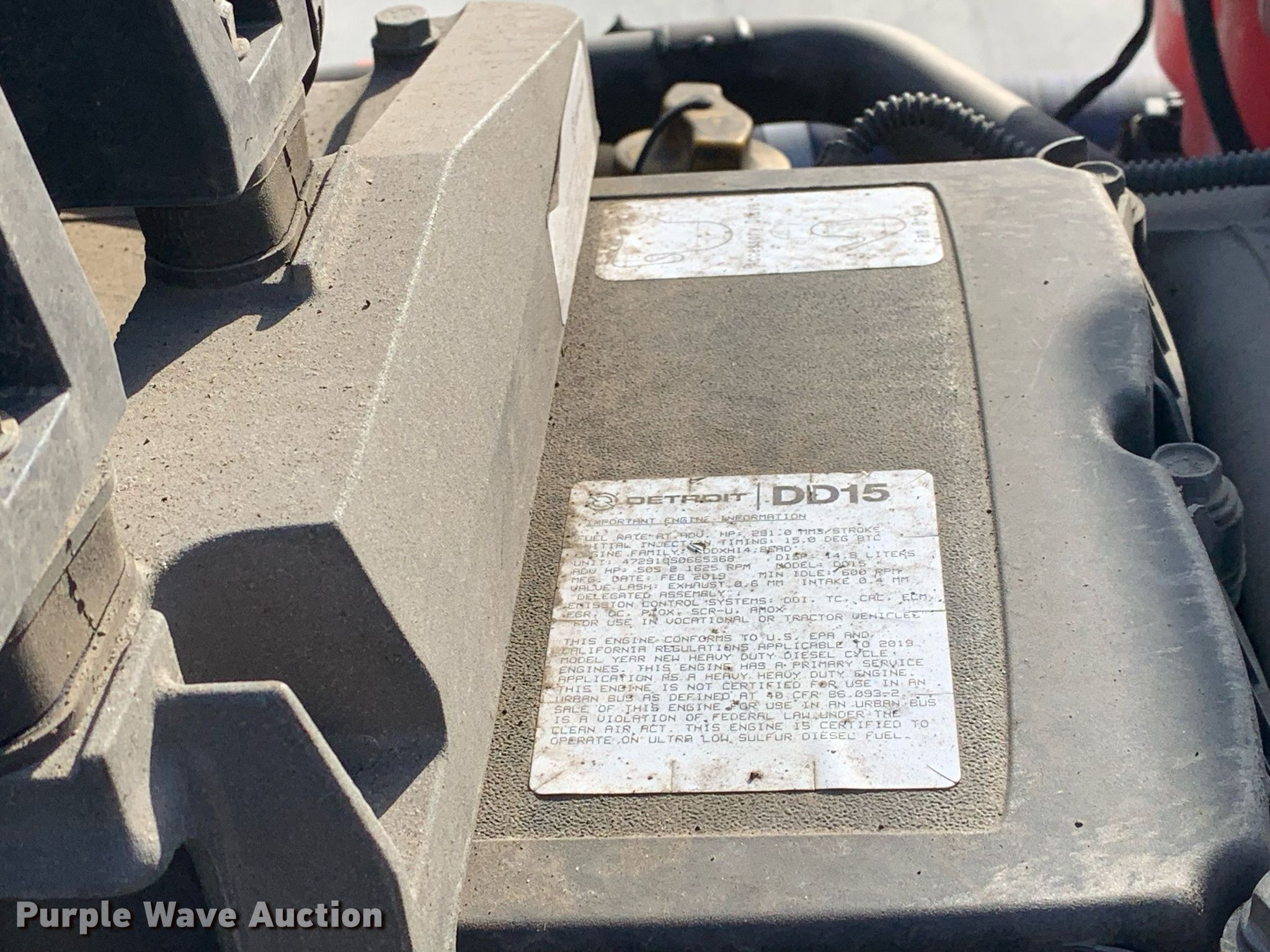 2020 Freightliner Cascadia semi truck. Miles: 667,287 on odometer, Hours: 15,624 on meter, VIN: 3AKJHHDR5LSLN6366. Engine Detroit Diesel DD15, Displacement: 14.8L, Cylinders: 6, Fuel type: Diesel, Engine brake. Transmission Automated manual. Chassis Axles: Tandem, Differential lock: Inter-axle, Suspension: Air Dump valves, Brakes: Air, GVWR: 53,300 lbs FAWR: 13,300 lbs, IAWR: 20,000 lbs, RAWR: 20,000 lbs. Interior AC, Heat, Heated mirrors, Power windows, Power locks, Cruise control, Air ride cab, Sleeper Sleeper length: 5' 4", Beds: Double bunk, Refrigerator, Microwave, Rear climate control. Features Deck plate: Aluminum, Fifth wheel type: Air operated, Sliding, Fuel tank: Dual. Tires Size: 295/75R22.5. Notes Windshield chipped or cracked. Texas title. Tread Transportation Services. 1101 E Cleveland St. Hutchins, TX 75141