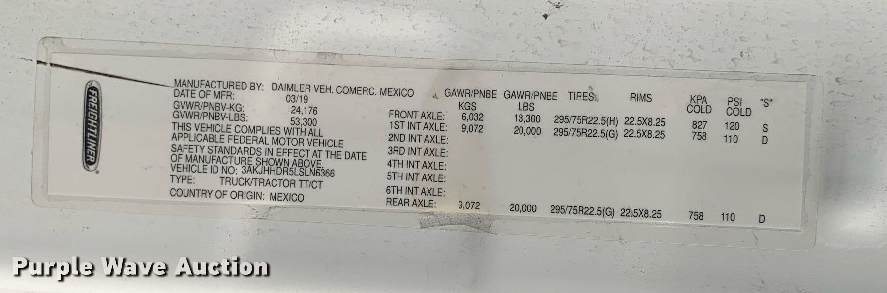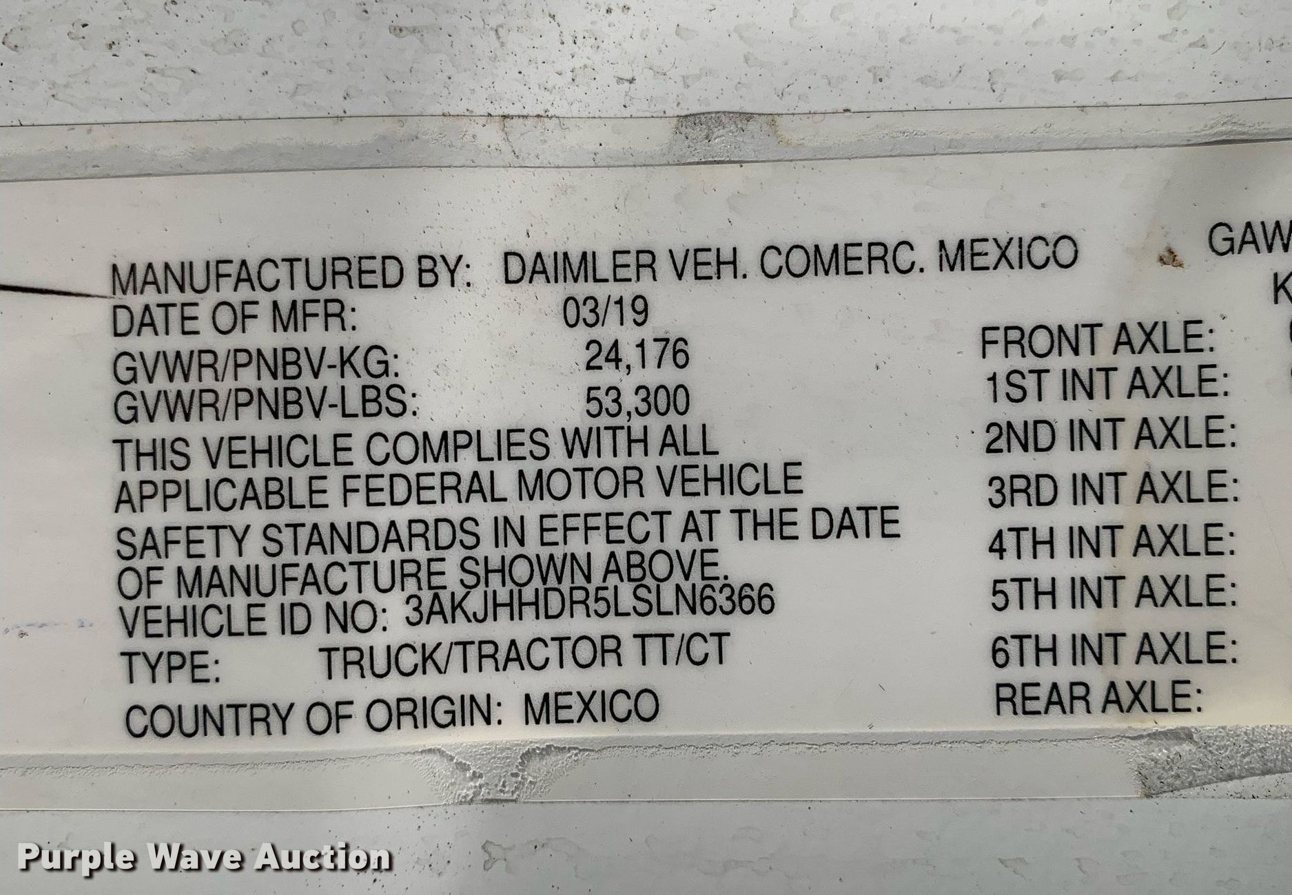 Purple Wave is selling a used Truck Tractor in Texas. This item is a 2020 Freightliner Cascadia semi truck with the following: Miles: 667,287 on odometer, Hours: 15,624 on meter, VIN: 3AKJHHDR5LSLN6366