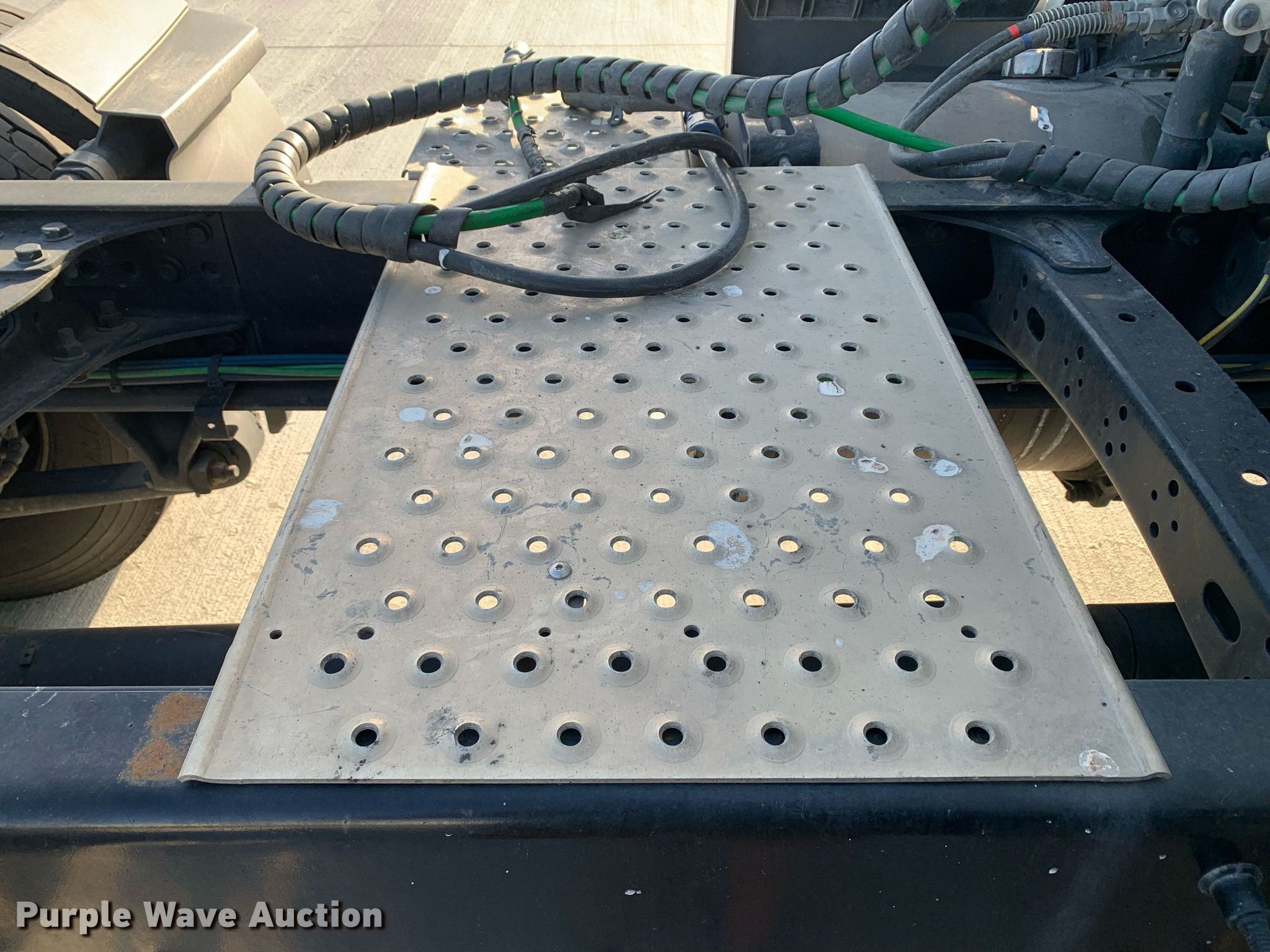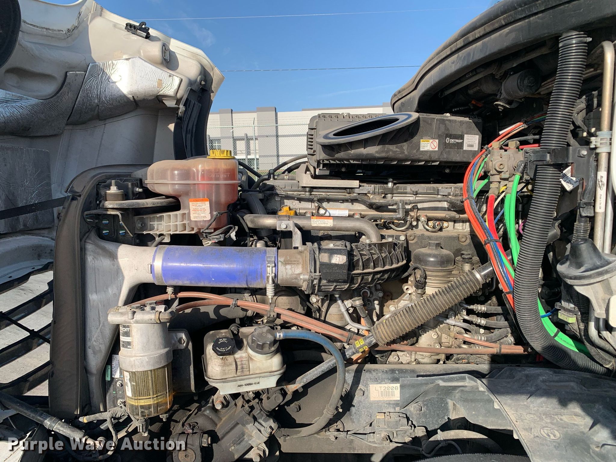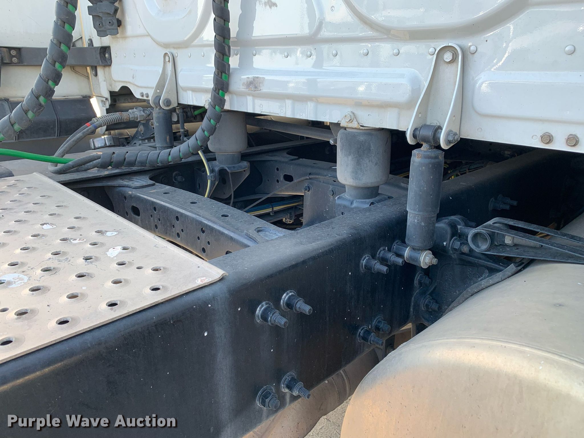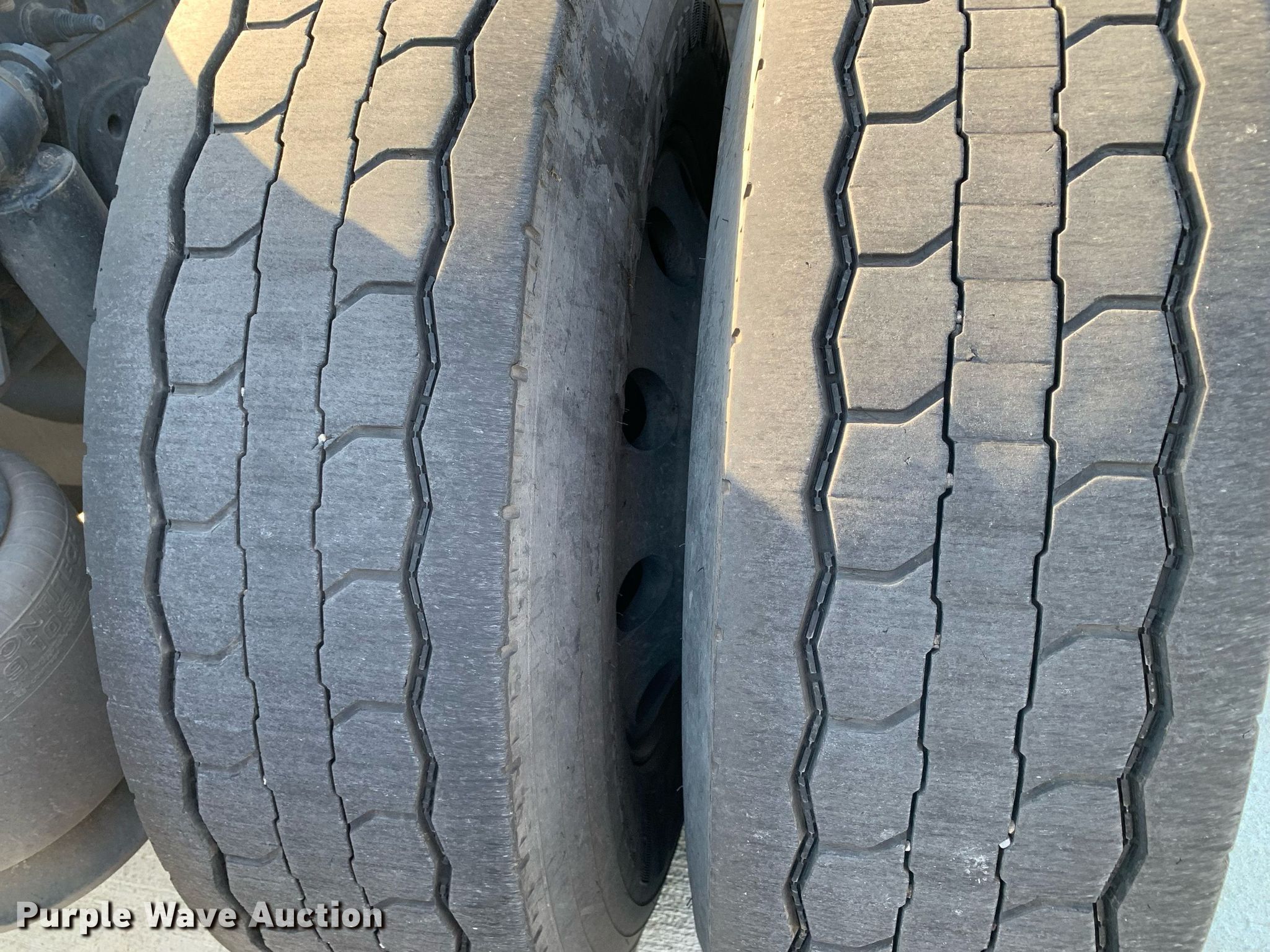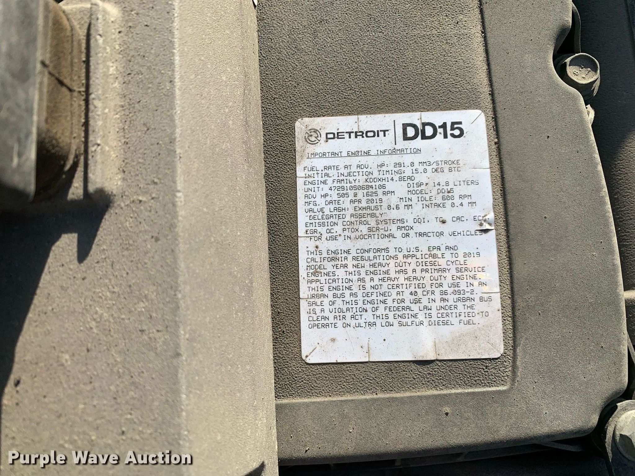 2020 Freightliner Cascadia semi truck. Miles: 637,317 on odometer, Hours: 16,026 on meter, VIN: 3AKJHHDR2LSLT2008. Engine Detroit Diesel DD15, Displacement: 14.8L, Cylinders: 6, Fuel type: Diesel, Engine brake. Transmission Automated manual. Chassis Axles: Tandem, Differential lock: Inter-axle, Suspension: Air Dump valves, Brakes: Air, GVWR: 53,300 lbs FAWR: 13,300 lbs, IAWR: 20,000 lbs, RAWR: 20,000 lbs. Interior AC, Heat, Heated mirrors, Power windows, Power locks, Cruise control, Air ride cab, Sleeper Sleeper length: 5' 4", Beds: Double bunk, Refrigerator, Microwave, Rear climate control. Features Deck plate: Aluminum, Fifth wheel type: Air operated, Sliding, Fuel tank: Dual. Tires Size: 295/75R22.5. Notes Windshield chipped or cracked. Texas title. Tread Transportation Services. 1101 E Cleveland St. Hutchins, TX 75141