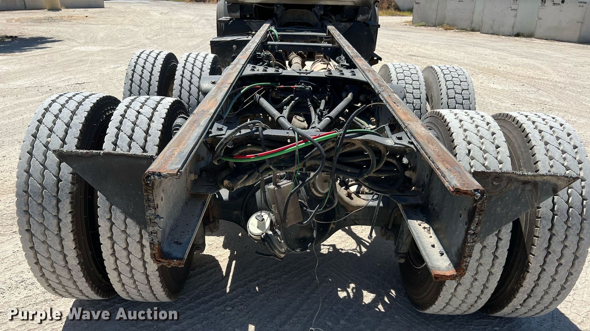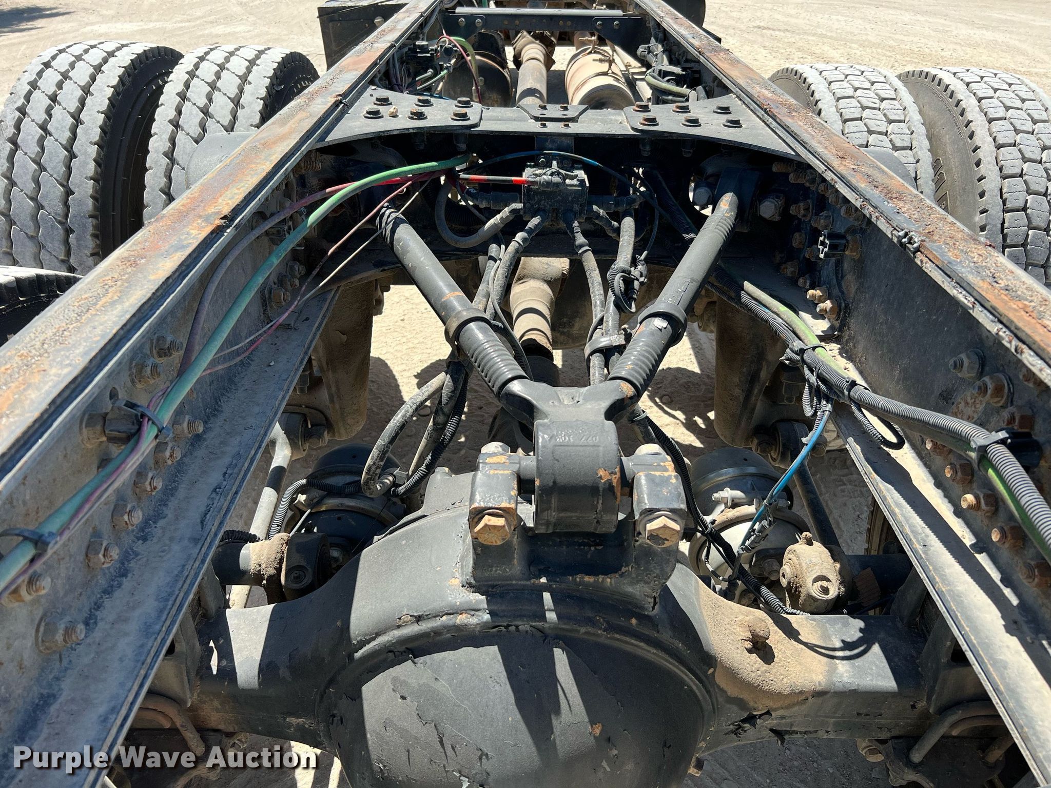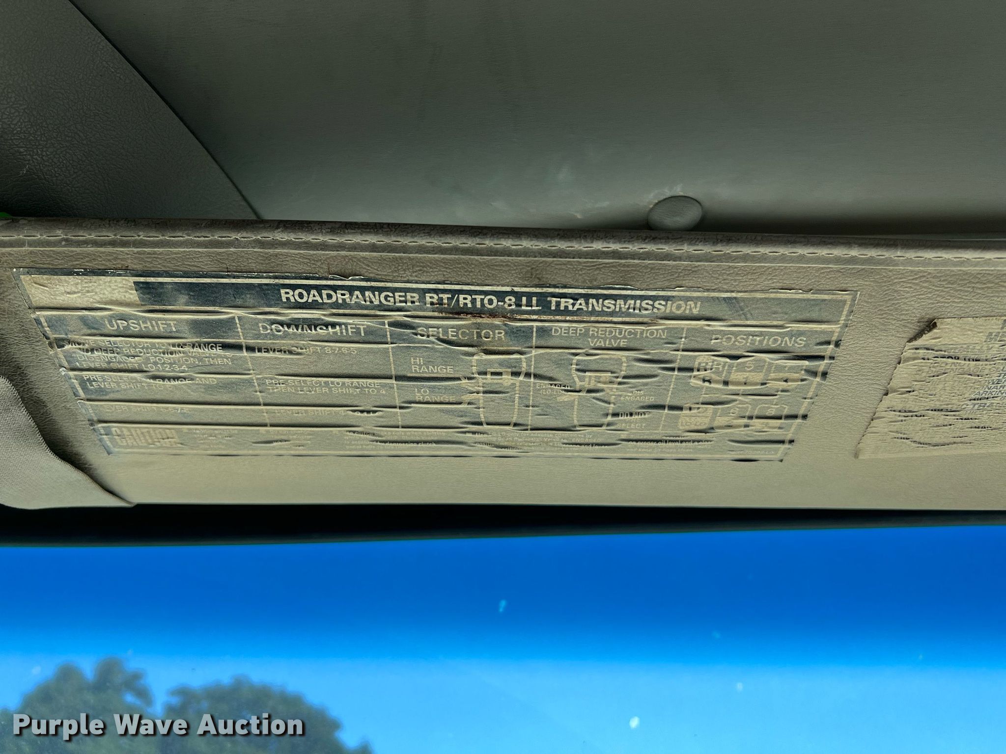 2002 Sterling LT9500 truck cab and chassis. Miles: 924,626 on odometer, VIN: 2FZHAZAS52AK05425, Unit #: 2624. Engine Caterpillar C12, Serial: 2KS69603, Displacement: 12.0L, Cylinders: 6, Fuel type: Diesel, HP: 395, Engine brake. Transmission Eaton Fuller Roadranger RTO-8LL, Manual, Speed: 10. Chassis Axles: Tandem, Differential lock: Full, Suspension: Spring over walking beam, Brakes: Air, PTO, Truck chassis: 20', GVWR: 66,000 lbs FAWR: 20,000 lbs, IAWR: 23,000 lbs, RAWR: 23,000 lbs. Interior AC, Heat, Cruise control. Features Fuel tank: Dual. Tires Front: 425/65R22.5, Rear: 11R22.5. Notes PTO shaft missing. Texas title. Title distribution may be delayed up to 14 days from verification of funds. Wilbert Funeral Services. 5111 Southeast Loop 410 Access Road. San Antonio, TX 78222