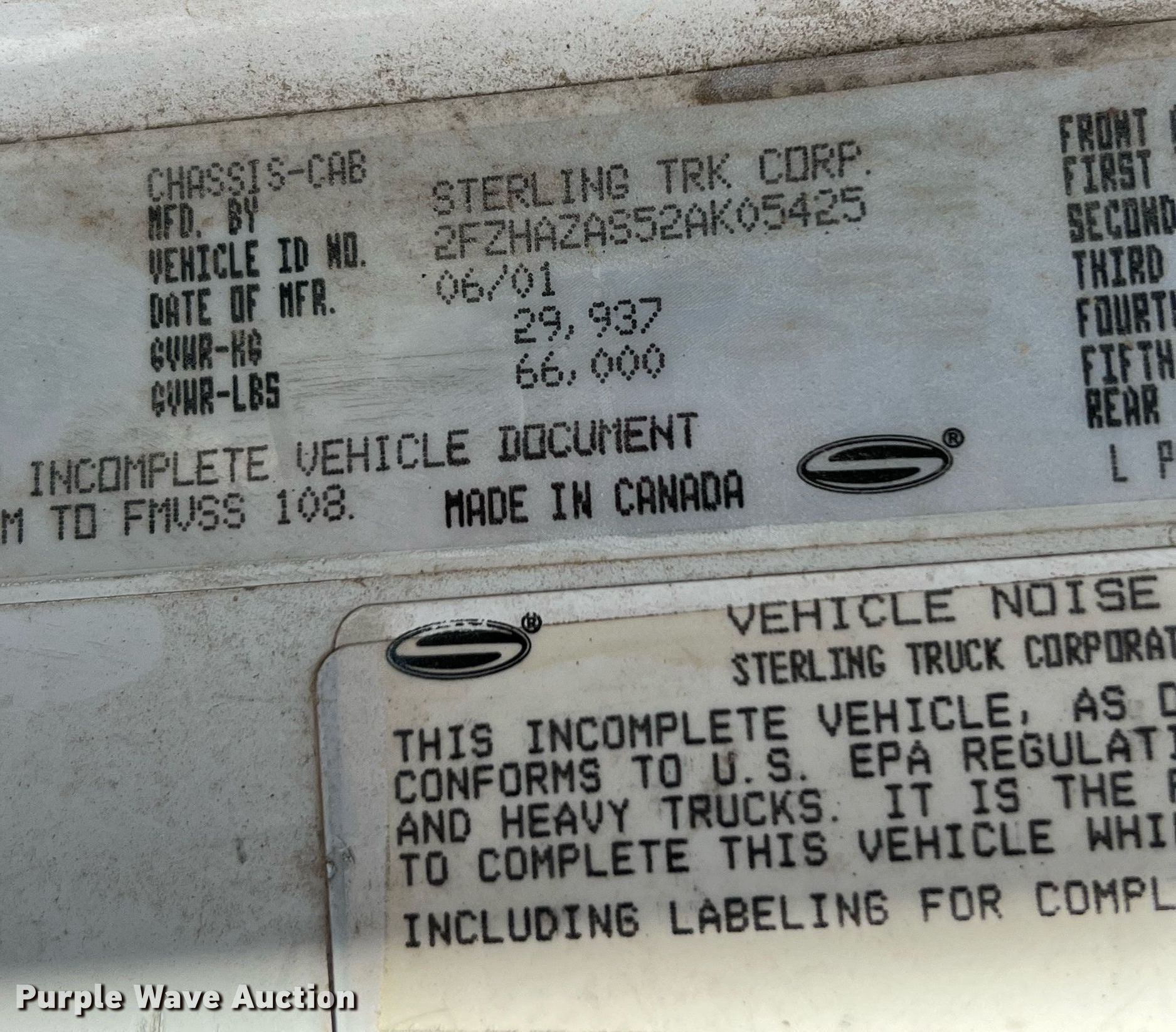 Purple Wave is selling a used Truck Chassis in Texas. This item is a 2002 Sterling LT9500 truck cab and chassis with the following: Miles: 924,626 on odometer, VIN: 2FZHAZAS52AK05425, Unit #: 2624