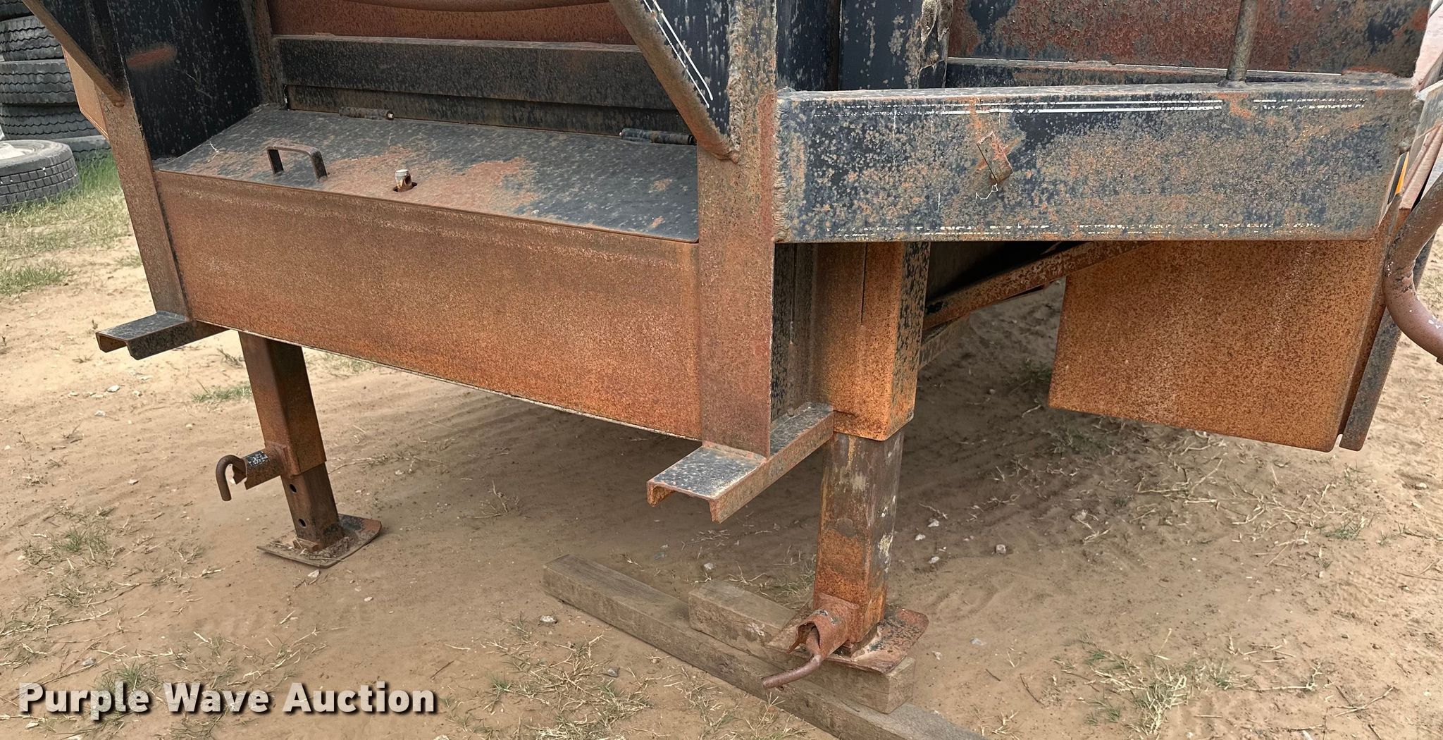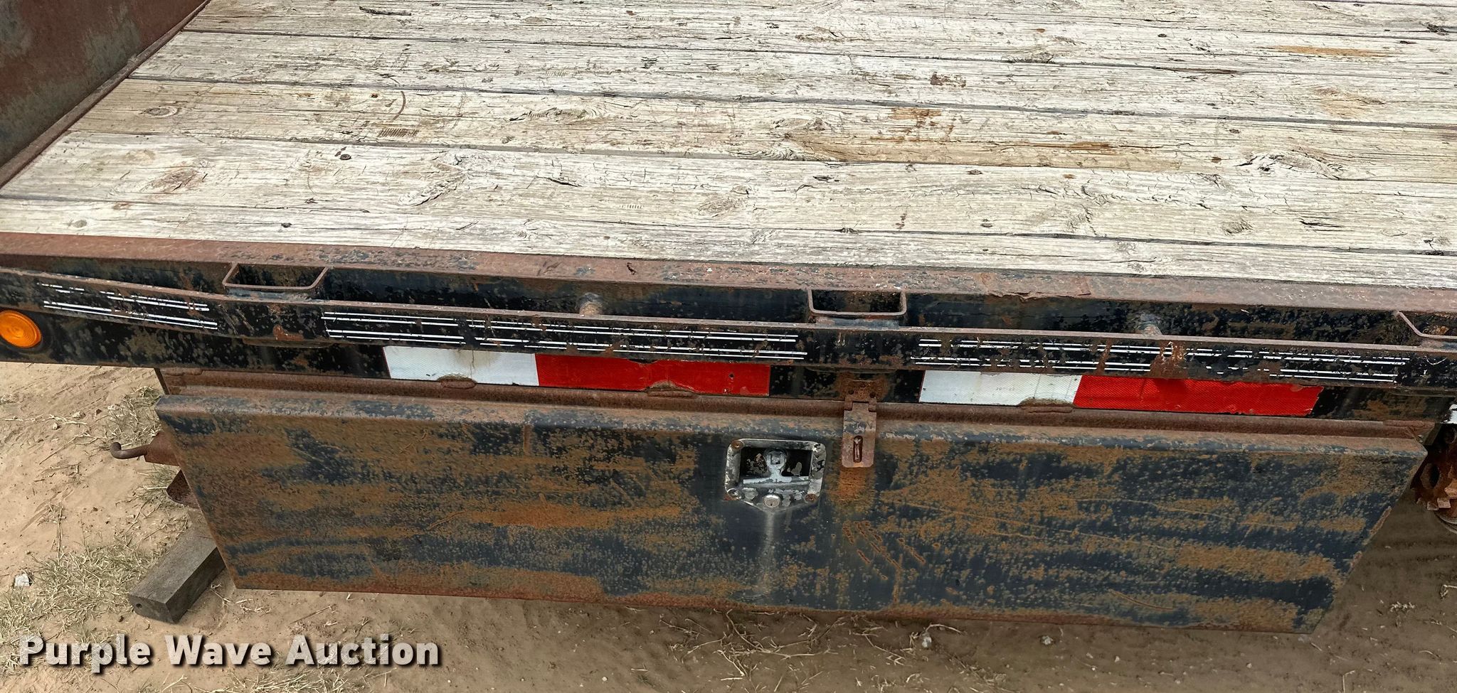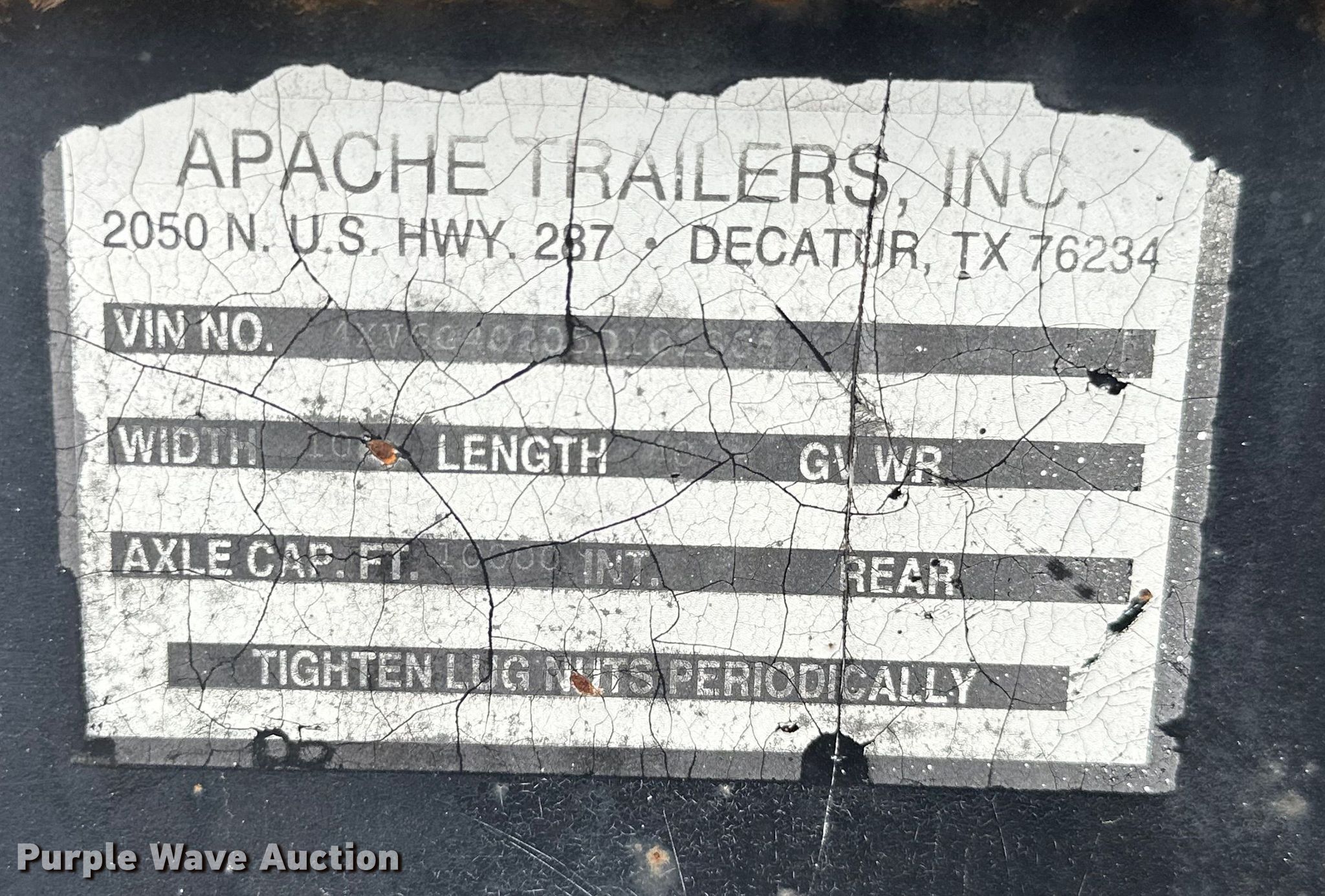2005 Apache flatbed trailer. VIN: 4XV6G40205D102362. Dimensions Overall: 48' 6" L x 96" W, Deck: 40' L. Features Deck type: Steel, Wood. Chassis Hitch: Gooseneck, Landing gear: Dual, Suspension: Spring, Brakes: Electric, Axles: Tandem. Tires Size: ST235/85R16. Kansas title. Title distribution may be delayed up to 14 days from verification of funds. 528 Road 28. Peru, KS 67360