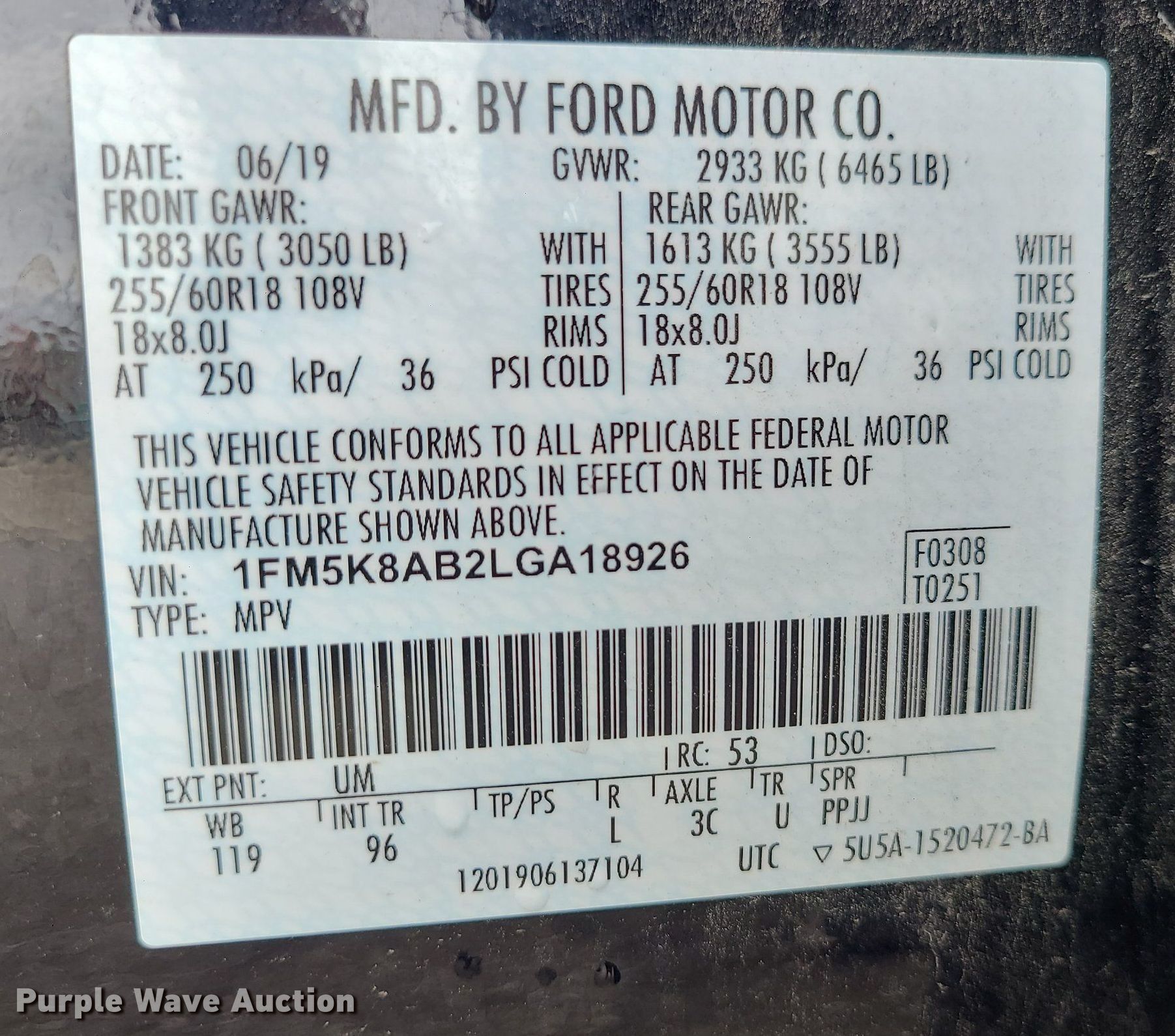 2020 Ford Explorer Police Interceptor SUV. Miles: 51,169 on odometer, VIN: 1FM5K8AB2LGA18926. Engine Displacement: 3.3L V6 DOHC, Cylinders: 6, Fuel type: Gas. Transmission Automatic, All wheel drive. Interior AC, Heat, Power windows, Power locks, Cruise control. Tires Size: 255/60R18. Missouri title. City of North Kansas City. 2010 Howell Street. North Kansas City, MO 64116