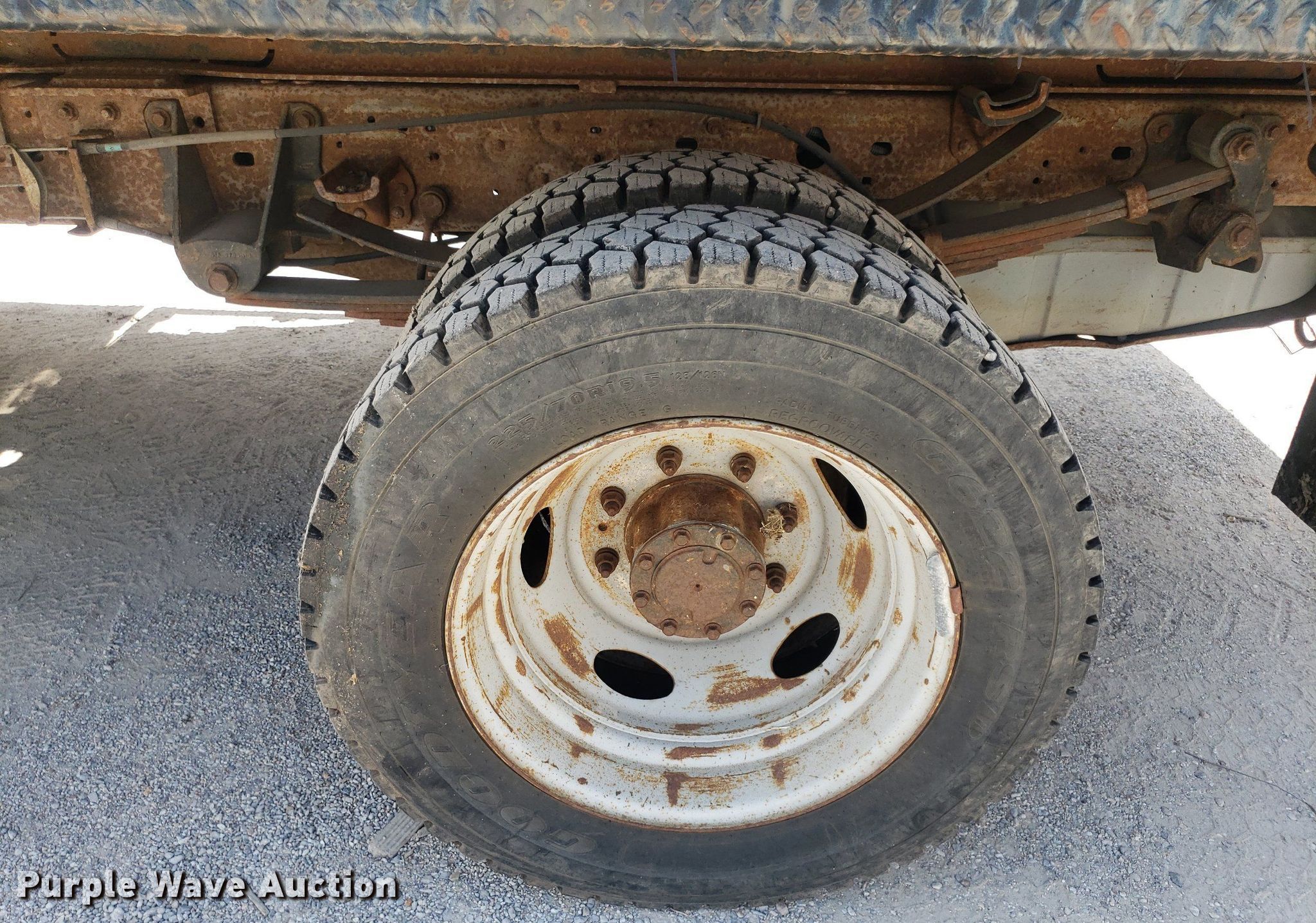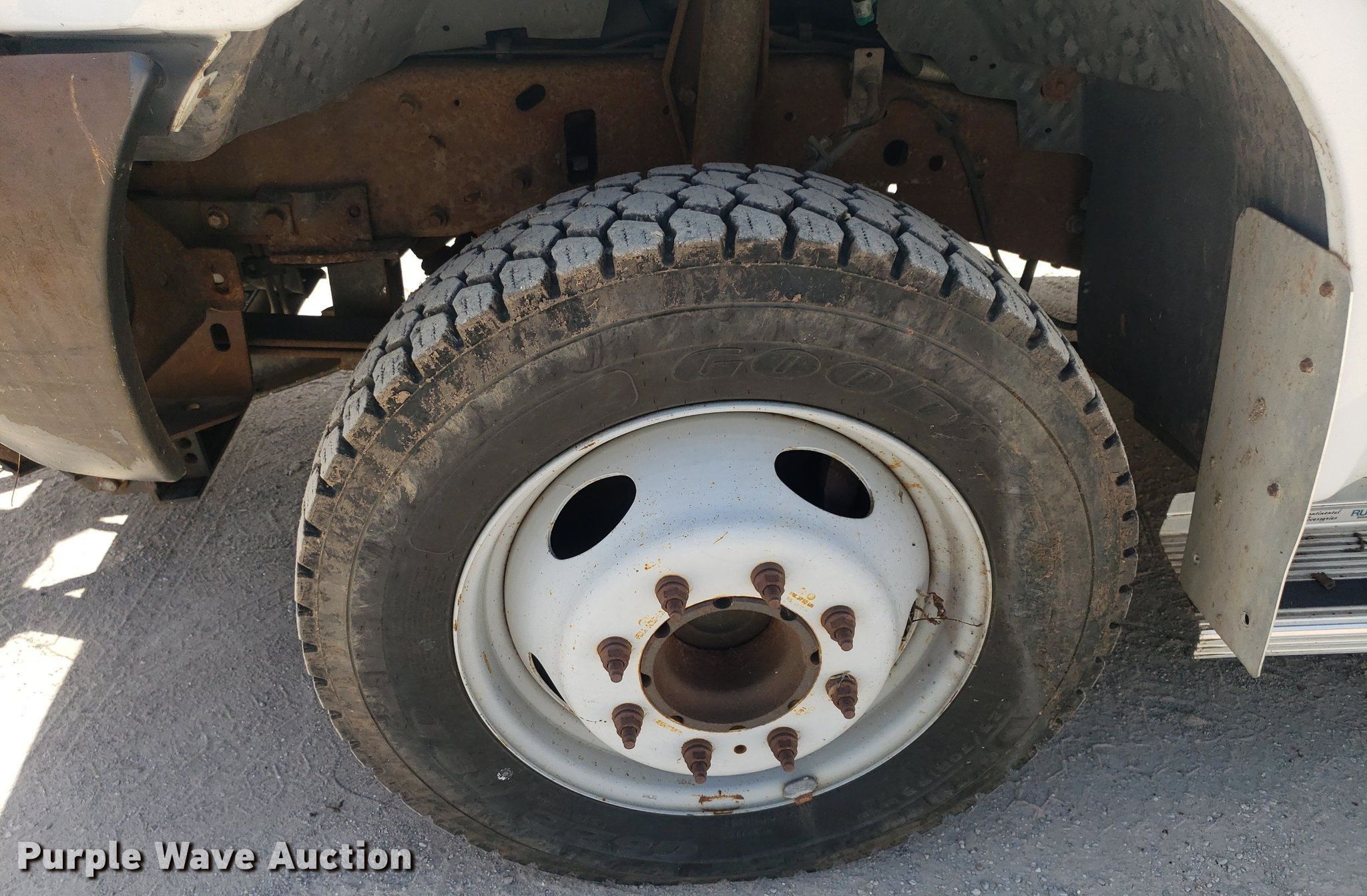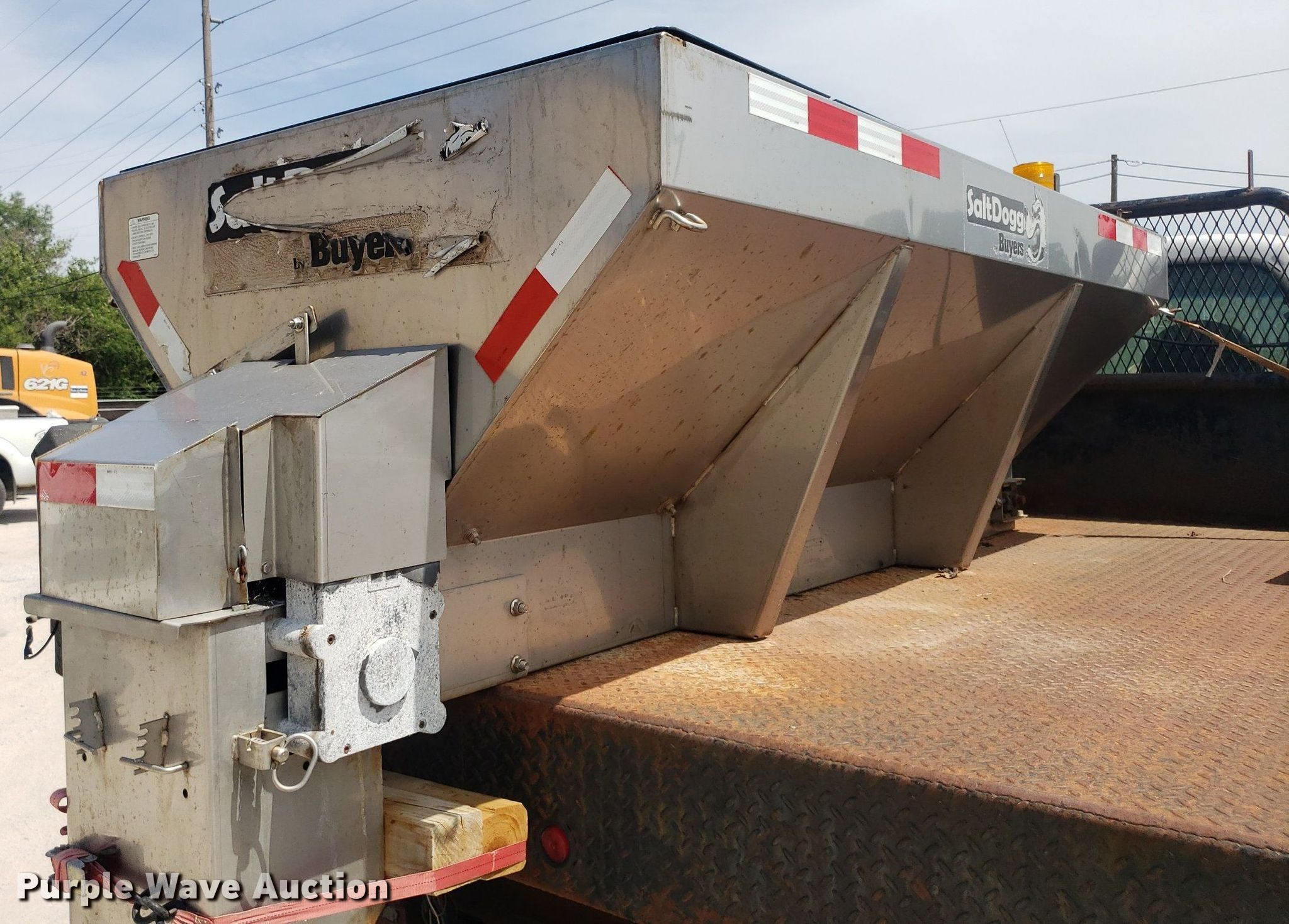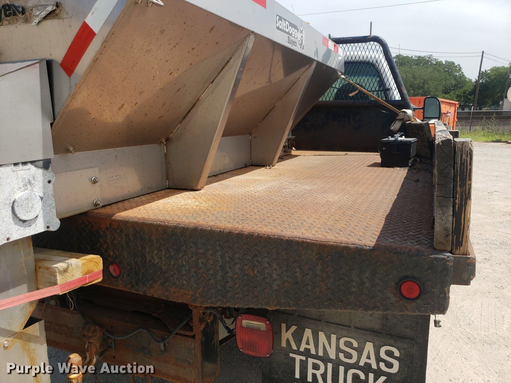 2001 Ford F550 Super Duty flatbed truck. Miles: 33,366 on odometer, VIN: 1FDAF56S31EB26068. Engine Displacement: 6.8L, Cylinders: 10, Fuel type: Gas. Transmission Automatic. Interior AC, Heat, Brake controller. Features Flatbed Winkle , 9' L x 96" W, Spreader SaltDogg , Hopper: 94" L x 46" W, Plow Henderson , Width: 9'. Tires Size: 225/70R19.5. Notes Dead battery. Kansas title. Valley Center Public Works Department. 545 W Clay St. Valley Center, KS 67147
