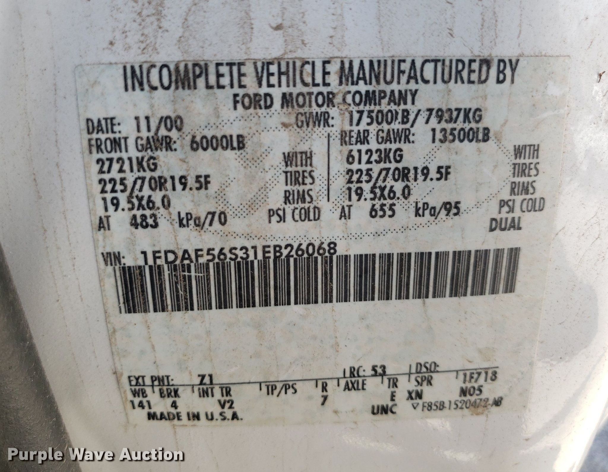 Purple Wave is selling a used Flat Bed Truck in Kansas. This item is a 2001 Ford F550 Super Duty flatbed truck with the following: Miles: 33,366 on odometer, VIN: 1FDAF56S31EB26068
