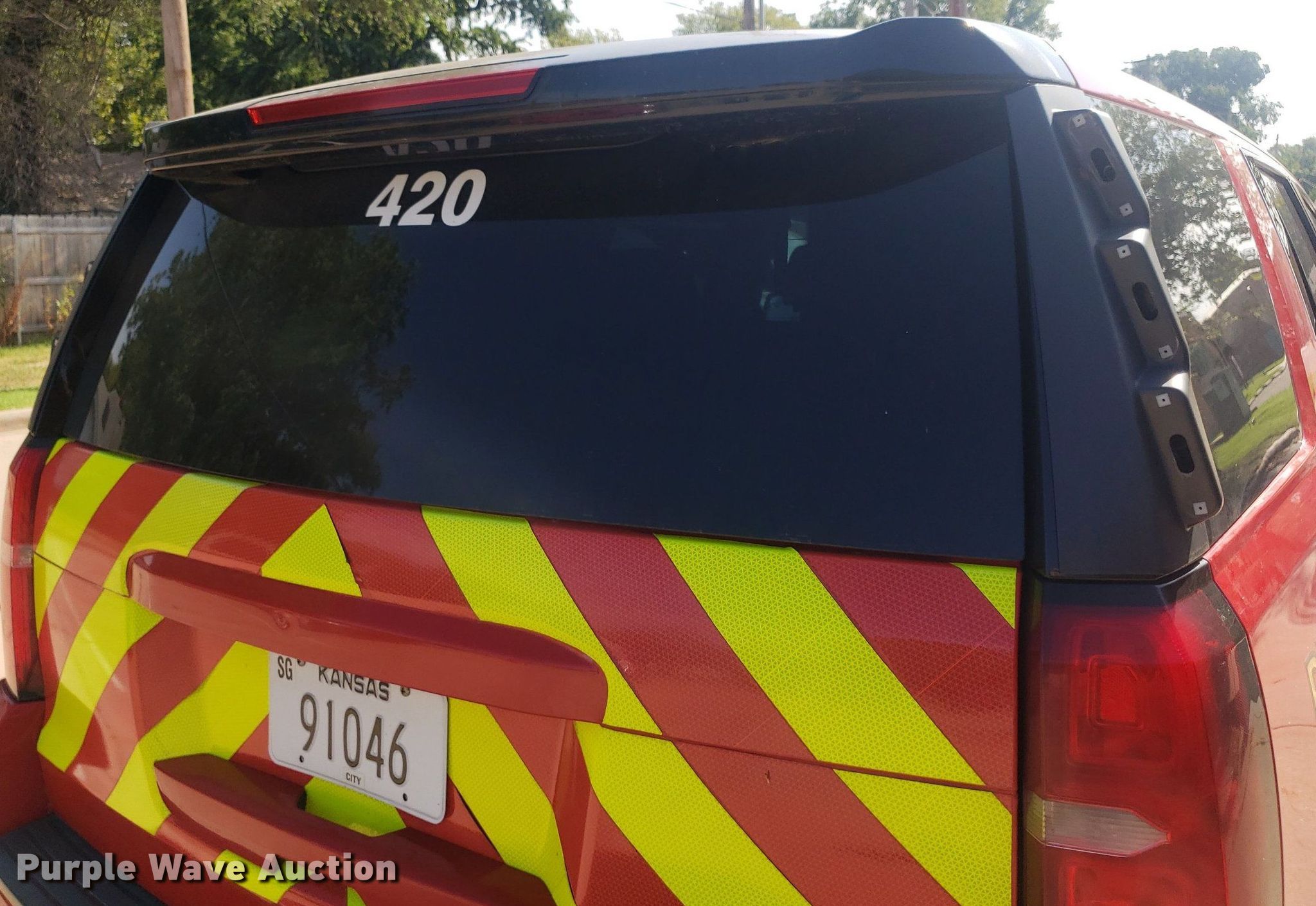 Purple Wave is selling a used Passenger Vehicle in Kansas. This item is a 2015 Chevrolet Tahoe Police SUV with the following: Miles: 149,696 on odometer, VIN: 1GNSK3ECXFR282554