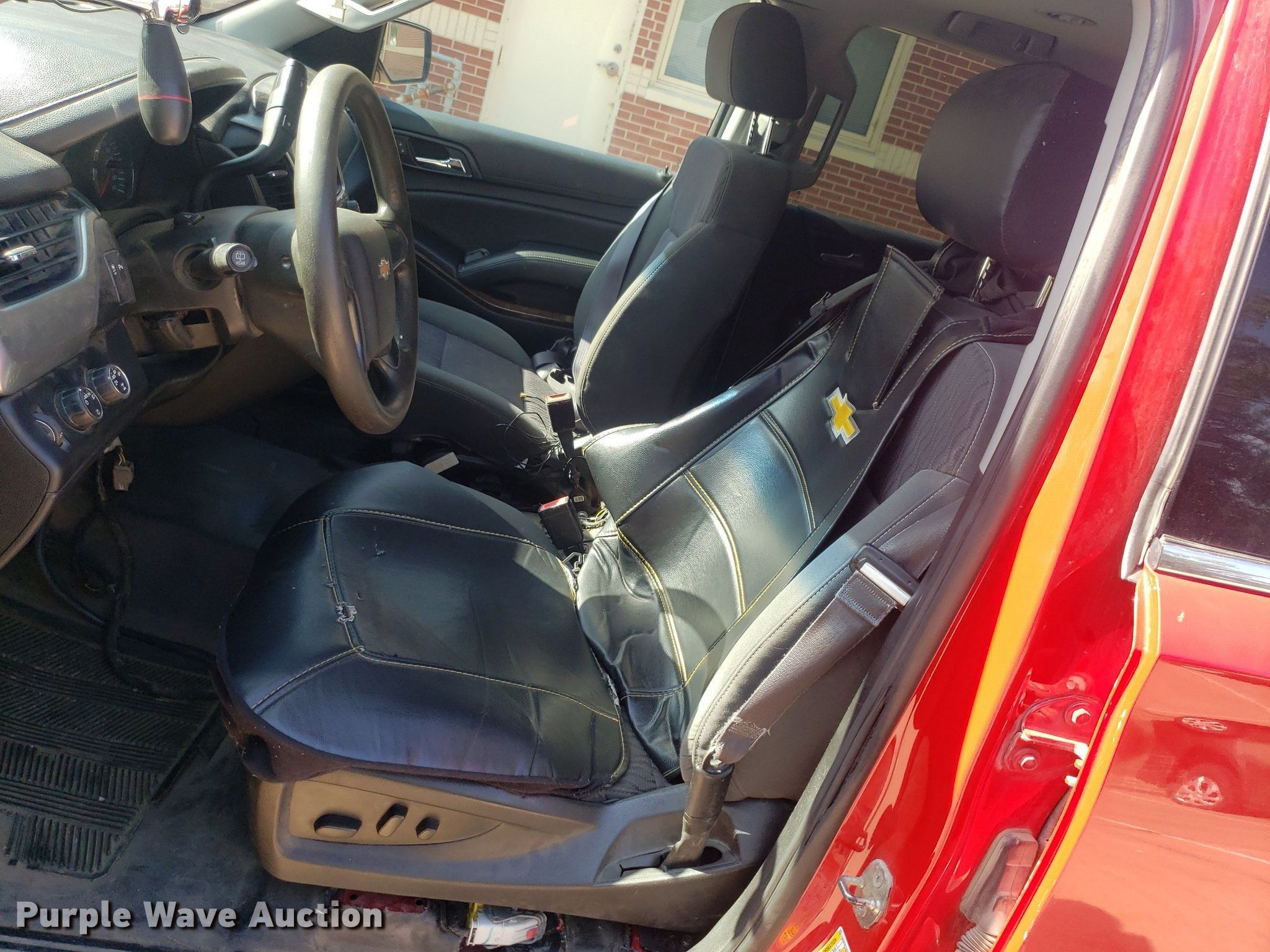 2015 Chevrolet Tahoe Police SUV. Miles: 149,696 on odometer, VIN: 1GNSK3ECXFR282554. Engine Displacement: 5.3L V8 OHV, Cylinders: 8, Fuel type: Gas. Transmission Automatic, Four wheel drive. Interior AC, Heat, Seat: Power driver, Power windows, Power locks, Cruise control. Tires Size: 265/70R17. Notes Center console missing. Kansas title. Title distribution may be delayed up to 14 days from verification of funds. 410 East Main Street. Mulvane, KS 67110