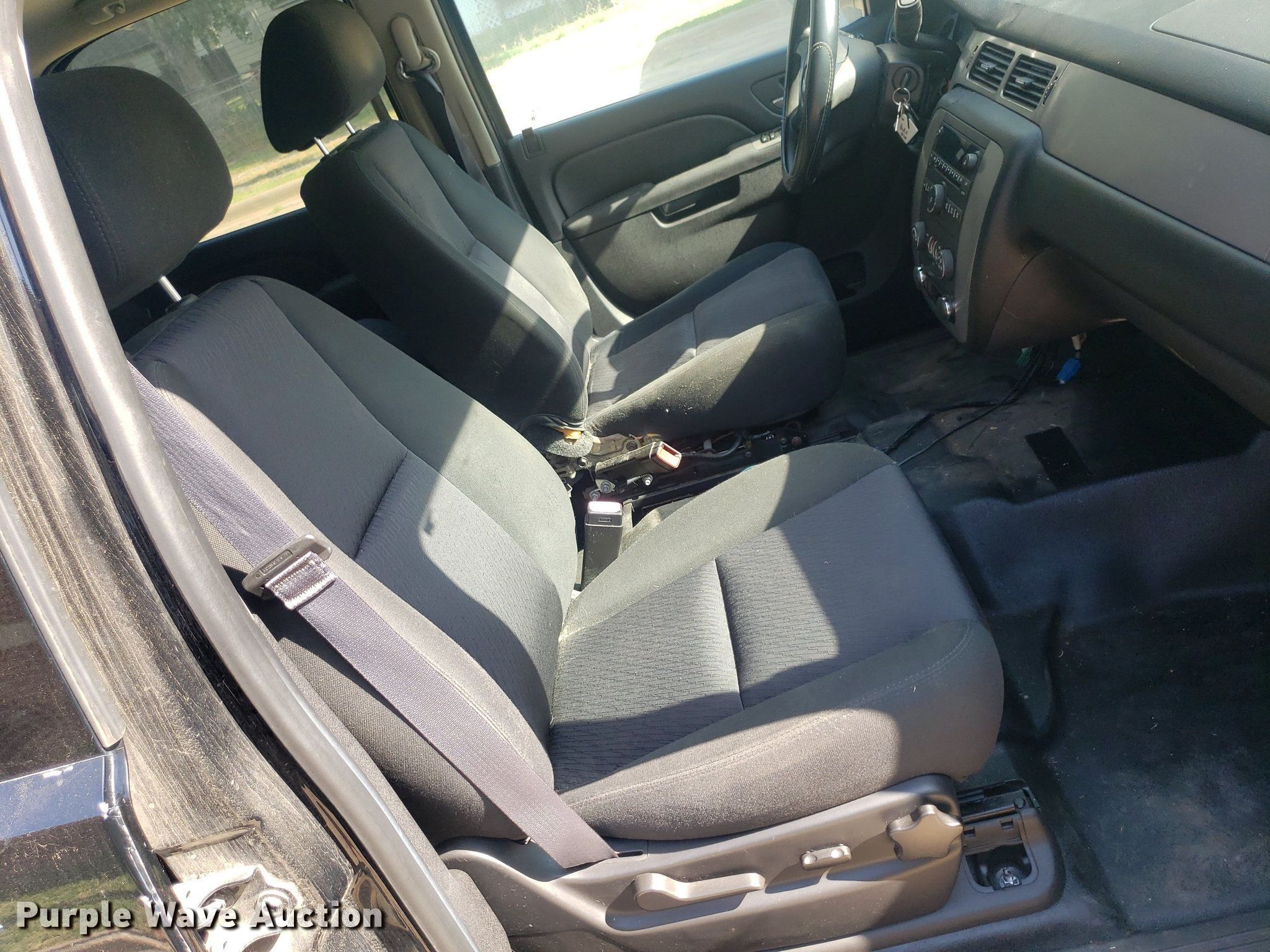 2014 Chevrolet Tahoe Police SUV. Miles: 185,756 on odometer, VIN: 1GNLC2E04ER151278. Engine Displacement: 5.3L V8 OHV, Cylinders: 8, Fuel type: Gas. Transmission Automatic. Interior AC, Heat, Seat: Power driver, Power windows, Power locks, Cruise control. Tires Size: 265/60R17. Notes Center console missing, Dash warning indicator: TPMS, Airbag. Kansas title. Title distribution may be delayed up to 14 days from verification of funds. 410 East Main Street. Mulvane, KS 67110