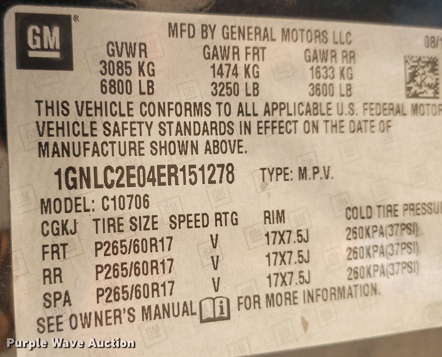 Purple Wave is selling a used Passenger Vehicle in Kansas. This item is a 2014 Chevrolet Tahoe Police SUV with the following: Miles: 185,756 on odometer, VIN: 1GNLC2E04ER151278