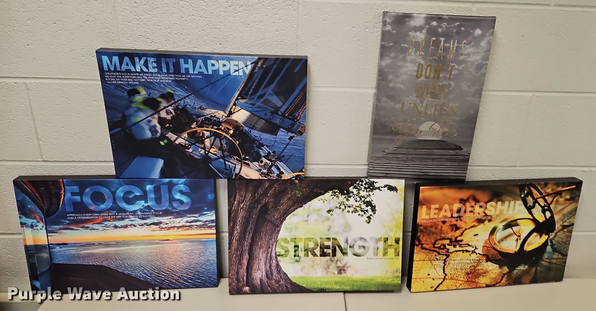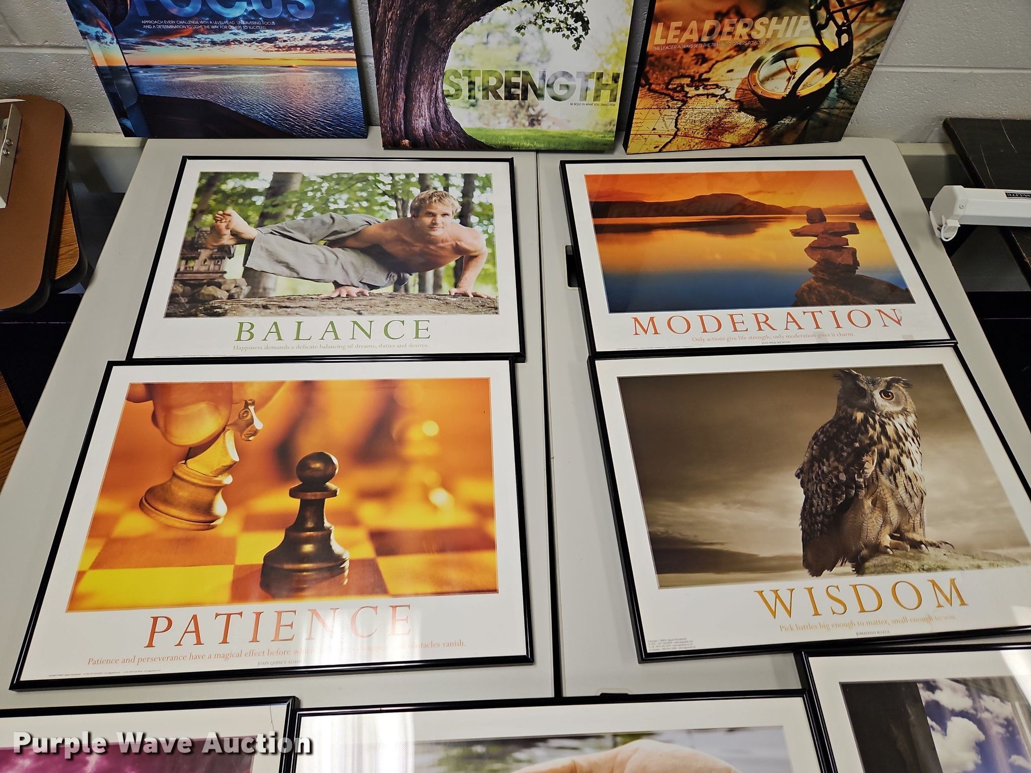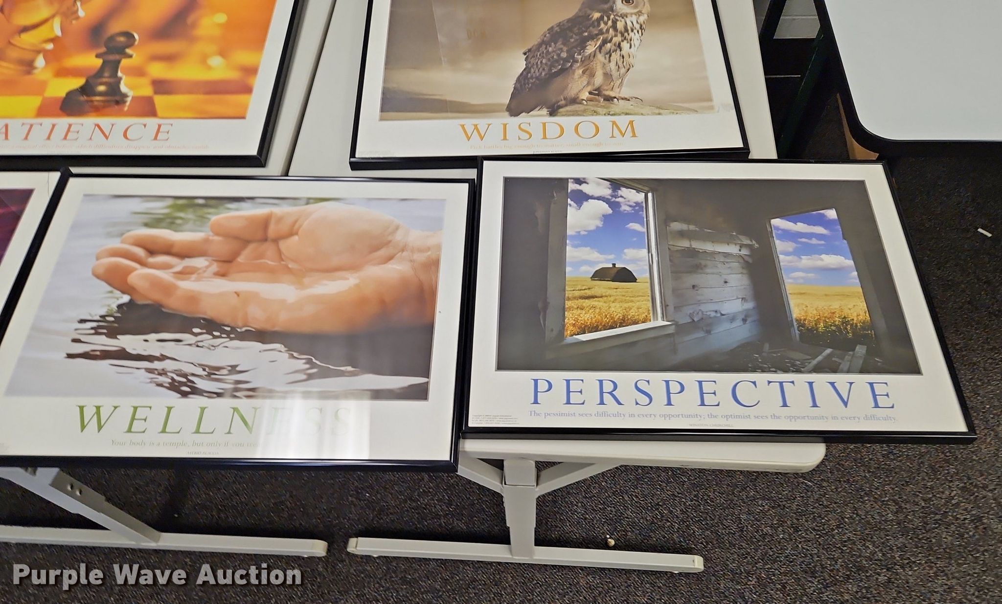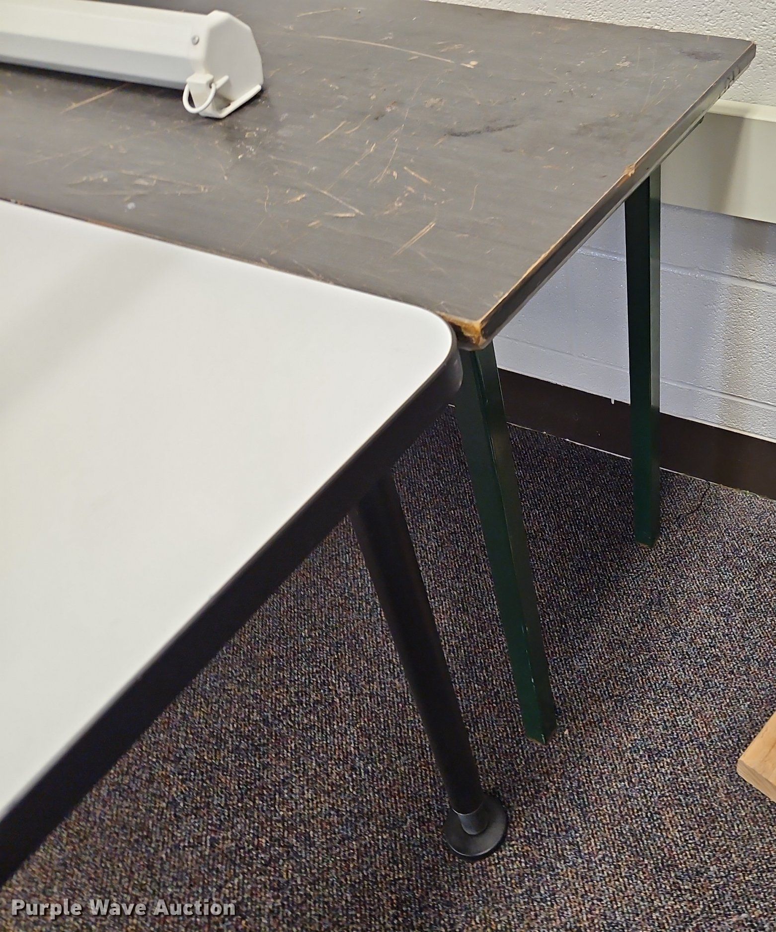 Purple Wave is selling a used Office Supplies and Equip. in Missouri. This item is a Office supplies and equipment with the following: (2) tables, (2) computer tables, (3) desks, Motivational pictures, Projector screen