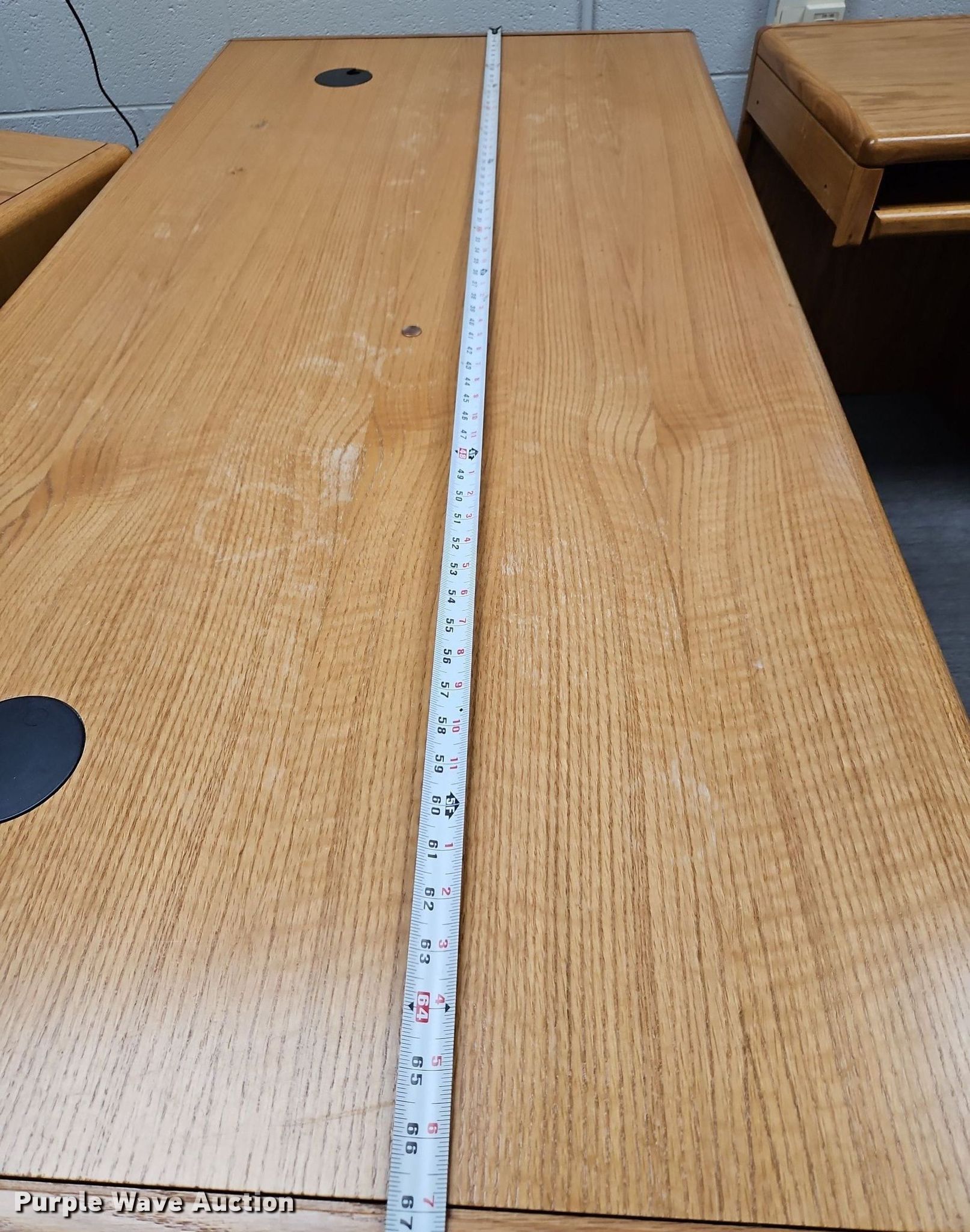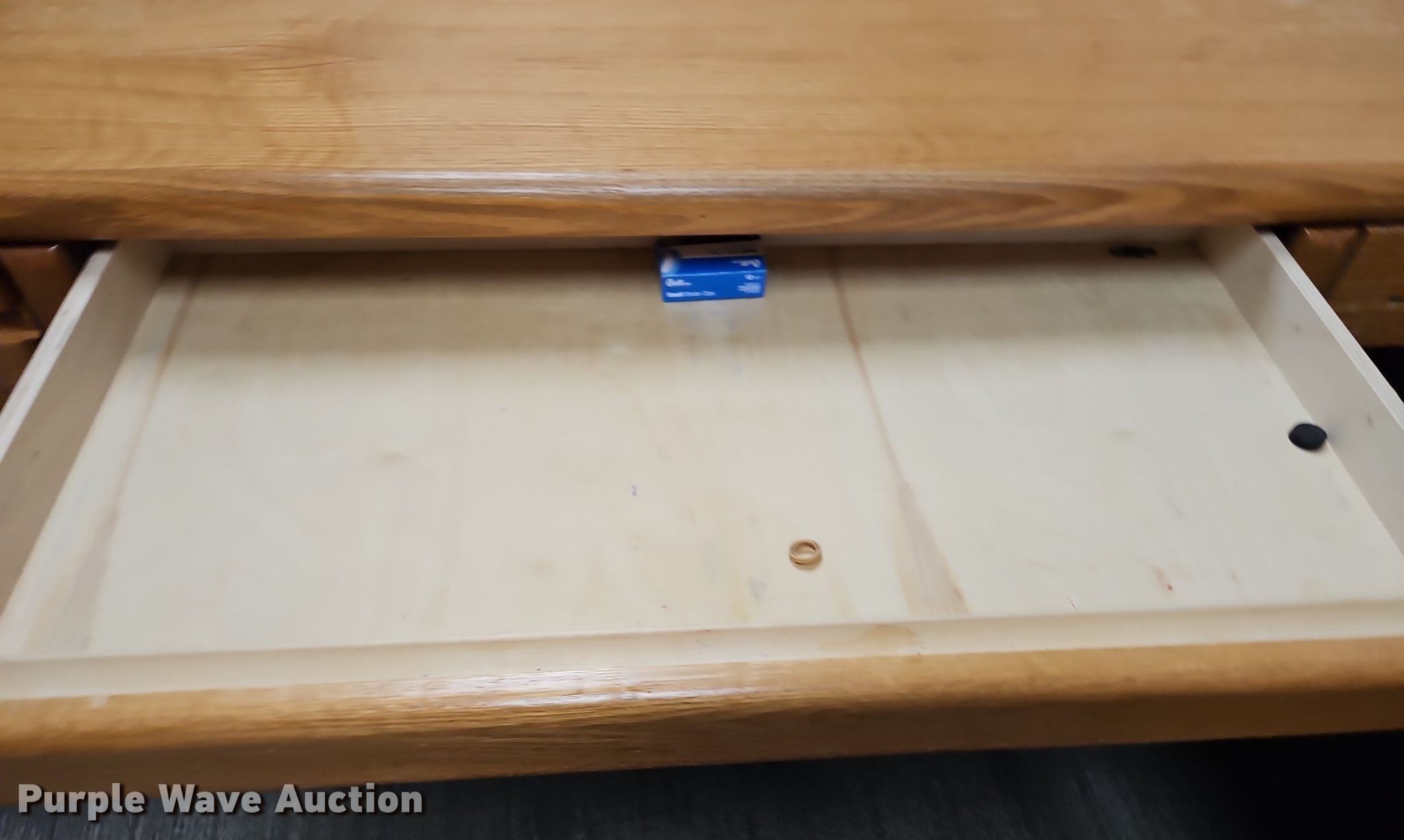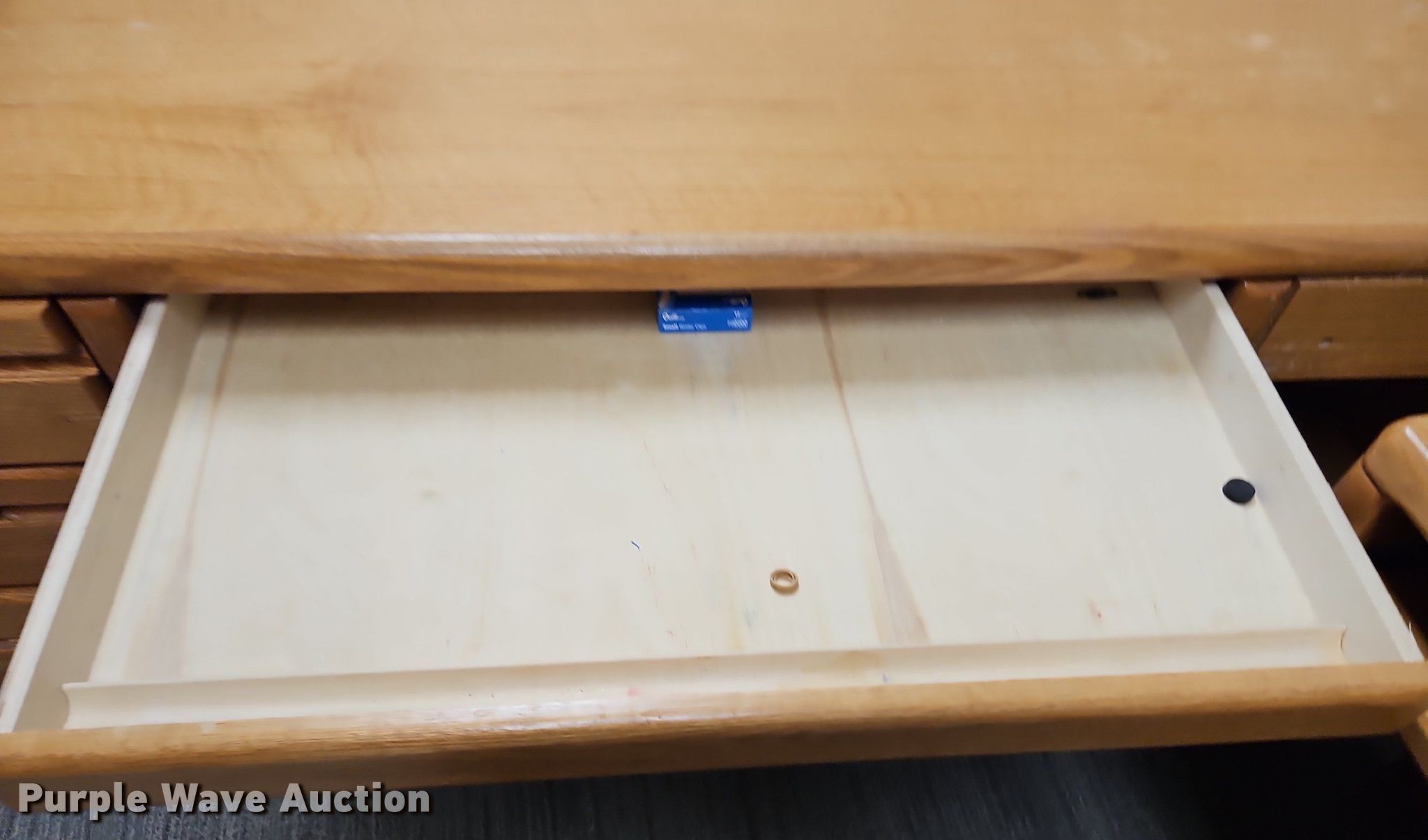 Purple Wave is selling a used Furniture in Missouri. This item is a Furniture with the following: L-shape wood desk, (2) two drawer wood file cabinets, Wood bookshelf